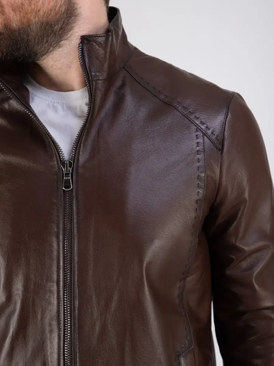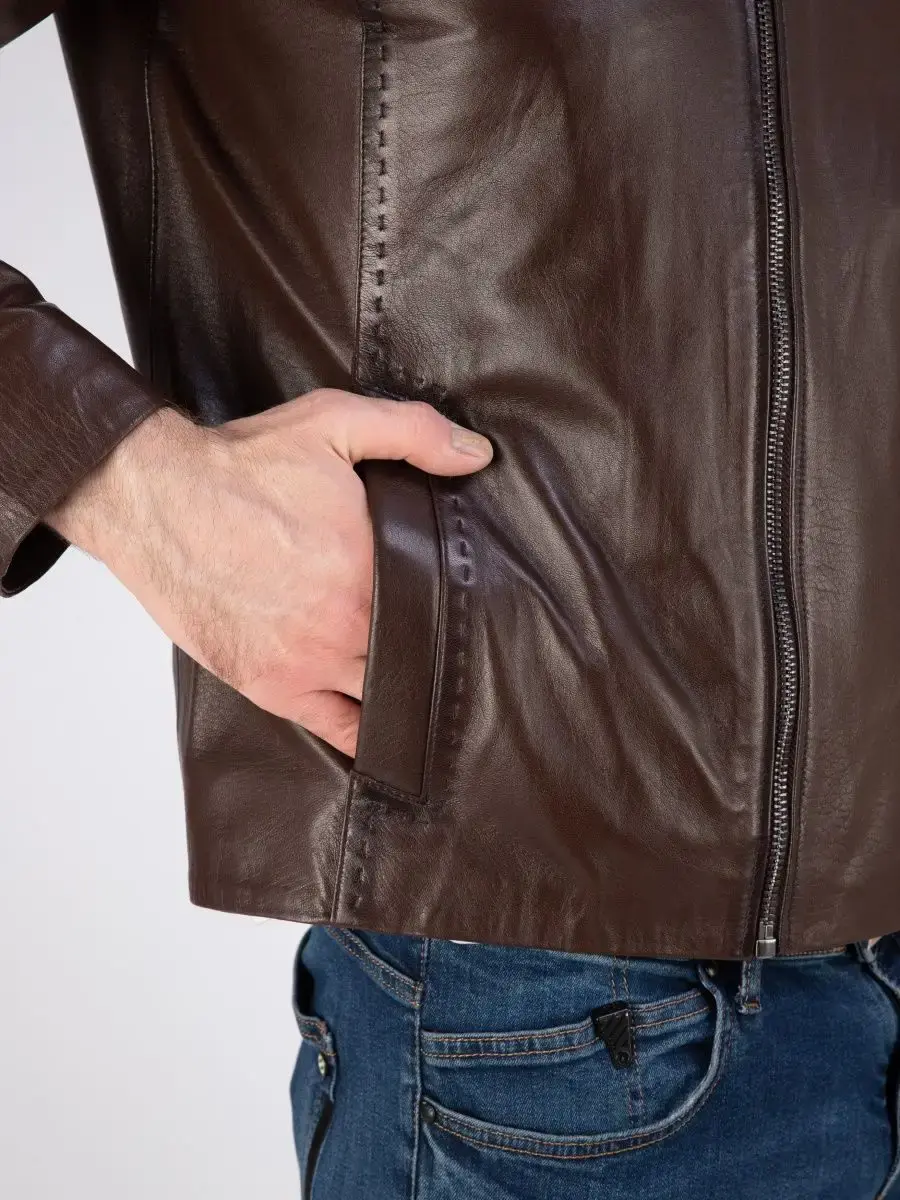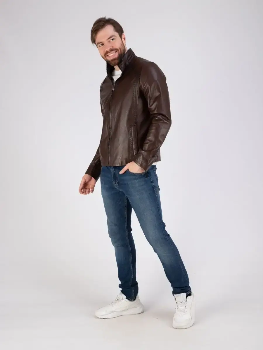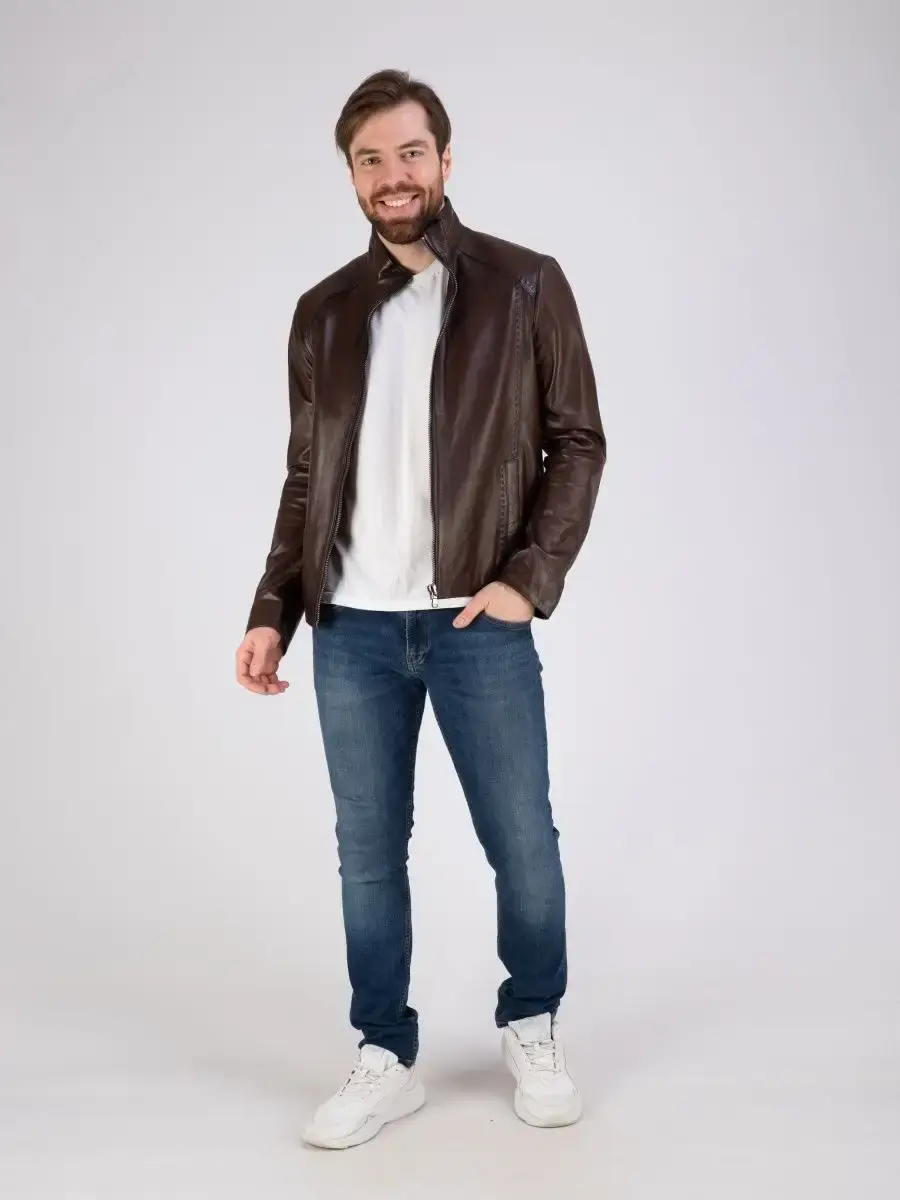 Кожаная куртка мужская с застежкой на молнии обеспечивает удобство и комфорт при ношении куртки. Кроме того, куртка кожаная имеет стильный дизайн, который подойдет к любому образу. Воротник стойка и декоративная строчка добавляют куртке дополнительный шарм. Прямой крой и классический дизайн, прорезные карманы делают эту куртку универсальной и подходящей для любого мужчины. Независимо от того, насколько холодно на улице, вы будете чувствовать себя комфортно и защищенным в этой кожаной куртке. Покупайте с уверенностью, вы получите высококачественный товар из натуральной кожи, который прослужит вам много лет!