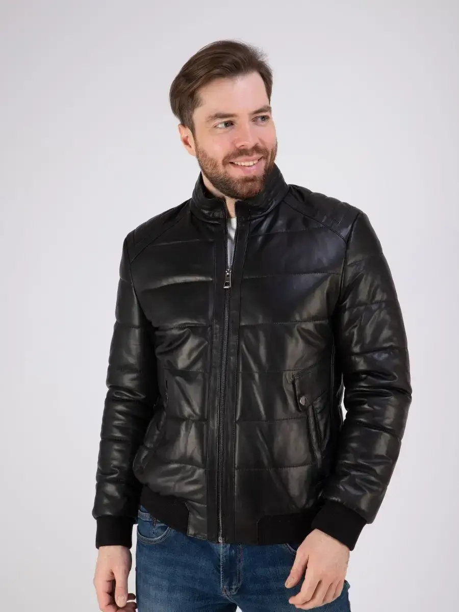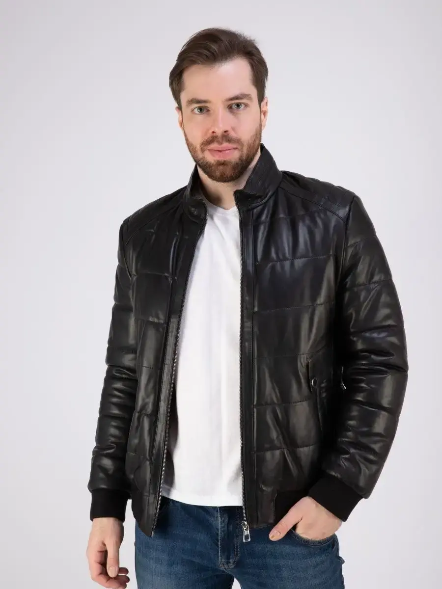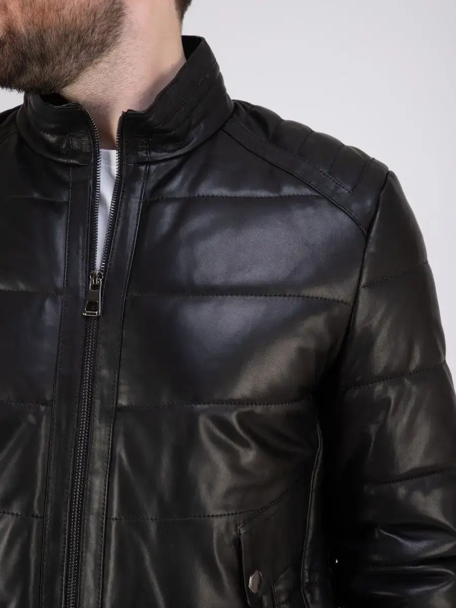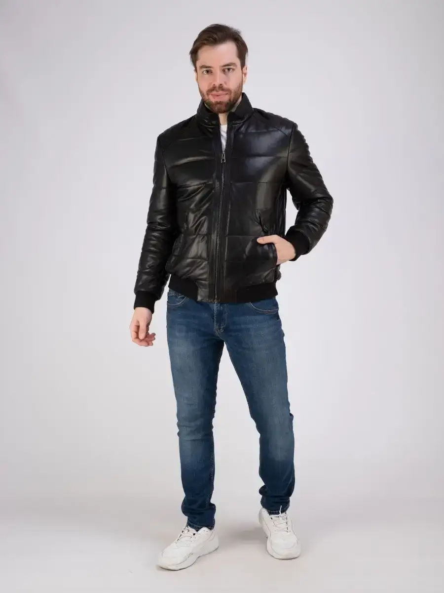 куртка мужская из натуральной кожи стеганая