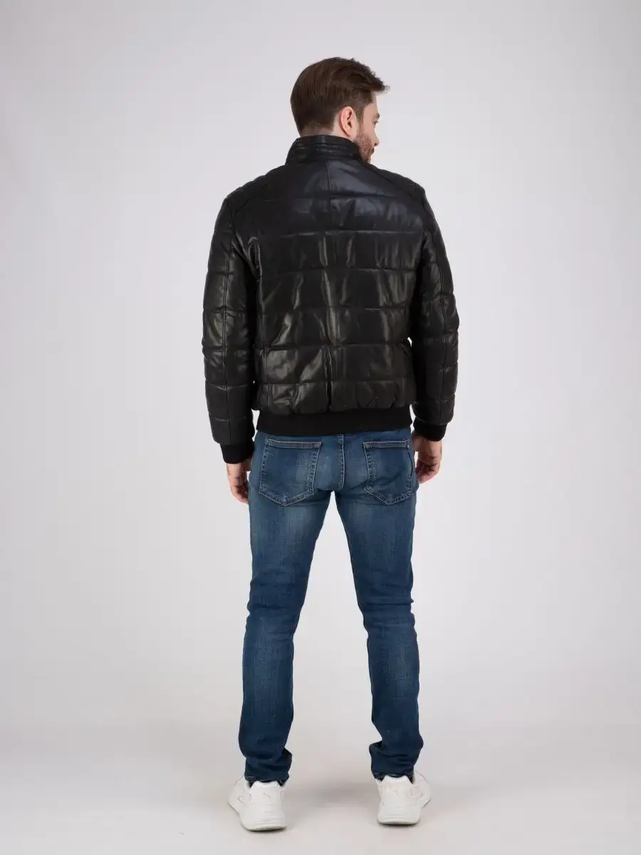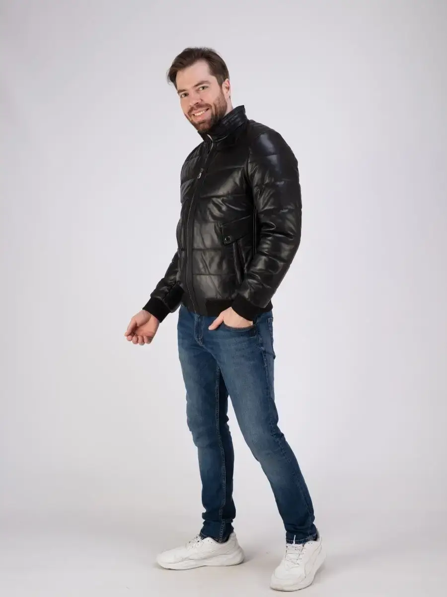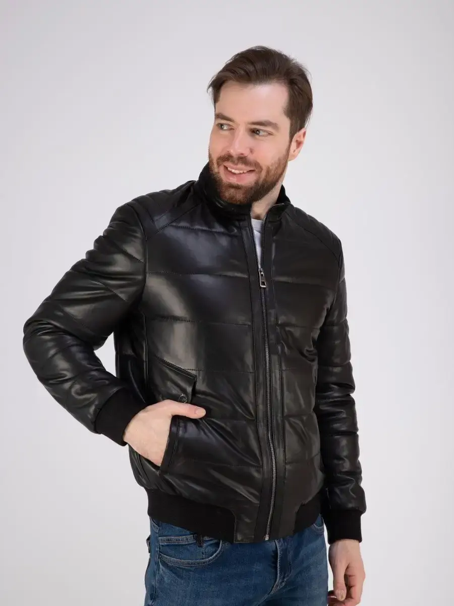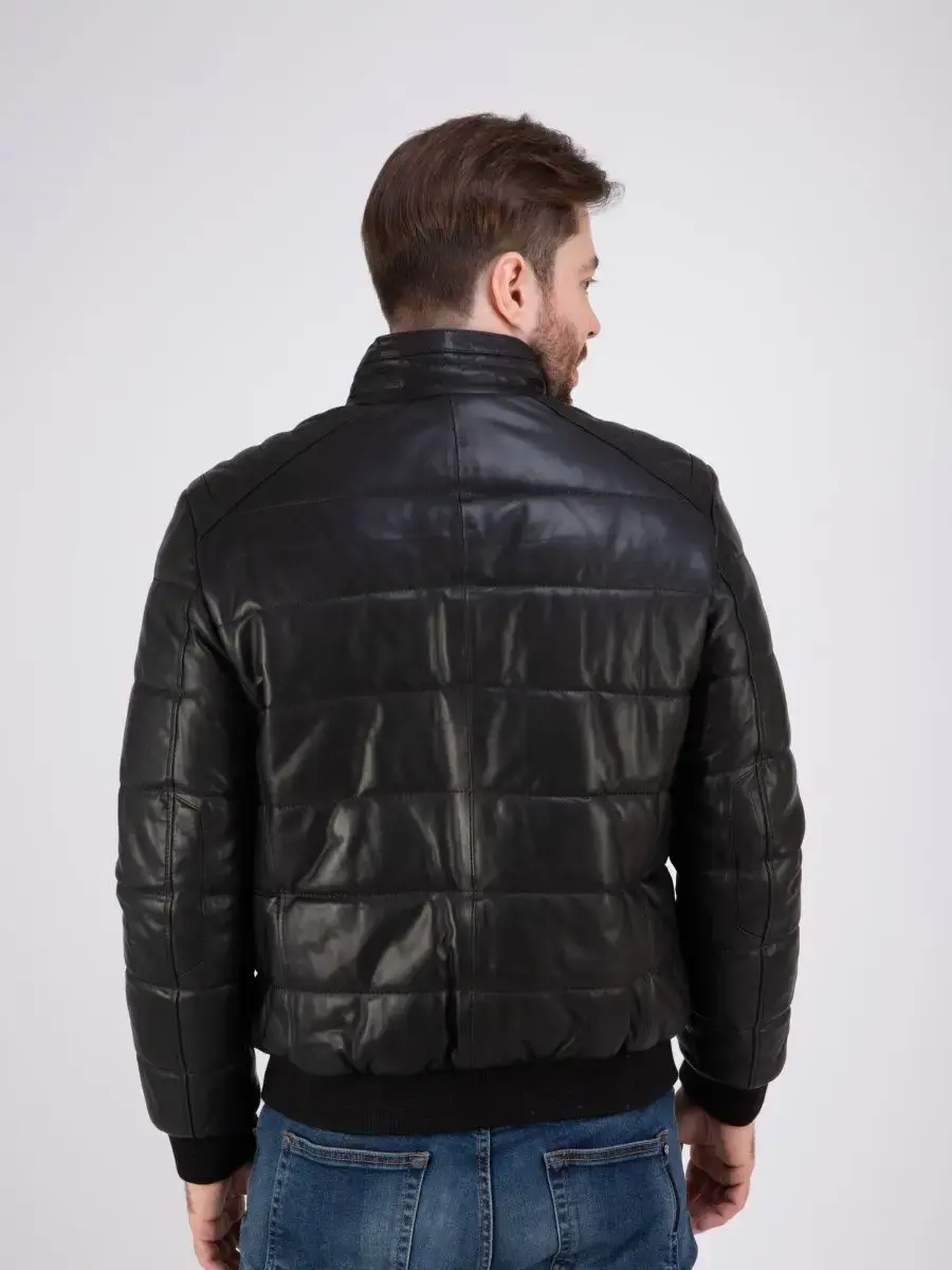 куртка мужская из натуральной кожи стеганая