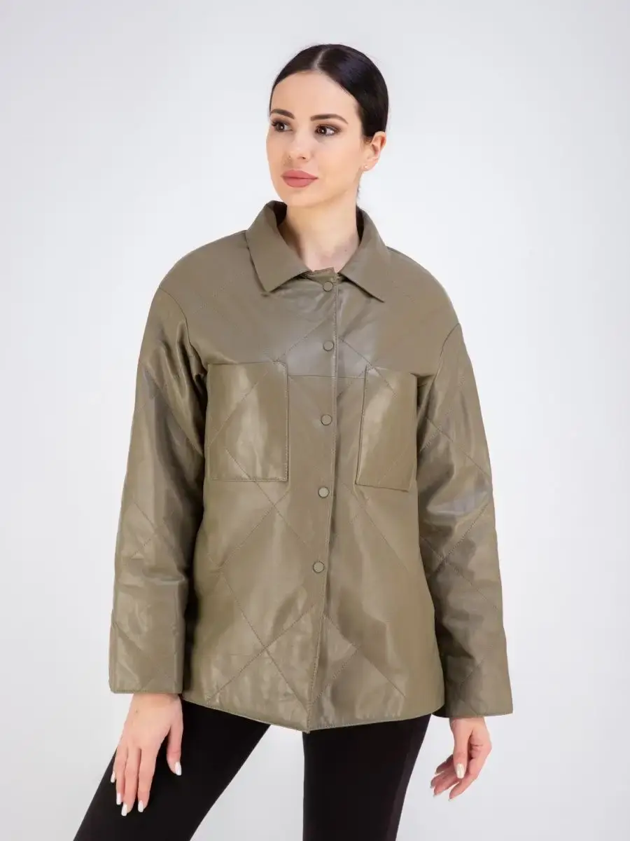 Модная куртка женская кожаная из натуральной кожи прямого кроя, куртка женская весна - осень прекрасно подходить для холодных дней весной, осенью и летом. Куртка женская из натуральной кожи, утепленная, пиджак женский. В качестве застежки кнопки, карманы накладные на груди, стеганая.