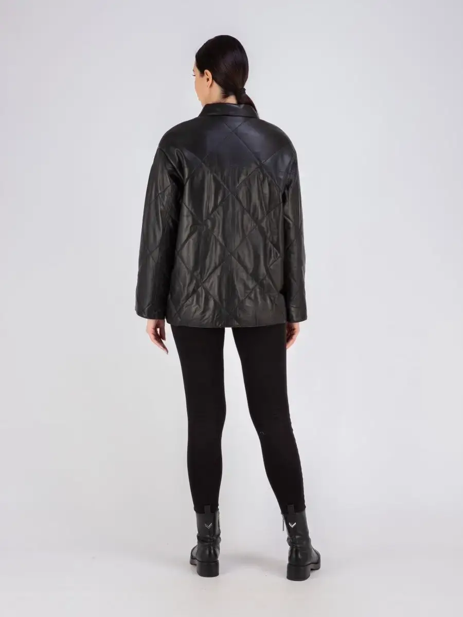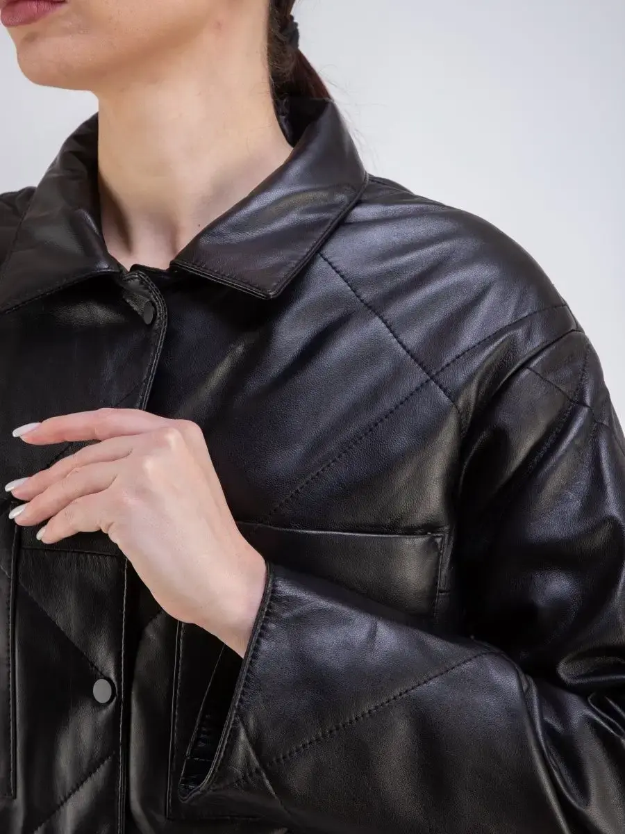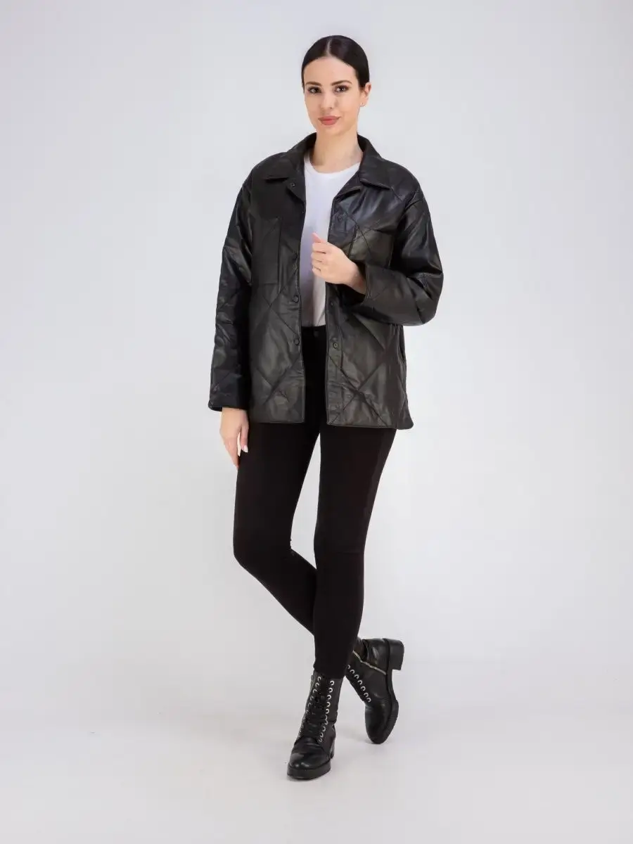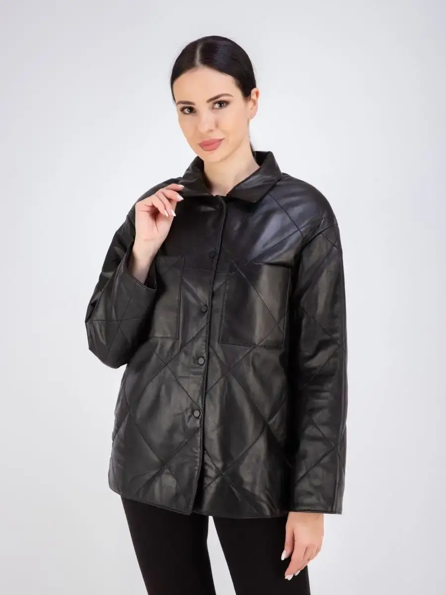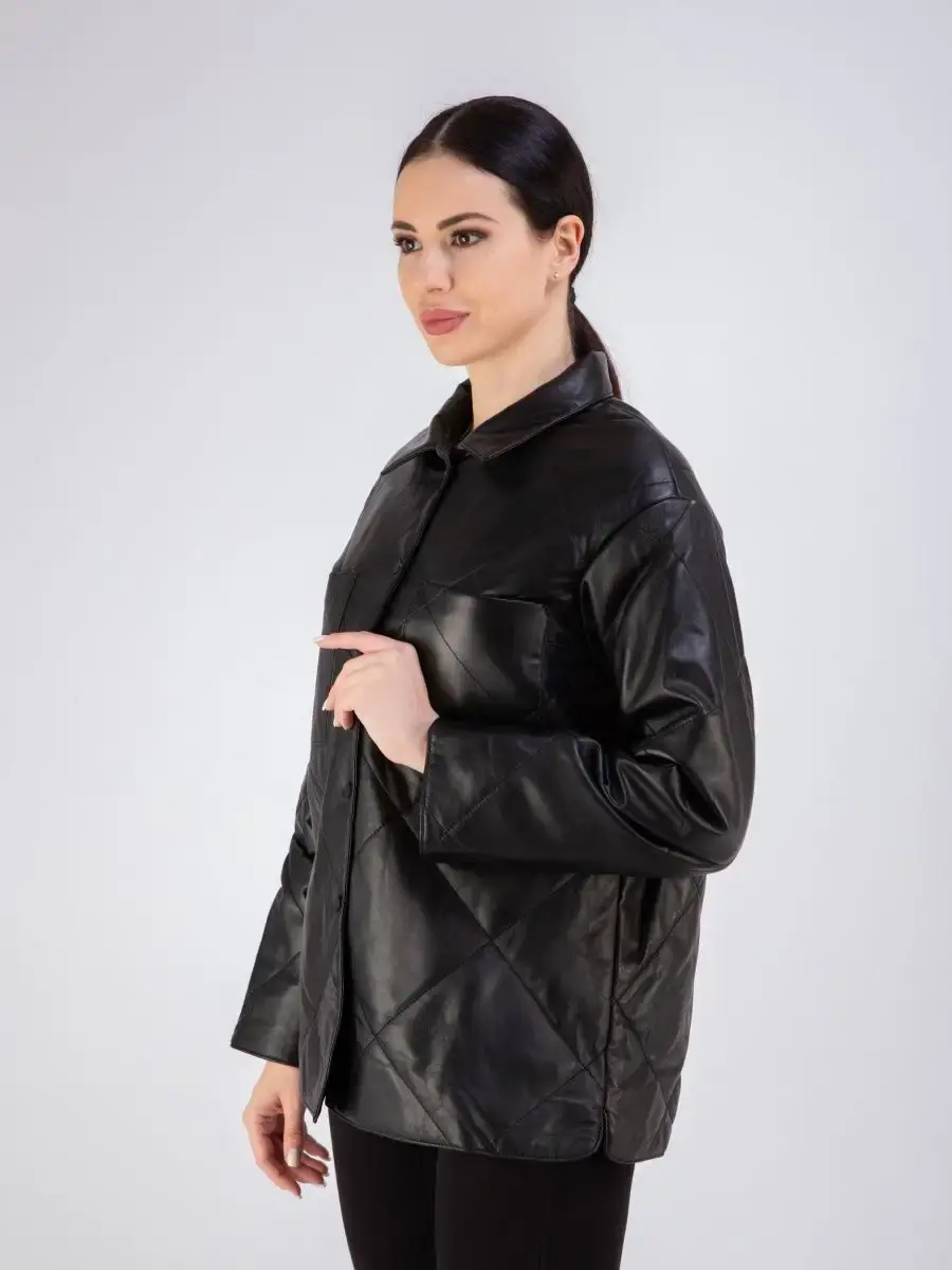 Модная куртка женская кожаная из натуральной кожи прямого кроя, куртка женская весна - осень прекрасно подходить для холодных дней весной, осенью и летом. Куртка женская из натуральной кожи, утепленная, пиджак женский. В качестве застежки кнопки, карманы накладные на груди, стеганая.
