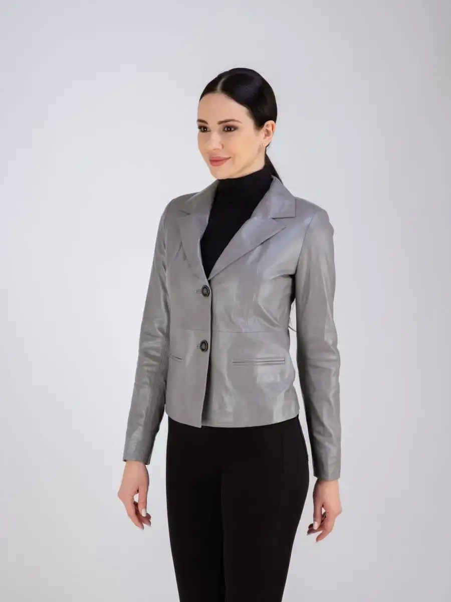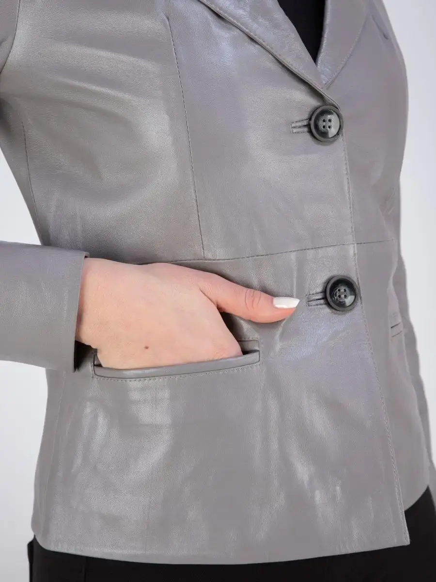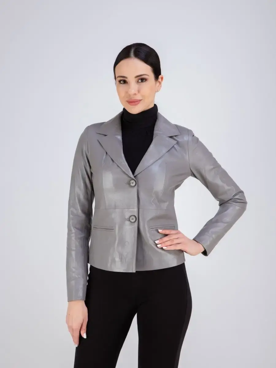 Кожаная куртка женская, кожаный пиджак женский из мягкой качественной натуральной кожи станет вашей любимой покупкой в новом сезоне. Стильный жакет прямого кроя с двумя пуговицами в качестве застежки. Короткая модель прямого кроя с классическими лацканами имеет удобный английский воротник и два передних кармана. Женский блейзер, куртка женская из натуральной кожи застёгивается спереди на две пуговицы. Прямой крой блейзера позволяет носить данную куртку девушкам и женщинам с любым типом фигуры. Пиджак женский, женскую куртку можно носить весной, летом и осенью, идеальное решение для создания универсального гардероба. Куртка пиджак женская прекрасно впишется практически в любой стиль - повседневный, городской, офисный и вечерний. Такую модель можно носить с брюками в деловом стиле, джинсами и зауженной юбкой карандаш.