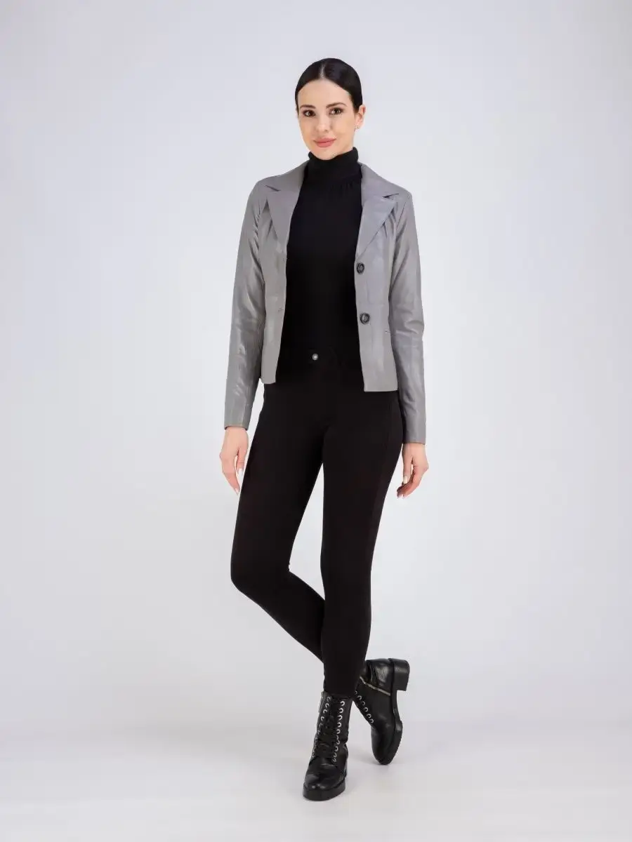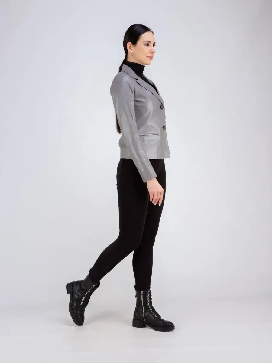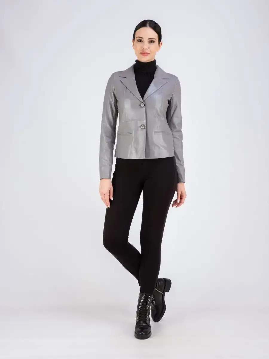 Кожаная куртка женская, кожаный пиджак женский из мягкой качественной натуральной кожи станет вашей любимой покупкой в новом сезоне. Стильный жакет прямого кроя с двумя пуговицами в качестве застежки. Короткая модель прямого кроя с классическими лацканами имеет удобный английский воротник и два передних кармана. Женский блейзер, куртка женская из натуральной кожи застёгивается спереди на две пуговицы. Прямой крой блейзера позволяет носить данную куртку девушкам и женщинам с любым типом фигуры. Пиджак женский, женскую куртку можно носить весной, летом и осенью, идеальное решение для создания универсального гардероба. Куртка пиджак женская прекрасно впишется практически в любой стиль - повседневный, городской, офисный и вечерний. Такую модель можно носить с брюками в деловом стиле, джинсами и зауженной юбкой карандаш.