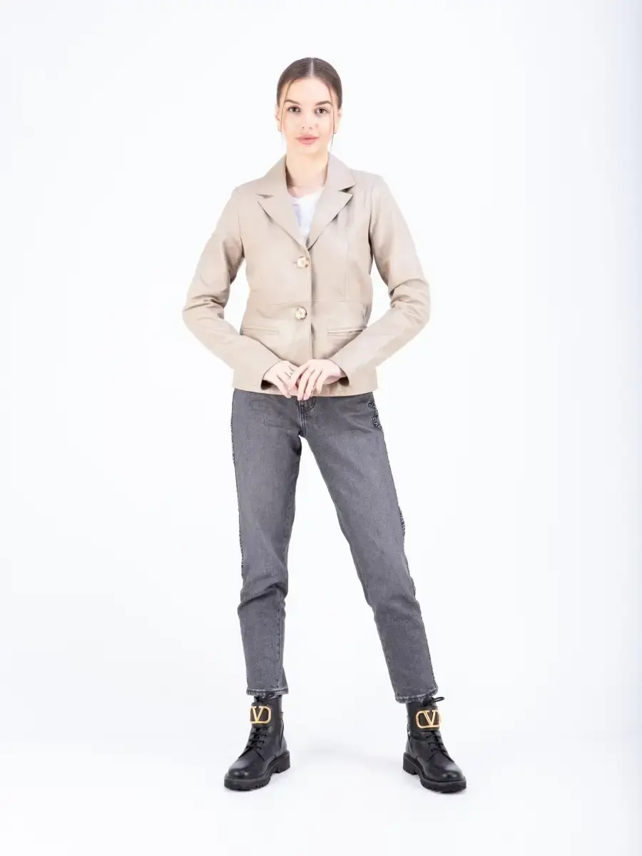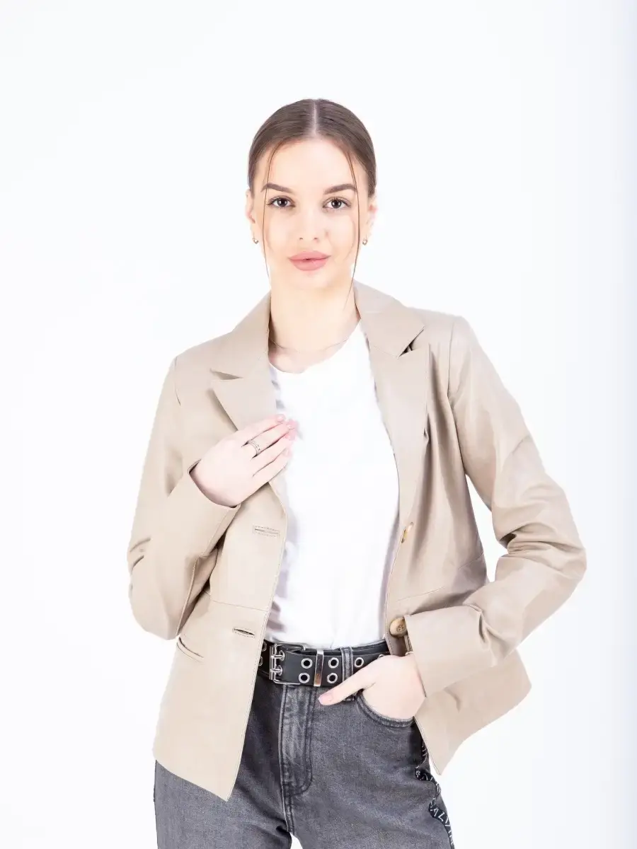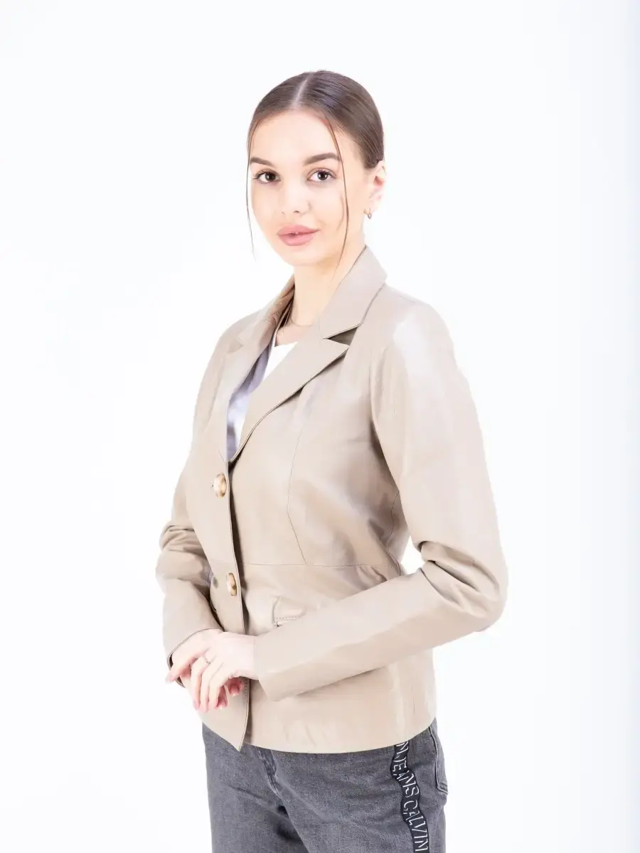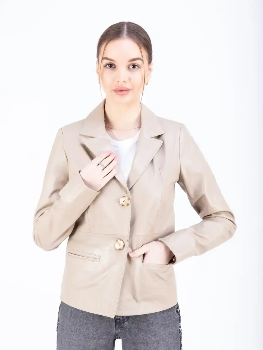 Кожаная куртка женская, кожаный пиджак женский из мягкой качественной натуральной кожи станет вашей любимой покупкой в новом сезоне. Стильный жакет прямого кроя с двумя пуговицами в качестве застежки. Короткая модель прямого кроя с классическими лацканами имеет удобный английский воротник и два передних кармана. Женский блейзер, куртка женская из натуральной кожи застёгивается спереди на две пуговицы. Прямой крой блейзера позволяет носить данную куртку девушкам и женщинам с любым типом фигуры. Пиджак женский, женскую куртку можно носить весной, летом и осенью, идеальное решение для создания универсального гардероба. Куртка пиджак женская прекрасно впишется практически в любой стиль - повседневный, городской, офисный и вечерний. Такую модель можно носить с брюками в деловом стиле, джинсами и зауженной юбкой карандаш.