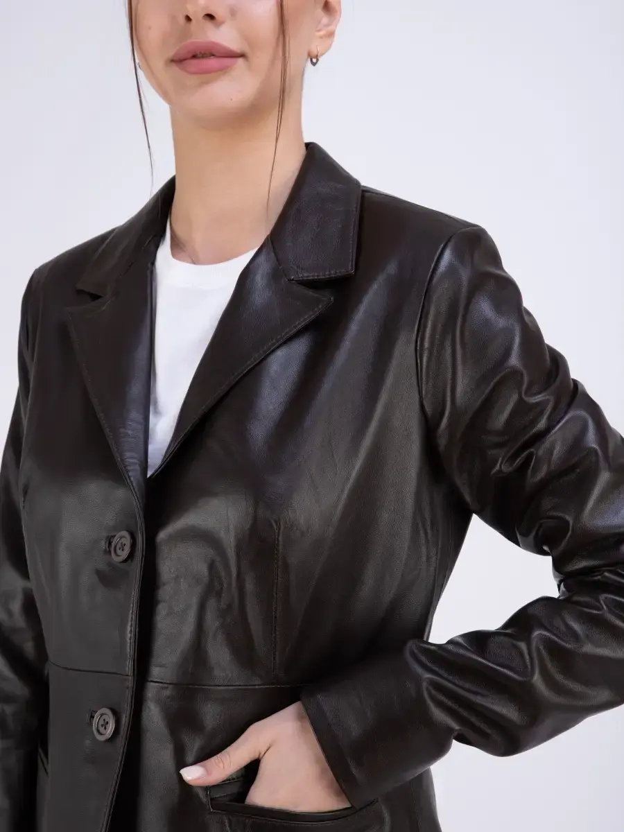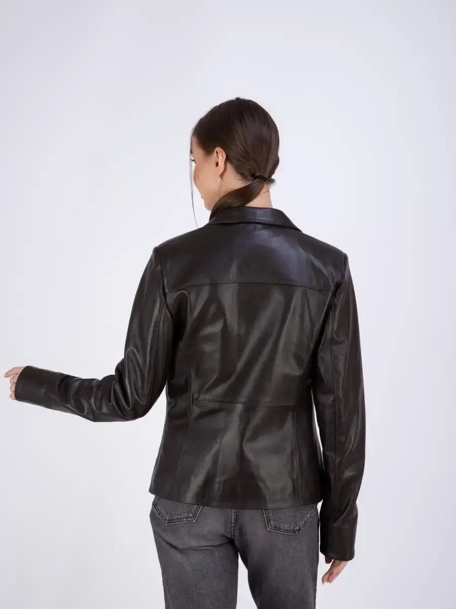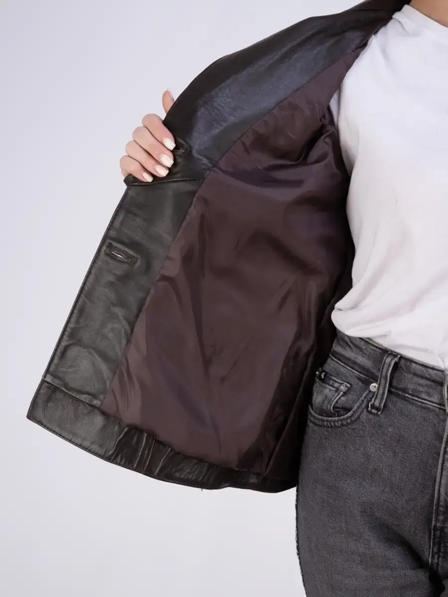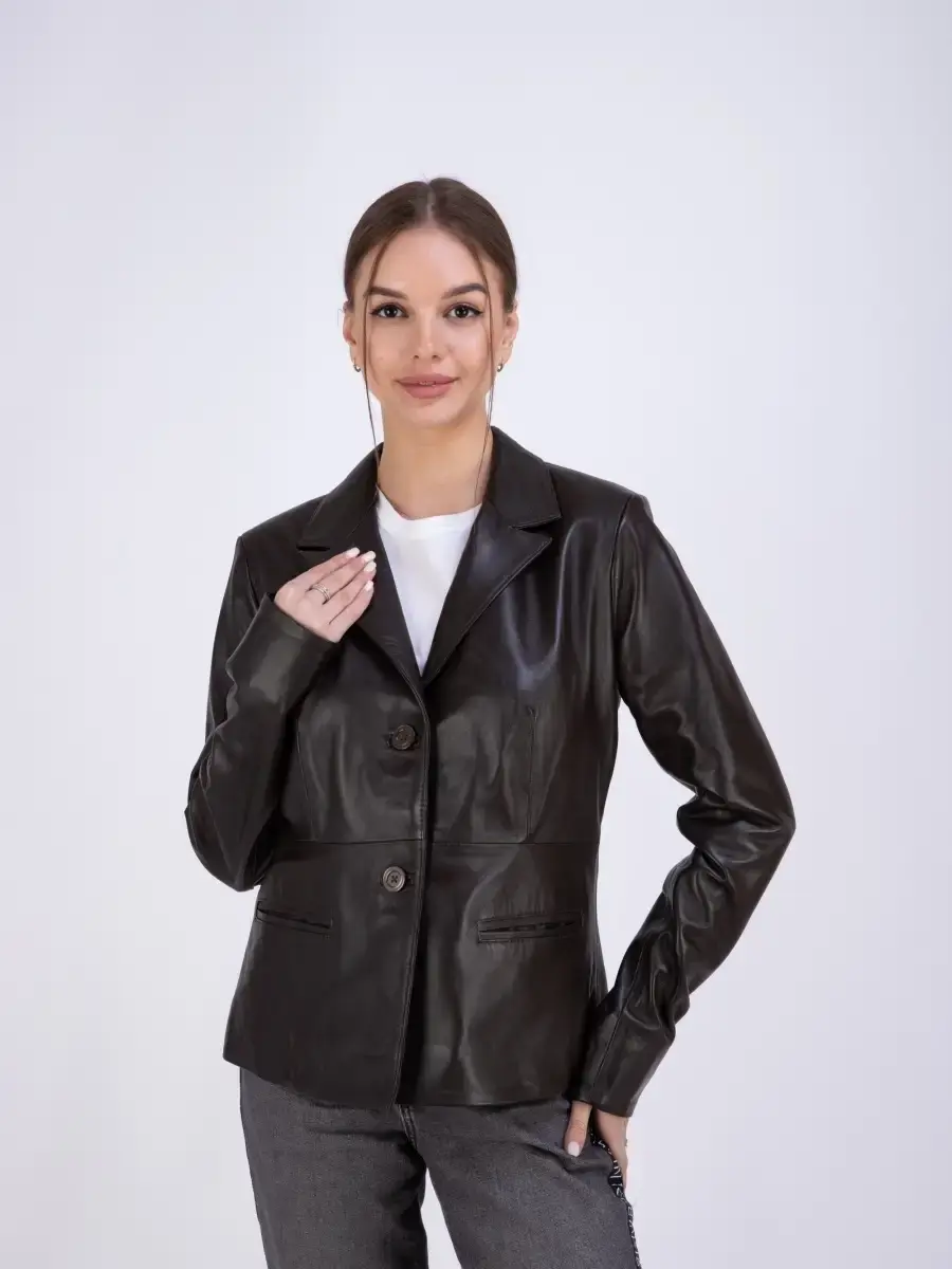 Кожаная куртка женская, кожаный пиджак женский из мягкой качественной натуральной кожи станет вашей любимой покупкой в новом сезоне. Стильный жакет прямого кроя с двумя пуговицами в качестве застежки. Короткая модель прямого кроя с классическими лацканами имеет удобный английский воротник и два передних кармана. Женский блейзер, куртка женская из натуральной кожи застёгивается спереди на две пуговицы. Прямой крой блейзера позволяет носить данную куртку девушкам и женщинам с любым типом фигуры. Пиджак женский, женскую куртку можно носить весной, летом и осенью, идеальное решение для создания универсального гардероба. Куртка пиджак женская прекрасно впишется практически в любой стиль - повседневный, городской, офисный и вечерний. Такую модель можно носить с брюками в деловом стиле, джинсами и зауженной юбкой карандаш.