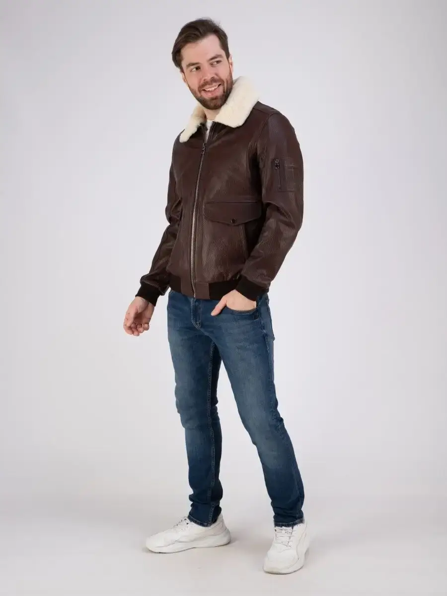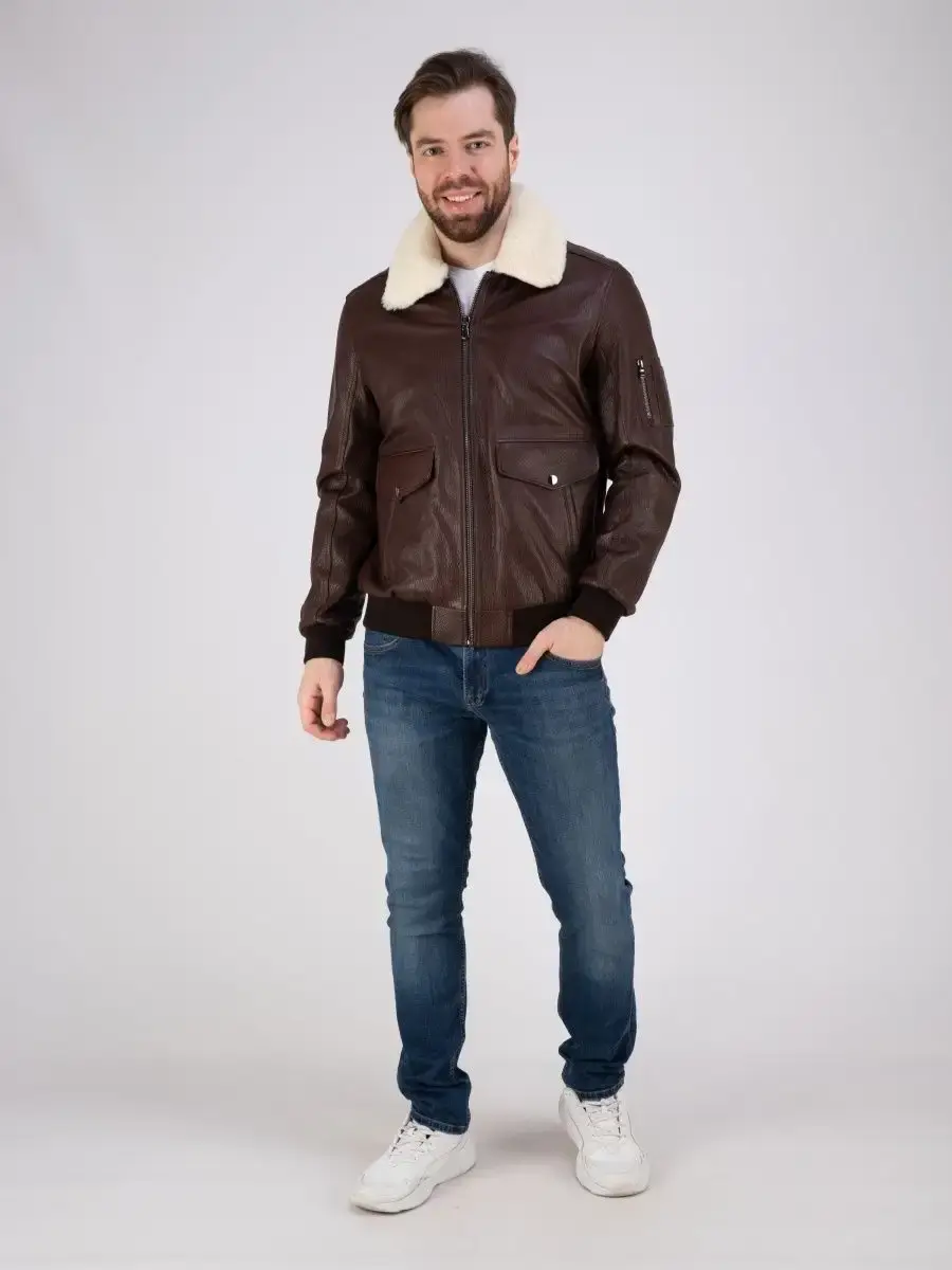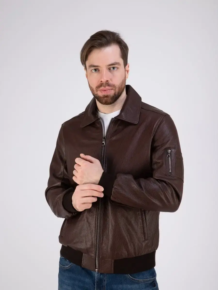 Куртка мужская кожаная из высококачественной натуральной кожи. Куртка кожаная мужская выполнена из прочной и в то же время из мягкой натуральной кожи ягненка. Выделка кожи фактурная - джумбо, износоустойчивая к царапинам и воздействию окружающей среды поэтому дольше сохраняет отличный внешний вид. Кожаная куртка мужская из натуральной кожи в качестве застежки молния, воротник меховой съемный, имеется двойной карман - прорезной и накладной с клапаном. Современная мужская куртка из знаменитой турецкой натуральной кожи является идеальным выбором для мужчин, желающих порадовать себя чем-то особенным. Куртка демисезонная достаточно удобная и практичная для ежедневного использования. Мужская куртка из натуральной кожи прекрасно будет смотреться как с кроссовками и спортивным стилем, так и с брюками и рубашкой. Прямой крой, карман на рукаве в качестве декоративного элемента, трикотажные манжеты - такая модель не только сбережет от ветра, но и добавит вашему стилю брутальности. Сочетание дизайна с долговечностью, драгоценностью и мягкостью натуральной кожи делает мужские кожаные куртки идеальным предметом мужской одежды. Длина по спинке 70см. Производство Турция. Коллекция верхней одежды обновляется каждый сезон