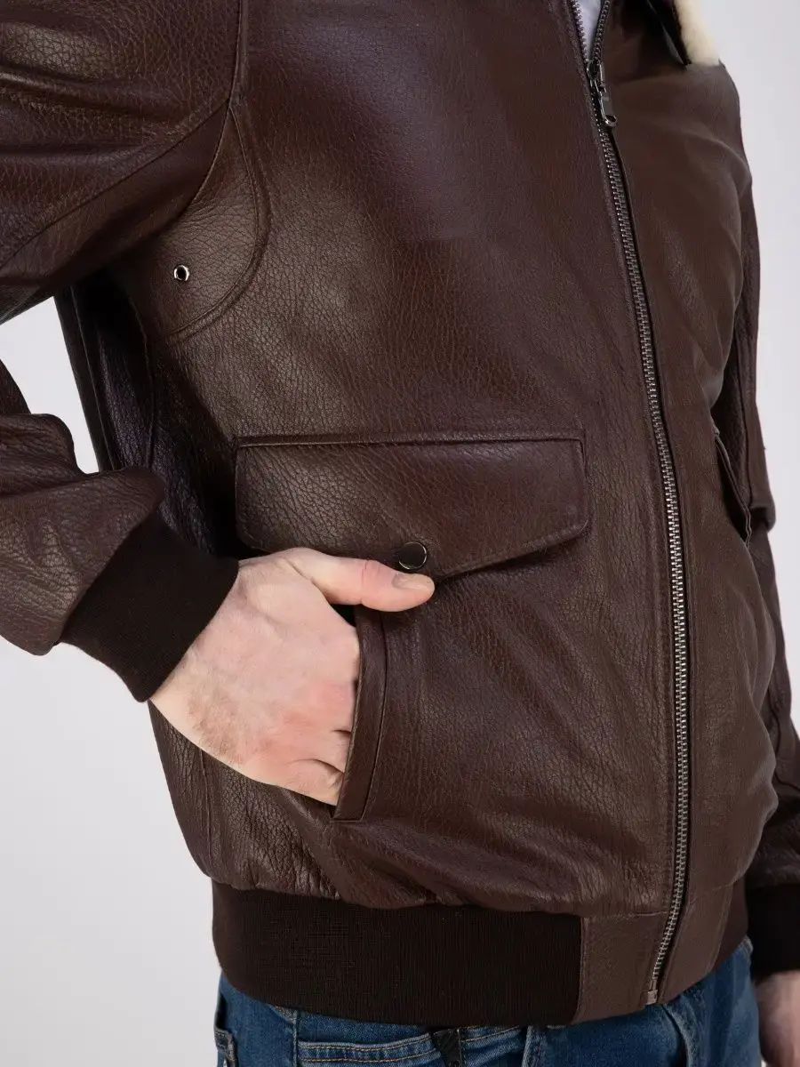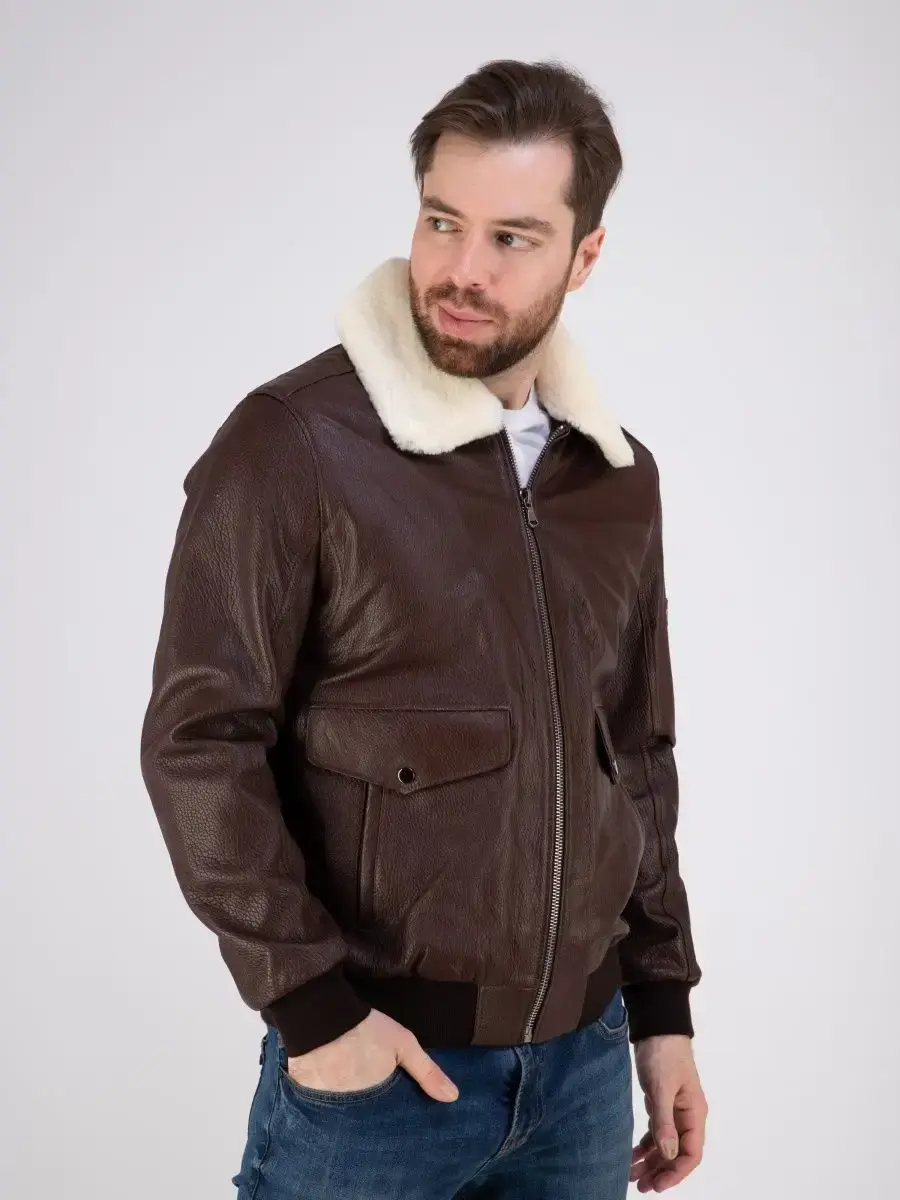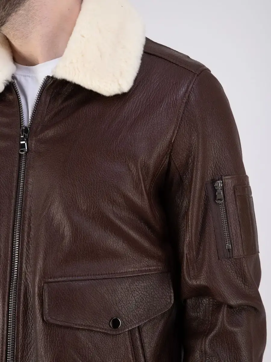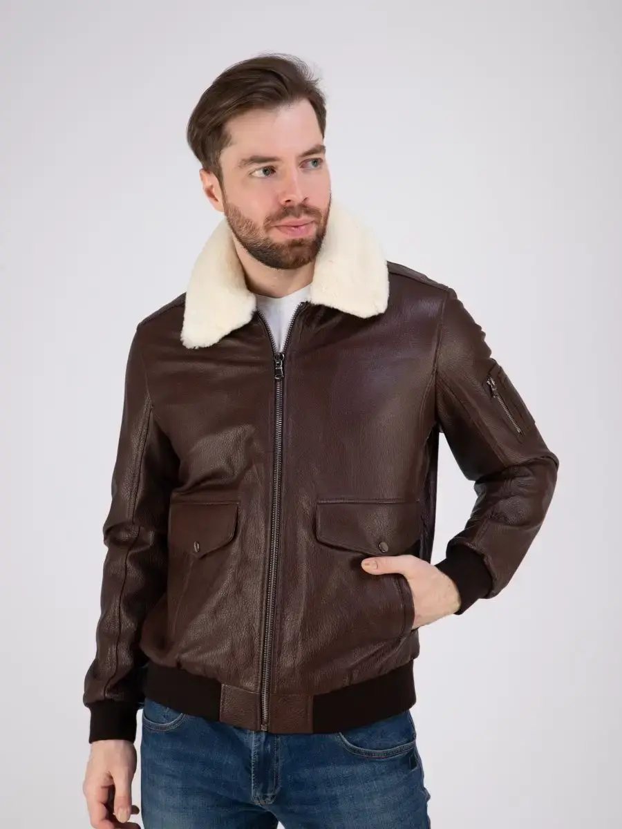 Куртка мужская кожаная из высококачественной натуральной кожи. Куртка кожаная мужская выполнена из прочной и в то же время из мягкой натуральной кожи ягненка. Выделка кожи фактурная - джумбо, износоустойчивая к царапинам и воздействию окружающей среды поэтому дольше сохраняет отличный внешний вид. Кожаная куртка мужская из натуральной кожи в качестве застежки молния, воротник меховой съемный, имеется двойной карман - прорезной и накладной с клапаном. Современная мужская куртка из знаменитой турецкой натуральной кожи является идеальным выбором для мужчин, желающих порадовать себя чем-то особенным. Куртка демисезонная достаточно удобная и практичная для ежедневного использования. Мужская куртка из натуральной кожи прекрасно будет смотреться как с кроссовками и спортивным стилем, так и с брюками и рубашкой. Прямой крой, карман на рукаве в качестве декоративного элемента, трикотажные манжеты - такая модель не только сбережет от ветра, но и добавит вашему стилю брутальности. Сочетание дизайна с долговечностью, драгоценностью и мягкостью натуральной кожи делает мужские кожаные куртки идеальным предметом мужской одежды. Длина по спинке 70см. Производство Турция. Коллекция верхней одежды обновляется каждый сезон