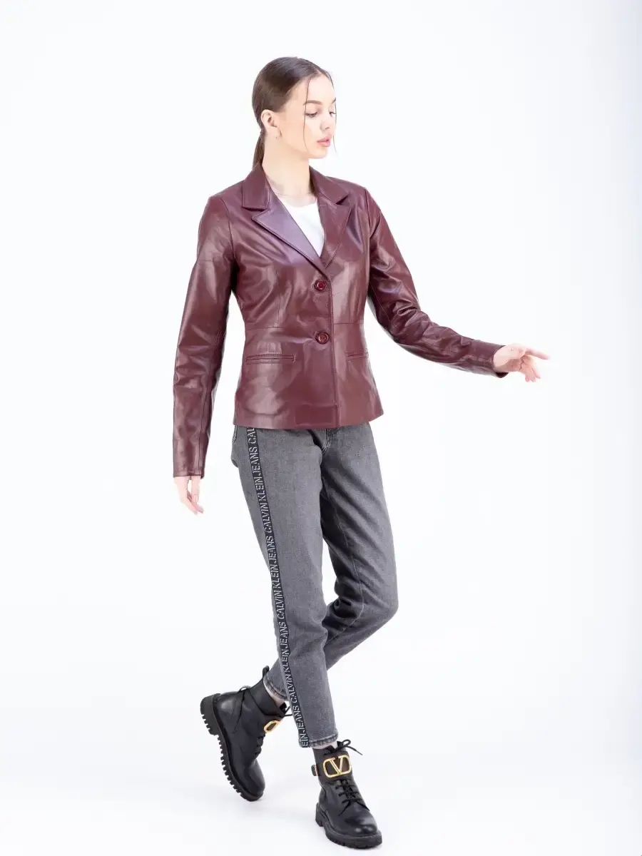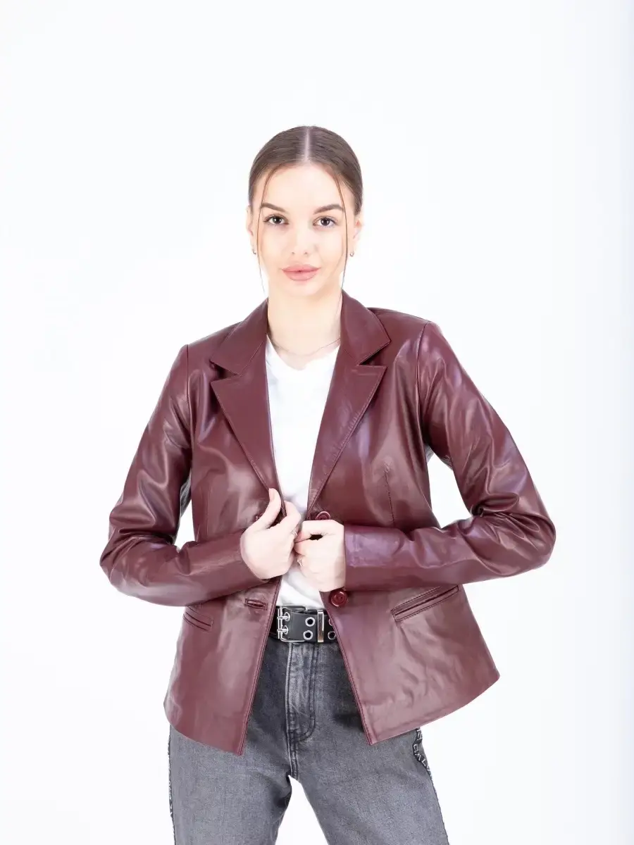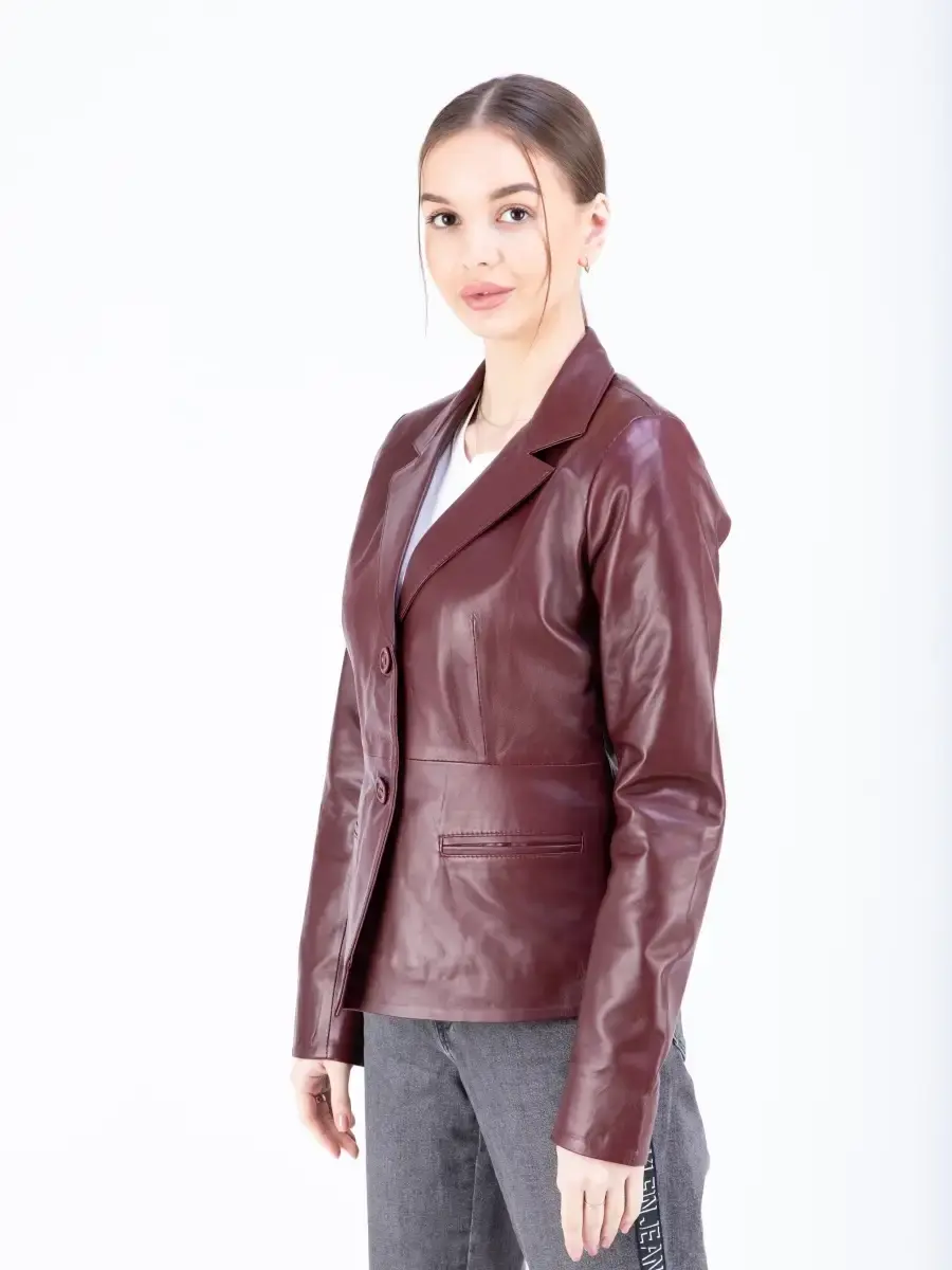 Кожаная куртка женская, кожаный пиджак женский из мягкой качественной натуральной кожи станет вашей любимой покупкой в новом сезоне. Стильный жакет прямого кроя с двумя пуговицами в качестве застежки. Короткая модель прямого кроя с классическими лацканами имеет удобный английский воротник и два передних кармана. Женский блейзер, куртка женская из натуральной кожи застёгивается спереди на две пуговицы. Прямой крой блейзера позволяет носить данную куртку девушкам и женщинам с любым типом фигуры. Пиджак женский, женскую куртку можно носить весной, летом и осенью, идеальное решение для создания универсального гардероба. Куртка пиджак женская прекрасно впишется практически в любой стиль - повседневный, городской, офисный и вечерний. Такую модель можно носить с брюками в деловом стиле, джинсами и зауженной юбкой карандаш.