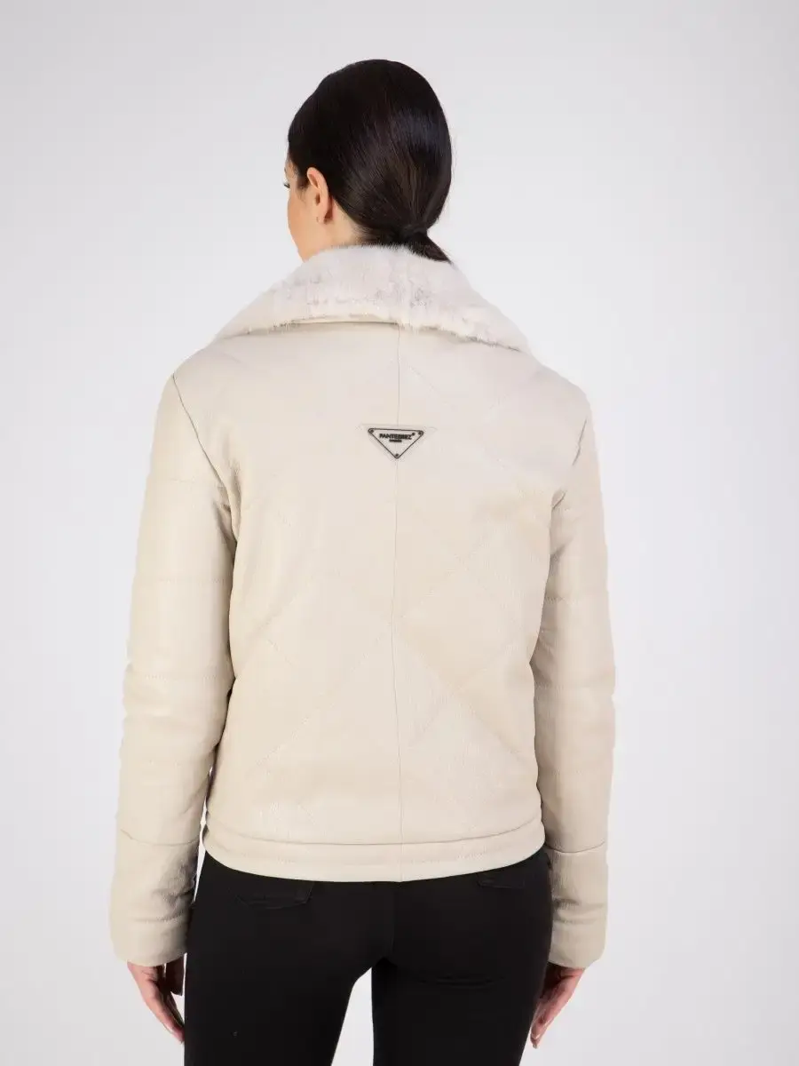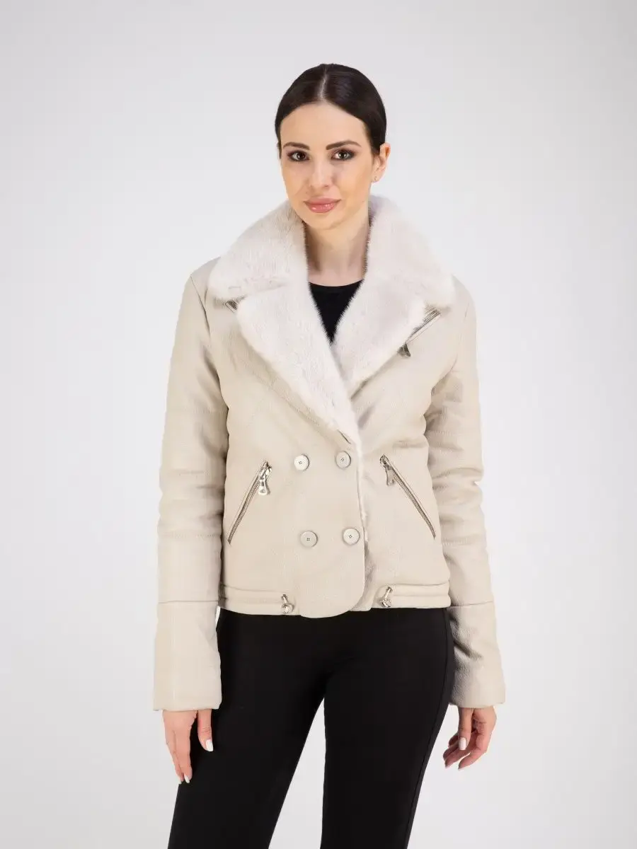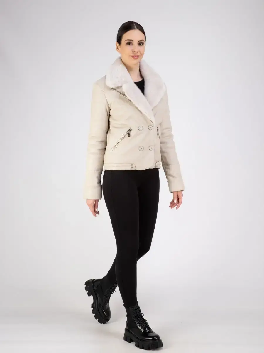 Модная куртка женская кожаная из натуральной кожи, куртка женская весна - осень с отделкой из меха норки прекрасно подходить для холодных дней весной, осенью и летом. Эксклюзивная куртка женская из натуральной кожи демисезонная, куртка короткая стеганая выполнена из прочной и в то же время из мягкой и фактурной натуральной кожи ягненка. Женская куртка кожаная из натуральной кожи с мехом норки на воротнике и с двубортной застежкой на кнопках замечательный выбор, если вы намерены не только чувствовать себя комфортно, но и хотите выглядеть стильно и модно. Женская куртка короткая с английским меховым воротником и с прорезными карманами на молнии отличный вариант на каждый день и сочетается с различными вещами, прекрасно впишется практически в любой стиль - повседневный, городской, офисный и вечерний. Утепленная кожаная куртка женская с кулисками отлично защитит от ветра и дождя.