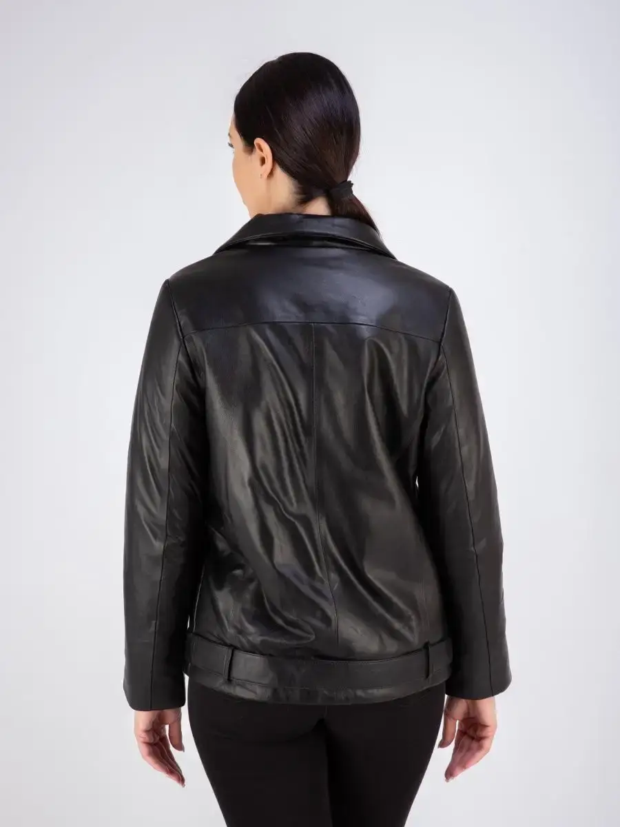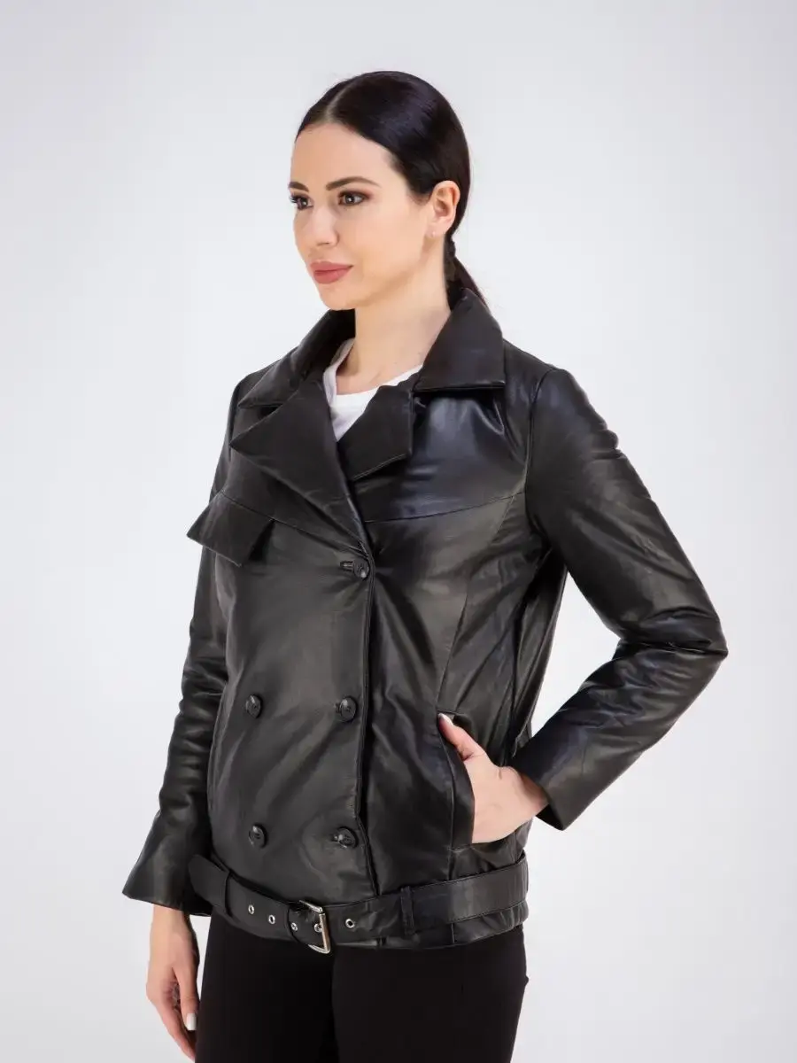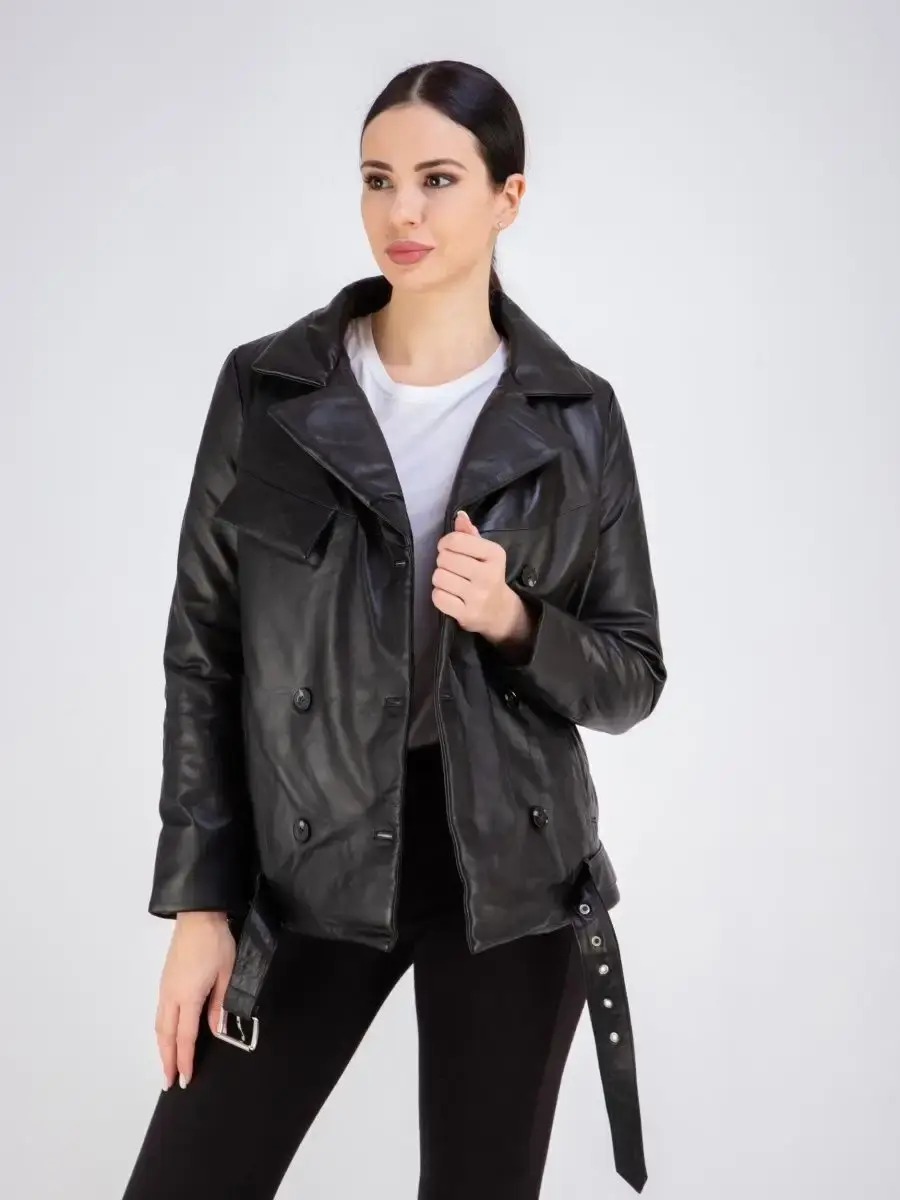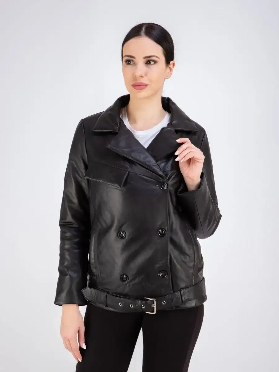 Куртка женская из натуральной кожи, двубортная, застежки на пуговицах. В комплекте кожаный ремень. Модная куртка женская кожаная из натуральной кожи прямого кроя, куртка женская весна - осень прекрасно подходить для холодных дней весной, осенью и летом, согреет теплой зимой.