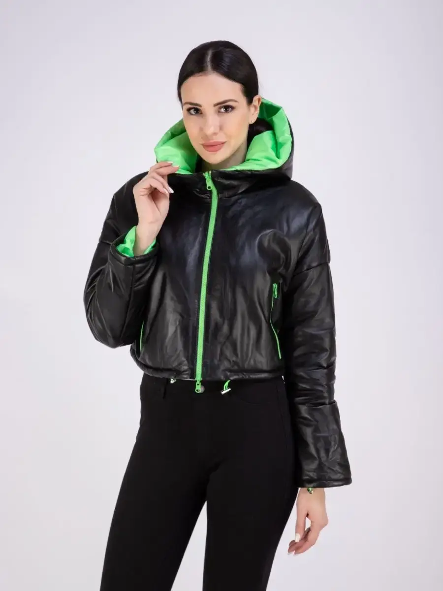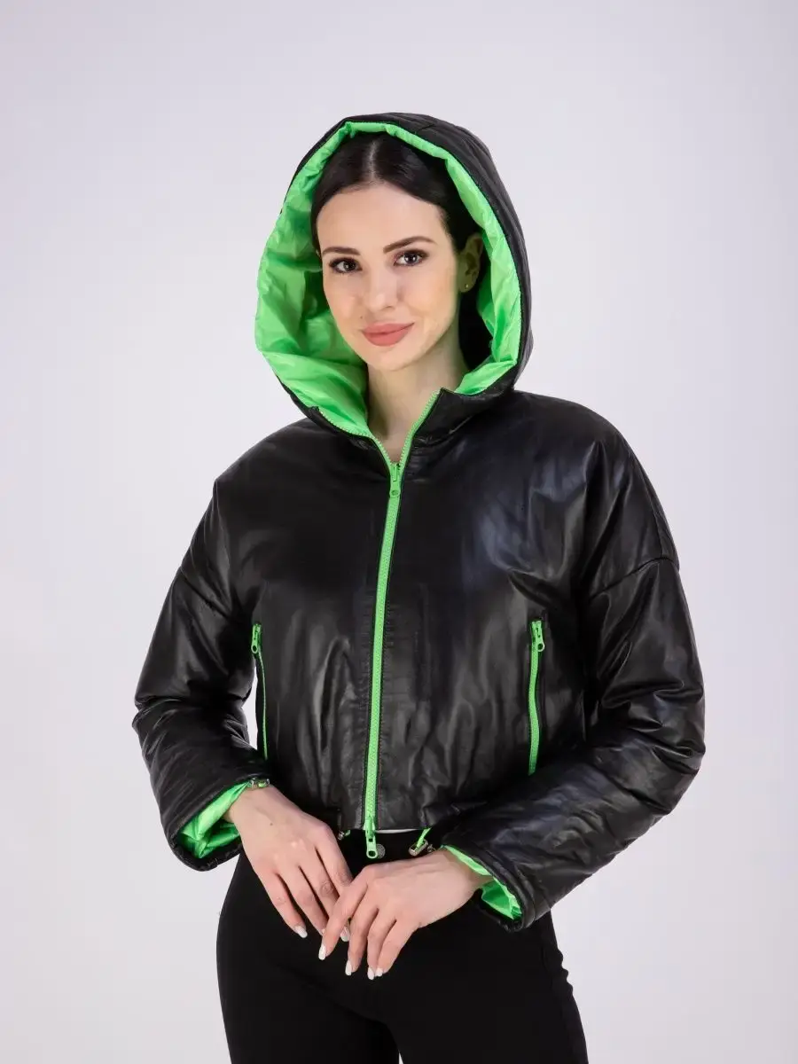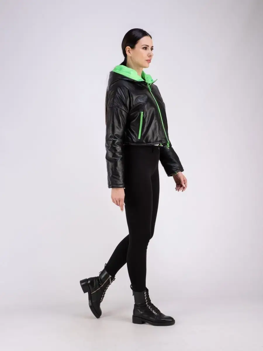 Оригинальная утепленная и укороченная кожаная куртка от бренда MONDIAL – модная верхняя одежда, которая поможет выразить свою индивидуальность! Стильная модель имеет объемный глубокий капюшон, воротник – стойку и длинные рукава со спущенной линией плеч. По низу изделия предусмотрена регулируемая кулиска. Длина по спинке 40см. Теплая куртка сшита из плотной и мягкой натуральной непромокаемой кожи, а в качестве утеплителя использован синтепон. Внутри курточка отделана прочной и приятной к телу контрастной подкладкой. Она застегивается на молнию и имеет свободный крой. Теплая и легкая кожанка премиум – качества рассчитана на температуру от 0 до +20 градусов. Она станет отличным выбором для холодной весенней и осенней погоды. Модель с боковыми карманами на молнии обладает прямым силуэтом и красиво сидит по фигуре. Это эстетичная и удобная верхняя одежда, которая не стесняет движений. Ее обязательно оценят автоледи и активные женщины разного возраста. Брендовая вещь с эксклюзивным дизайном приятно согревает в холодную погоду и дополнит повседневные образы в разных стилях. Крутая межсезонная кожанка турецкого производства станет частью молодежного casual - лука (кэжуал) или базового офисного и неформального спортивного наряда. Она представлена в трендовом серебристом сером цвете с подкладом яркого оранжевого оттенка. Также в коллекции бренда изделие в сочетании классического чёрного с сочным зеленым. Милая курточка для весны и осени понравится взрослым женщинам и молодым девушкам или подросткам. Это современная классика, в которой можно ходить на прогулки или на работу в офис и на учебу. Широкая размерная сетка позволяет подобрать кожанку для леди с разными особенностями фигуры. Большие размеры подойдут полным модницам. Курточка классно смотрится на девушках высокого, среднего и невысокого роста. У нас есть акции и распродажи, вы можете купить наши товары в подарок со скидкой!