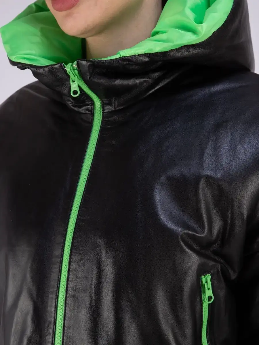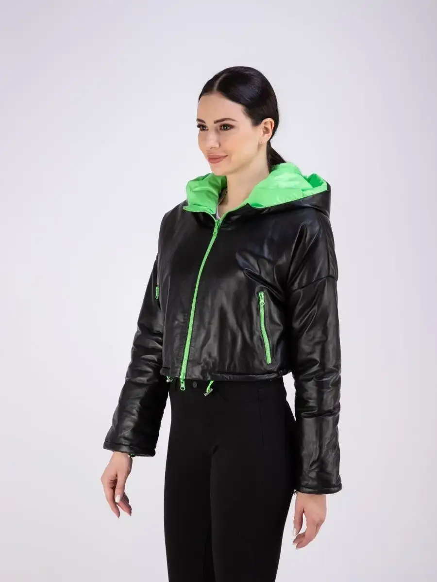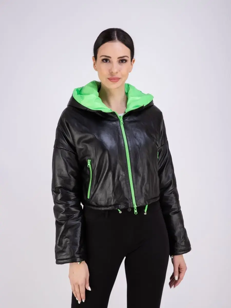 Оригинальная утепленная и укороченная кожаная куртка от бренда MONDIAL – модная верхняя одежда, которая поможет выразить свою индивидуальность! Стильная модель имеет объемный глубокий капюшон, воротник – стойку и длинные рукава со спущенной линией плеч. По низу изделия предусмотрена регулируемая кулиска. Длина по спинке 40см. Теплая куртка сшита из плотной и мягкой натуральной непромокаемой кожи, а в качестве утеплителя использован синтепон. Внутри курточка отделана прочной и приятной к телу контрастной подкладкой. Она застегивается на молнию и имеет свободный крой. Теплая и легкая кожанка премиум – качества рассчитана на температуру от 0 до +20 градусов. Она станет отличным выбором для холодной весенней и осенней погоды. Модель с боковыми карманами на молнии обладает прямым силуэтом и красиво сидит по фигуре. Это эстетичная и удобная верхняя одежда, которая не стесняет движений. Ее обязательно оценят автоледи и активные женщины разного возраста. Брендовая вещь с эксклюзивным дизайном приятно согревает в холодную погоду и дополнит повседневные образы в разных стилях. Крутая межсезонная кожанка турецкого производства станет частью молодежного casual - лука (кэжуал) или базового офисного и неформального спортивного наряда. Она представлена в трендовом серебристом сером цвете с подкладом яркого оранжевого оттенка. Также в коллекции бренда изделие в сочетании классического чёрного с сочным зеленым. Милая курточка для весны и осени понравится взрослым женщинам и молодым девушкам или подросткам. Это современная классика, в которой можно ходить на прогулки или на работу в офис и на учебу. Широкая размерная сетка позволяет подобрать кожанку для леди с разными особенностями фигуры. Большие размеры подойдут полным модницам. Курточка классно смотрится на девушках высокого, среднего и невысокого роста. У нас есть акции и распродажи, вы можете купить наши товары в подарок со скидкой!