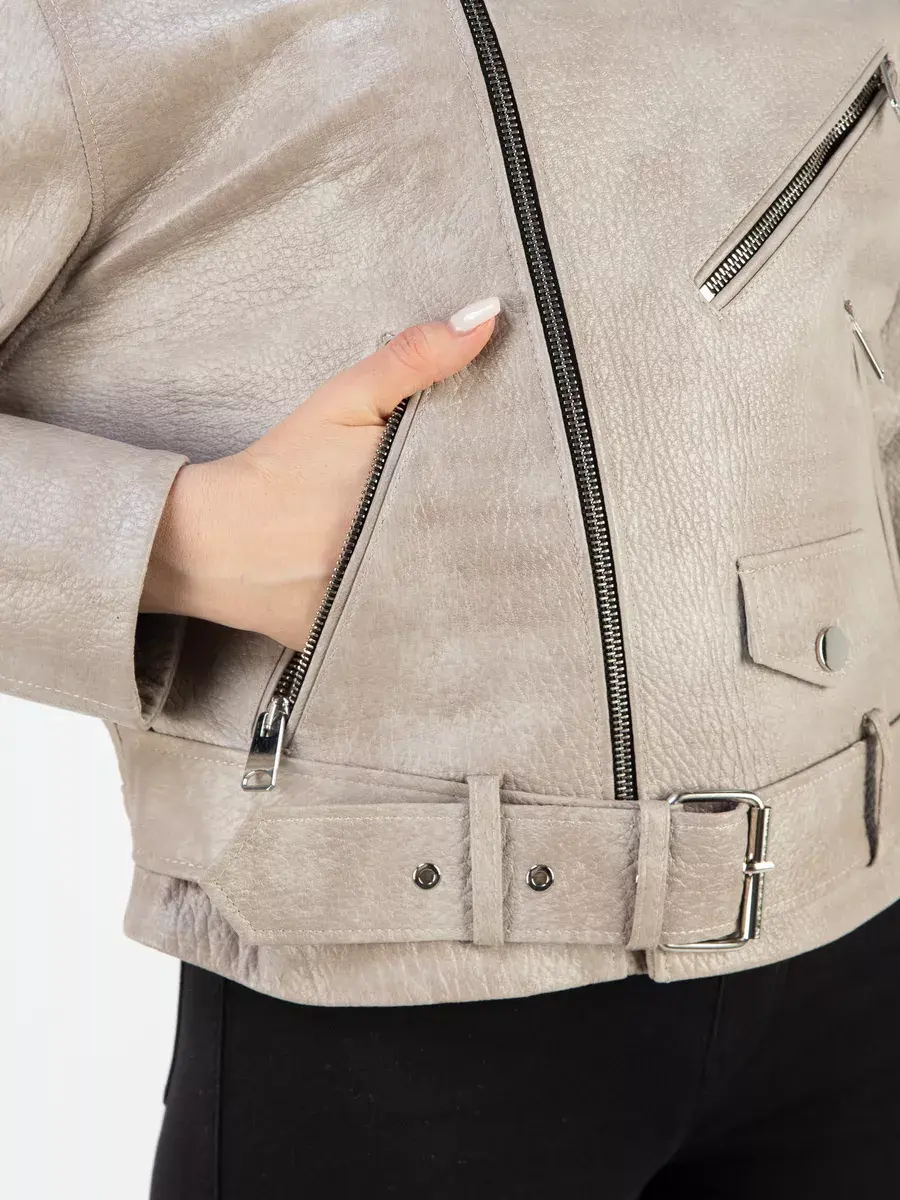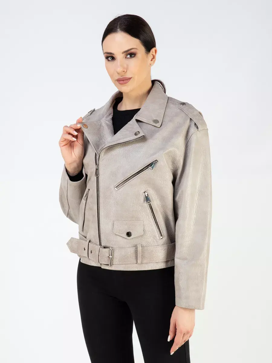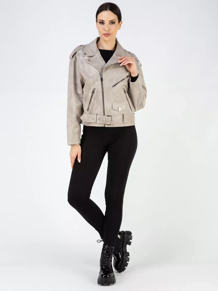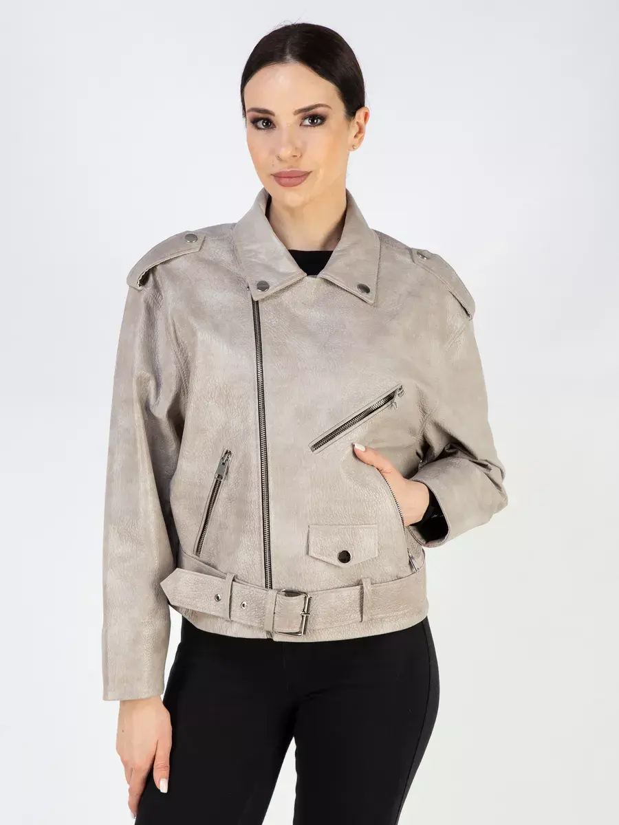 Каждая деталь этой кожаной куртки выполнена с особым вниманием к качеству материалов. Куртка женская весна - осень имеет длину по спинке 60 см. Свободный оверсайз крой обеспечивают этой демисезонной куртке комфорт и свободу движений. Классический воротник, фактура кожи, погоны, фурнитура придают косухе куртке уникальность и изысканность, идеально впишется в любой стиль и дополнит образ женщины или девочки, независимо от возраста и фигуры. Застежка на молнии обеспечивает легкость и удобство в использовании, а прорезные карманы на молниях по бокам дополнительно увеличивают функциональность куртки. Эта куртка весенняя, осенняя - отличный выбор для тех, кто ценит качество и стиль.