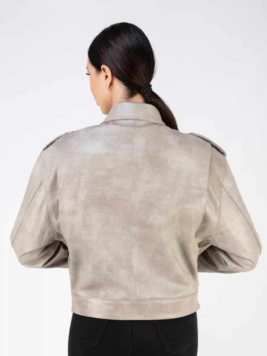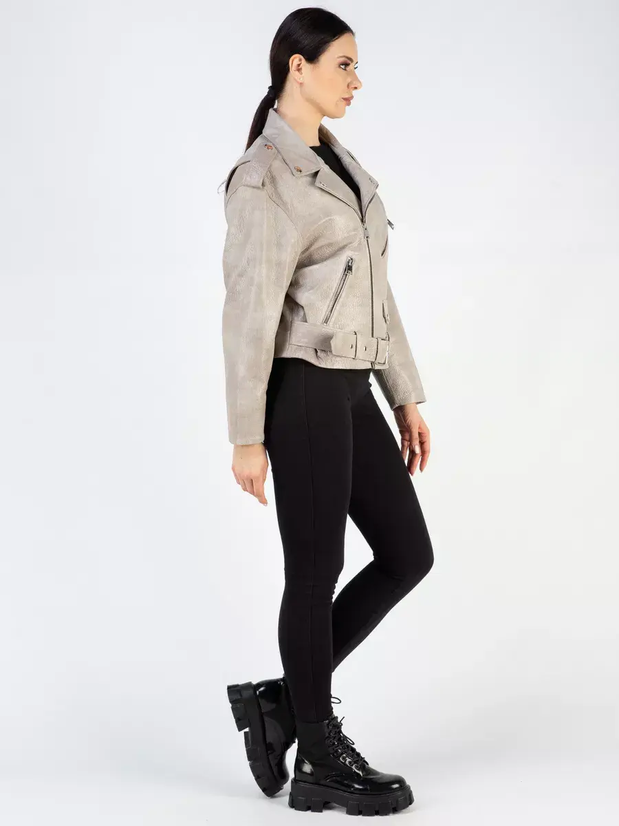 Эксклюзивная кожаная куртка женская, косуха женская оверсайз из натуральной кожи с эффектным и фактурным рисунком - это стильная и модная верхняя одежда, идеально подойдет для носки весной, летом и осенью. Куртка женская косуха изготовлена из высококачественной натуральной кожи ягненка выделки джумбо, с эффектом старения и с неравномерной окраской.