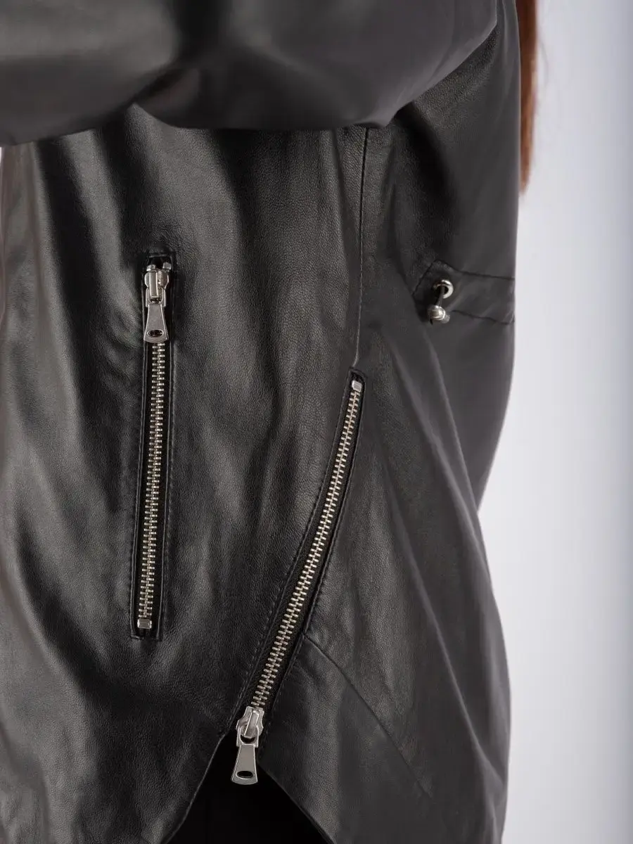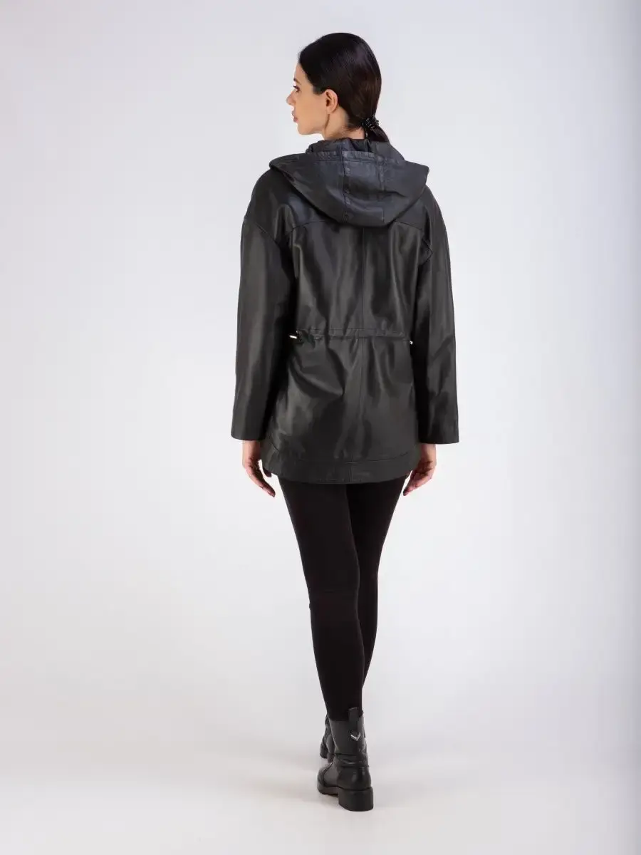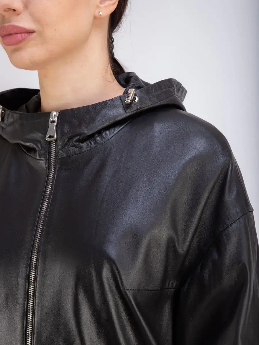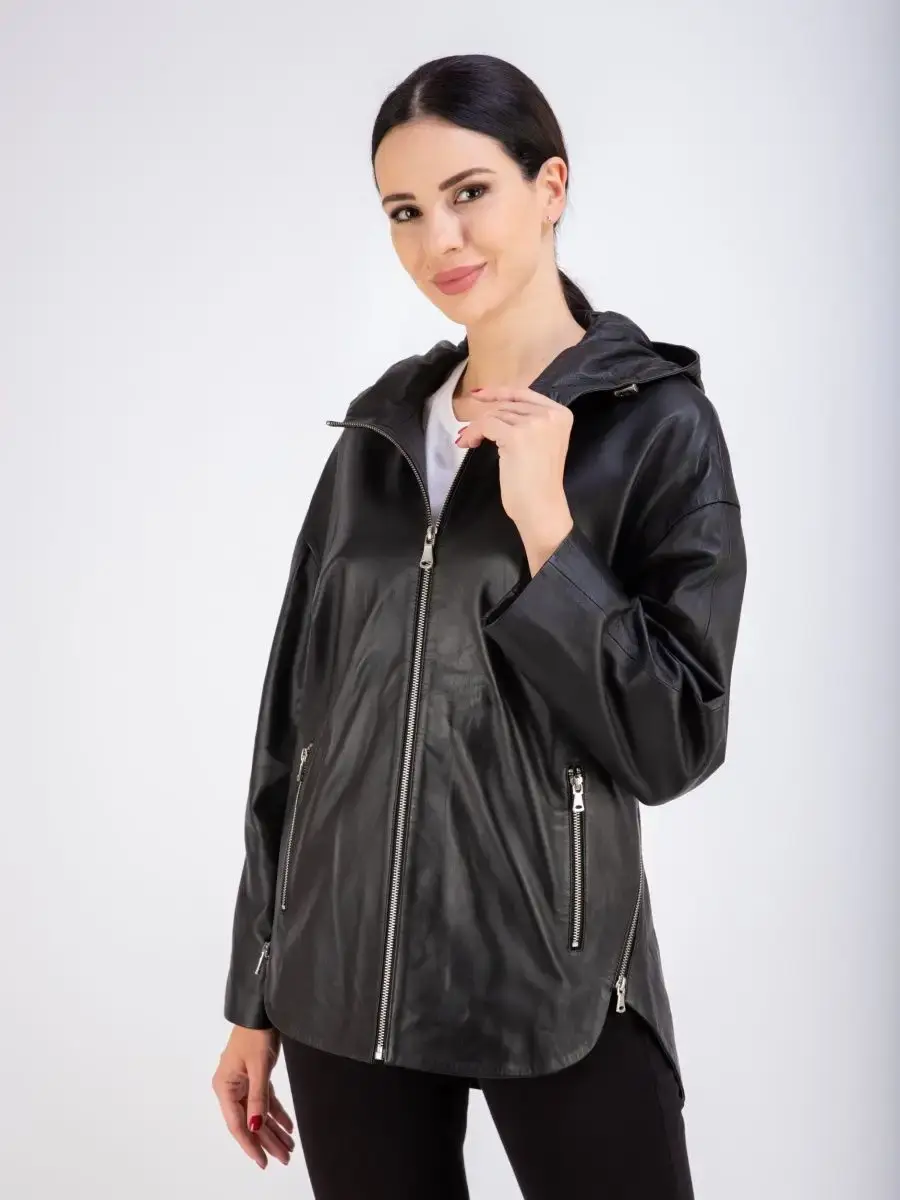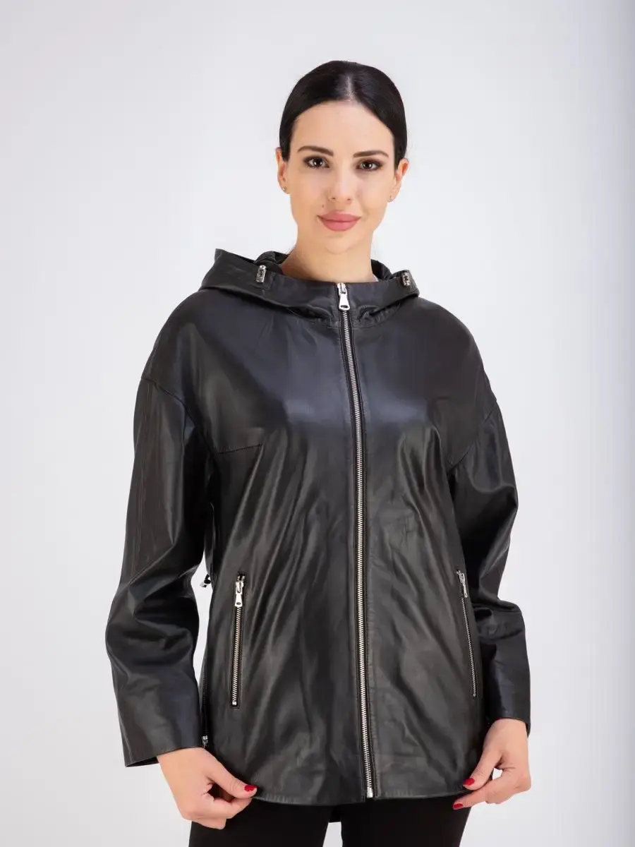 Куртка женская из натуральной кожи с капюшоном идеальное решение для создания универсального гардероба. Стильная куртка женская, весенняя куртка женская - осенняя из натуральной кожи демисезонная выполнена из прочной и в то же время из мягкой и гладкой натуральной кожи ягненка. Женская куртка кожаная, куртка женская демисезонная с застежкой на молнии и с прорезными карманами на молнии замечательный выбор, если вы намерены не только чувствовать себя комфортно, но и хотите выглядеть стильно и модно. Кожаная куртка женская больших размеров с капюшоном на кулисках прекрасно подходить для холодных дней весной, осенью и летом. Куртка демисезонная женская отличный вариант на каждый день и сочетается с различными вещами. Кожаная куртка женская весна - осень , куртка кожаная женская прекрасно впишется практически в любой стиль - повседневный, городской, офисный и вечерний. Свободный крой кожаной куртки оверсайз, разрезы по бокам на молнии позволяет носить девушкам и женщинам с любым типом фигуры.