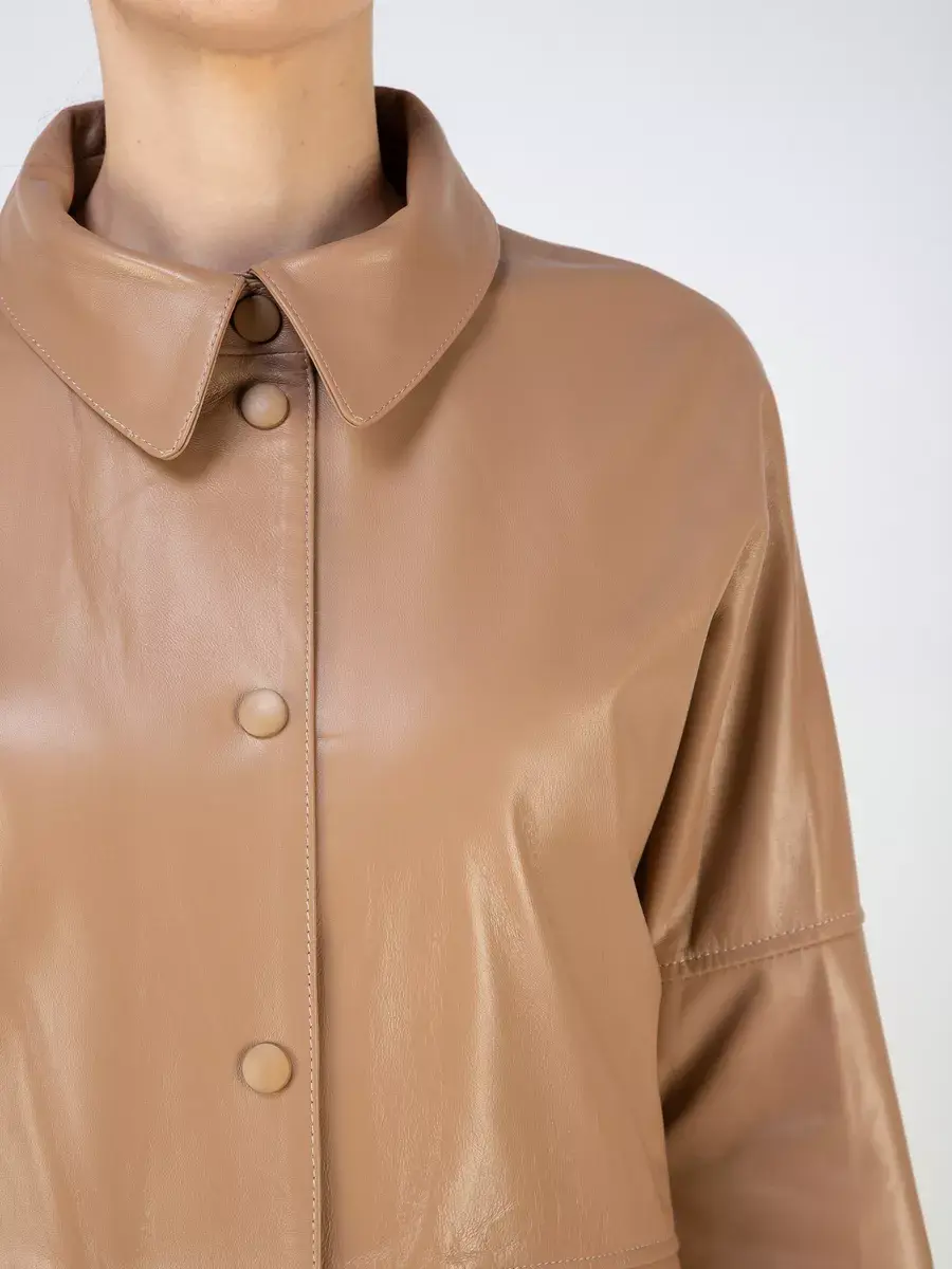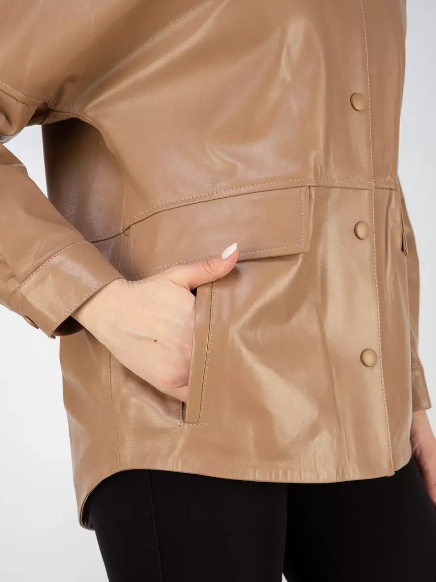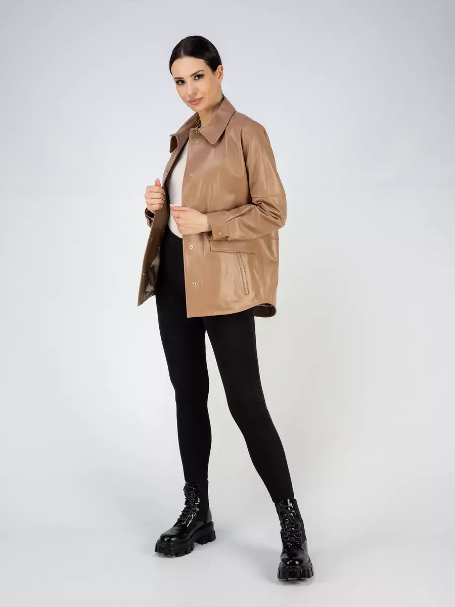 Благодаря его длине по спинке 75см и стильному прямому крою, куртка кожаная женская, рубашка кожаная станет идеальным выбором для весеннего и летнего сезона.
