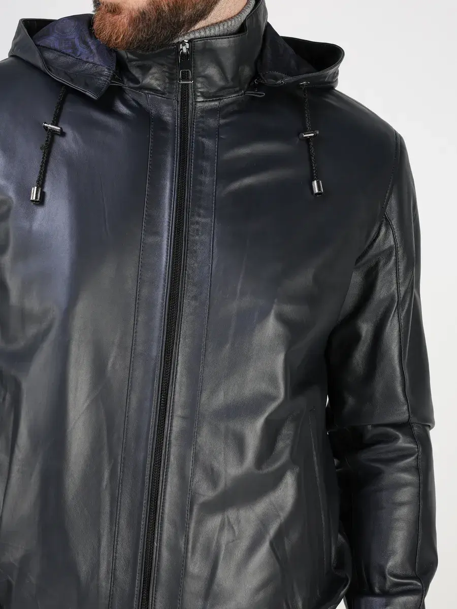 Мужская куртка спортивная с капюшоном выполнена из прочной и в то же время из мягкой натуральной кожи ягненка, которая обеспечивает комфорт и долговечность. Кожа износоустойчивая к царапинам и воздействию окружающей среды поэтому дольше сохраняет отличный внешний вид.