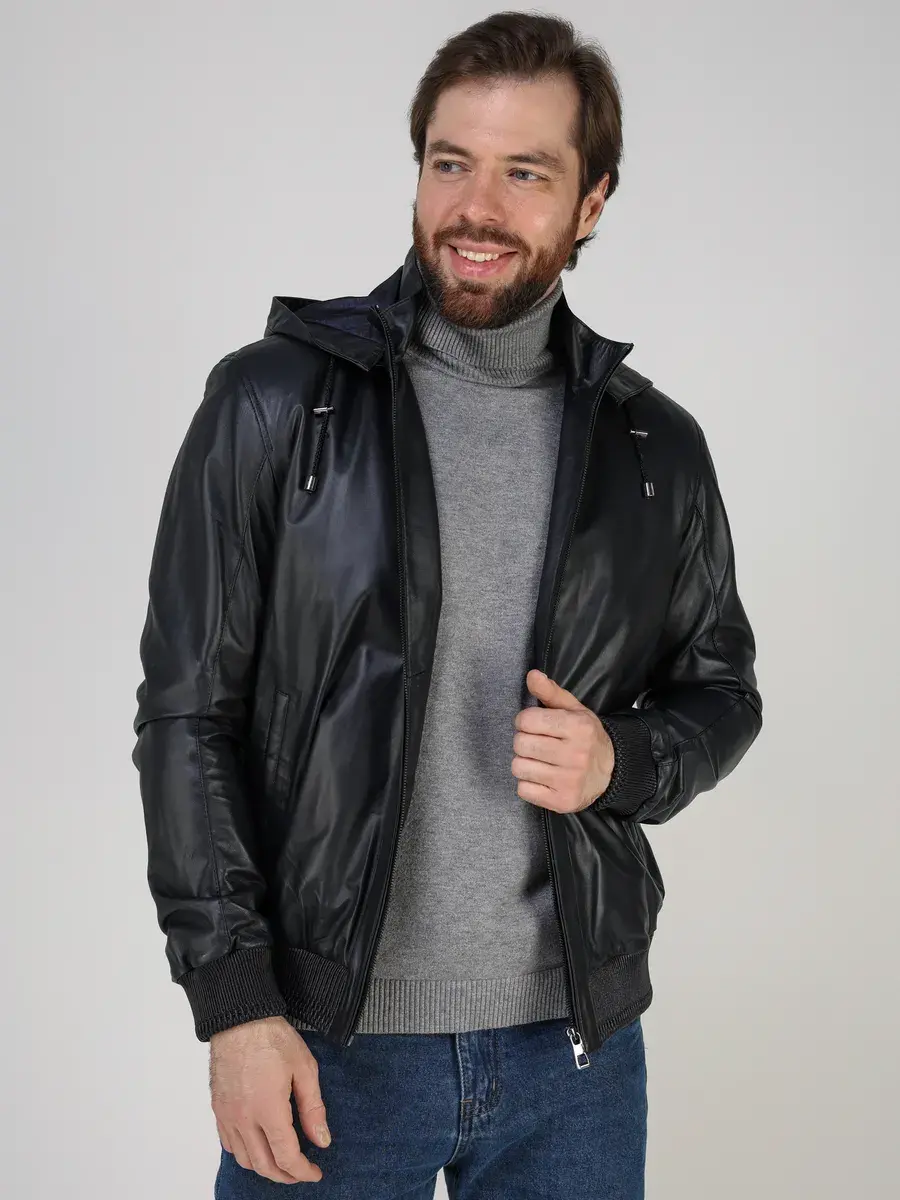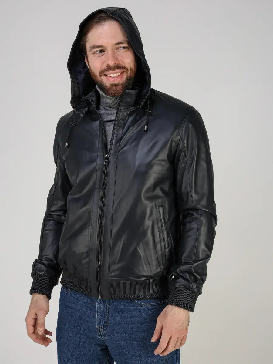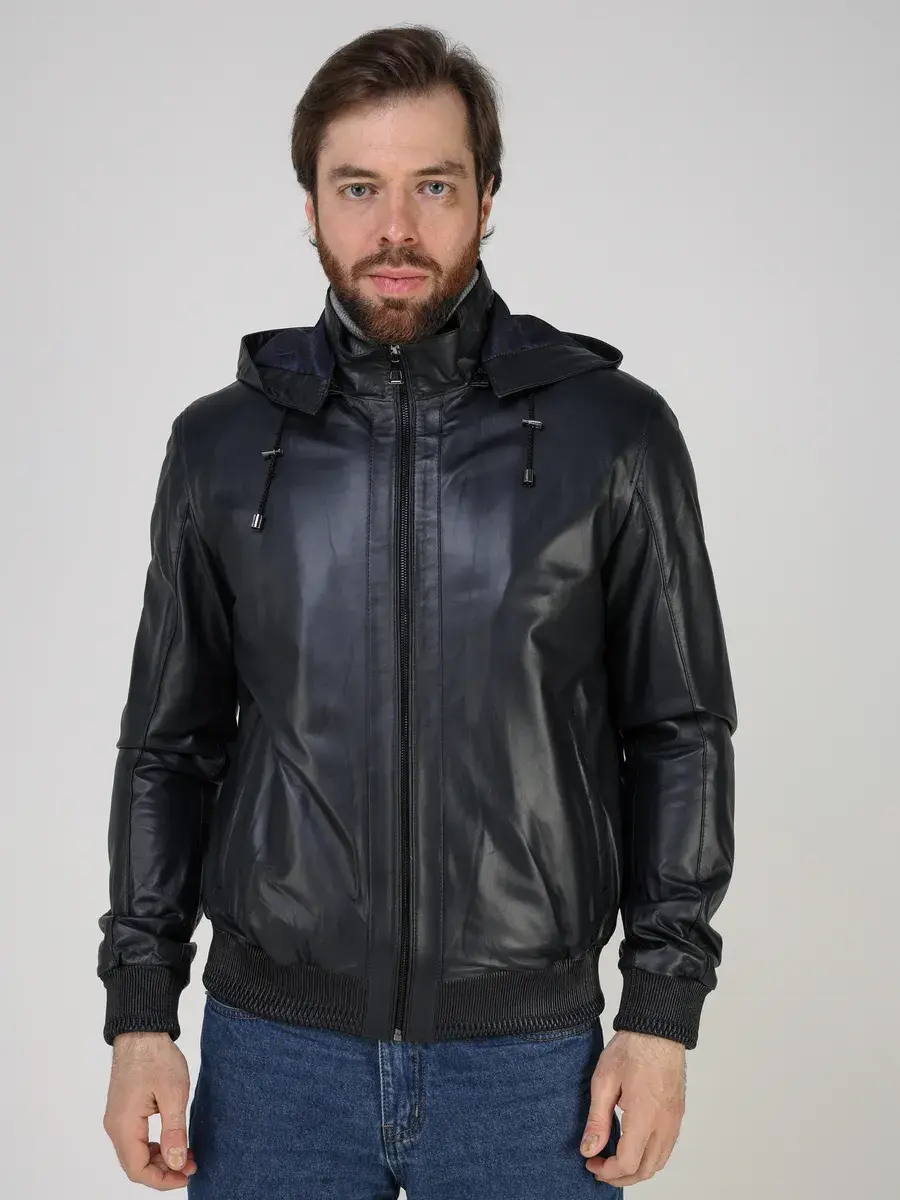 куртка мужская кожаная натуральная с капюшоном, куртка мужская демисезонная осень весна лето,