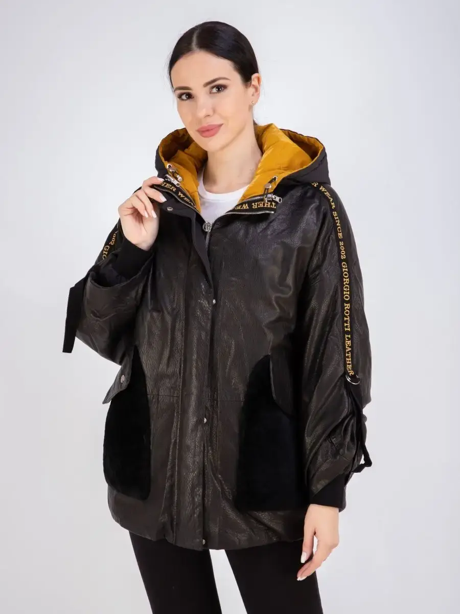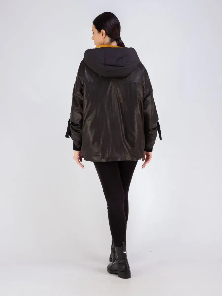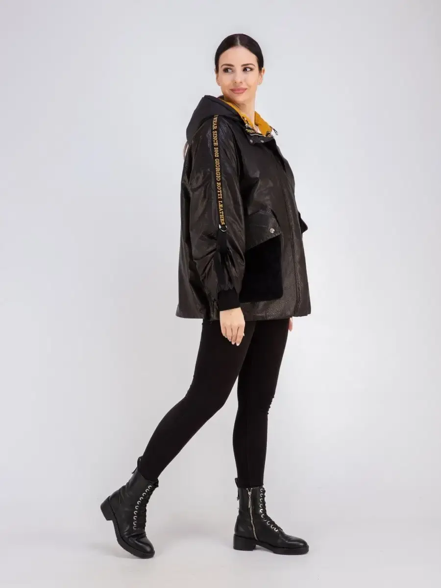 Куртка женская из натуральной кожи с съемной курткой из полиэстере на синтепоне. Куртка трансформер, можно носить в трех вариантах - с дутиком внутри, отдельно только кожаную куртку, отдельно только дутик. Длина по спинке кожаной куртки 90см, отдельно дутик 65см. На капюшоне и по нижней части кожаной куртки есть утягивающие кулиски. Универсальная кожаная куртка для всех сезонов, прекрасный выбор для тех, кто оценит не только красоту, но и комфортную посадку, качество пошива, стильный фасон.