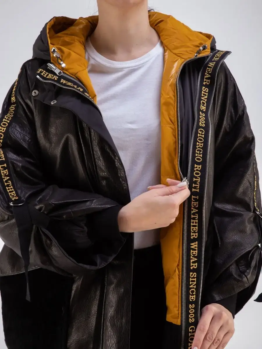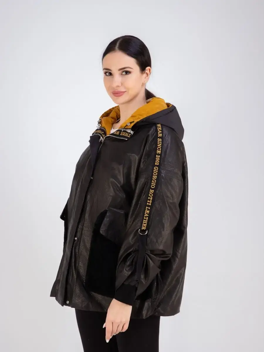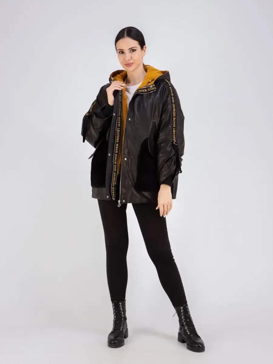 Куртка женская из натуральной кожи с съемной курткой из полиэстере на синтепоне. Куртка трансформер, можно носить в трех вариантах - с дутиком внутри, отдельно только кожаную куртку, отдельно только дутик. Длина по спинке кожаной куртки 90см, отдельно дутик 65см. На капюшоне и по нижней части кожаной куртки есть утягивающие кулиски. Универсальная кожаная куртка для всех сезонов, прекрасный выбор для тех, кто оценит не только красоту, но и комфортную посадку, качество пошива, стильный фасон.