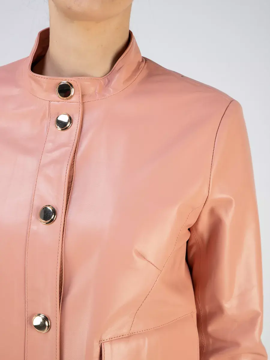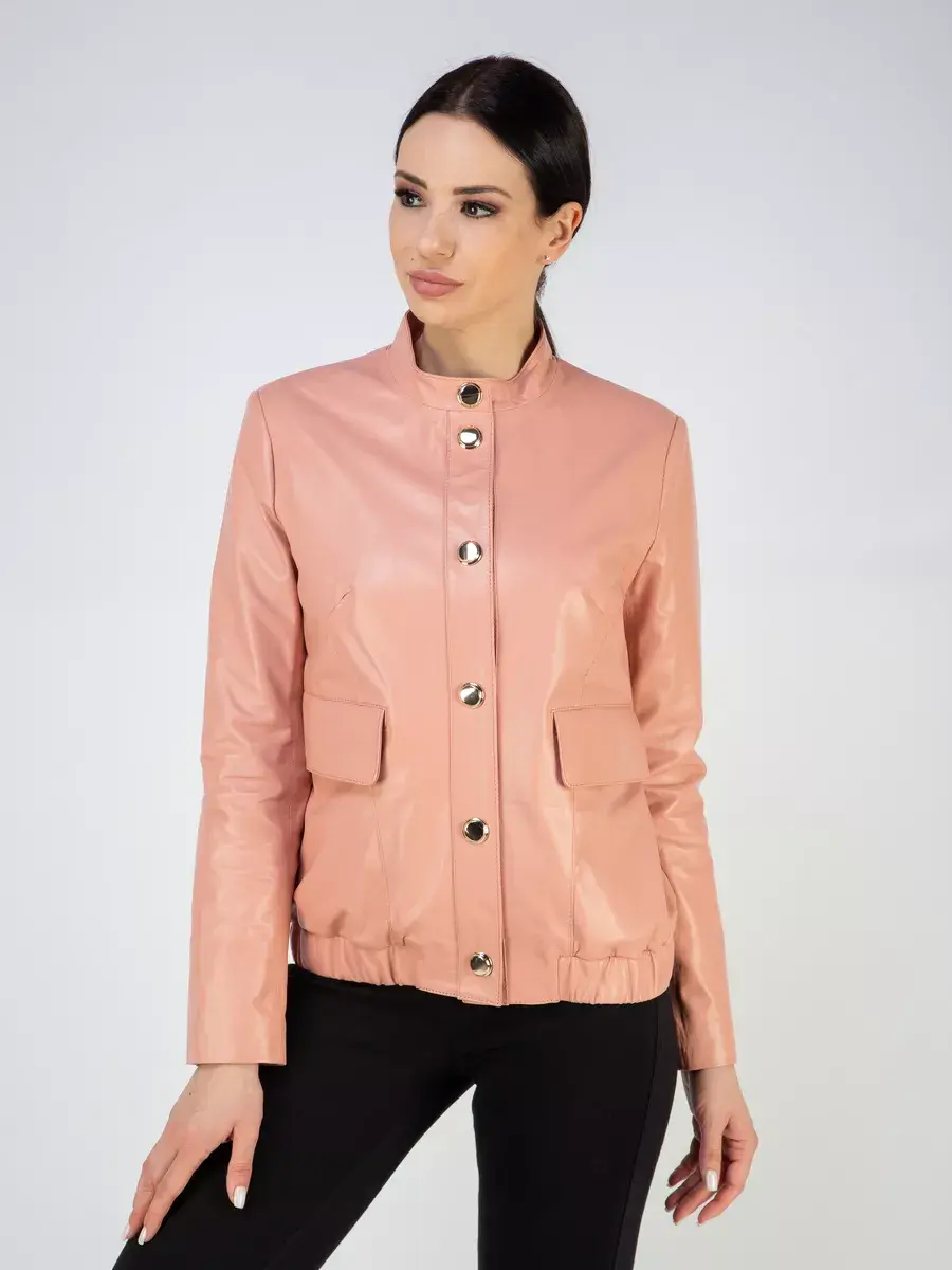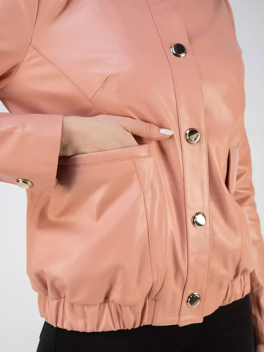 Каждая деталь этой кожаной куртки выполнена с особым вниманием к качеству материалов. Изысканный материал, ровные швы, прорезные карманы, манжеты с модными кнопками и кожаная резинка в районе пояса добавляют акценты стиля и функциональности, делают эту женскую куртку универсальным элементом гардероба, который подходит практически под любой стиль, деловой или повседневный. Стильная застежка на декоративных кнопках придаёт образу особый шарм. Классический воротник стойка добавляет изюминку образу, делая его неповторимым.