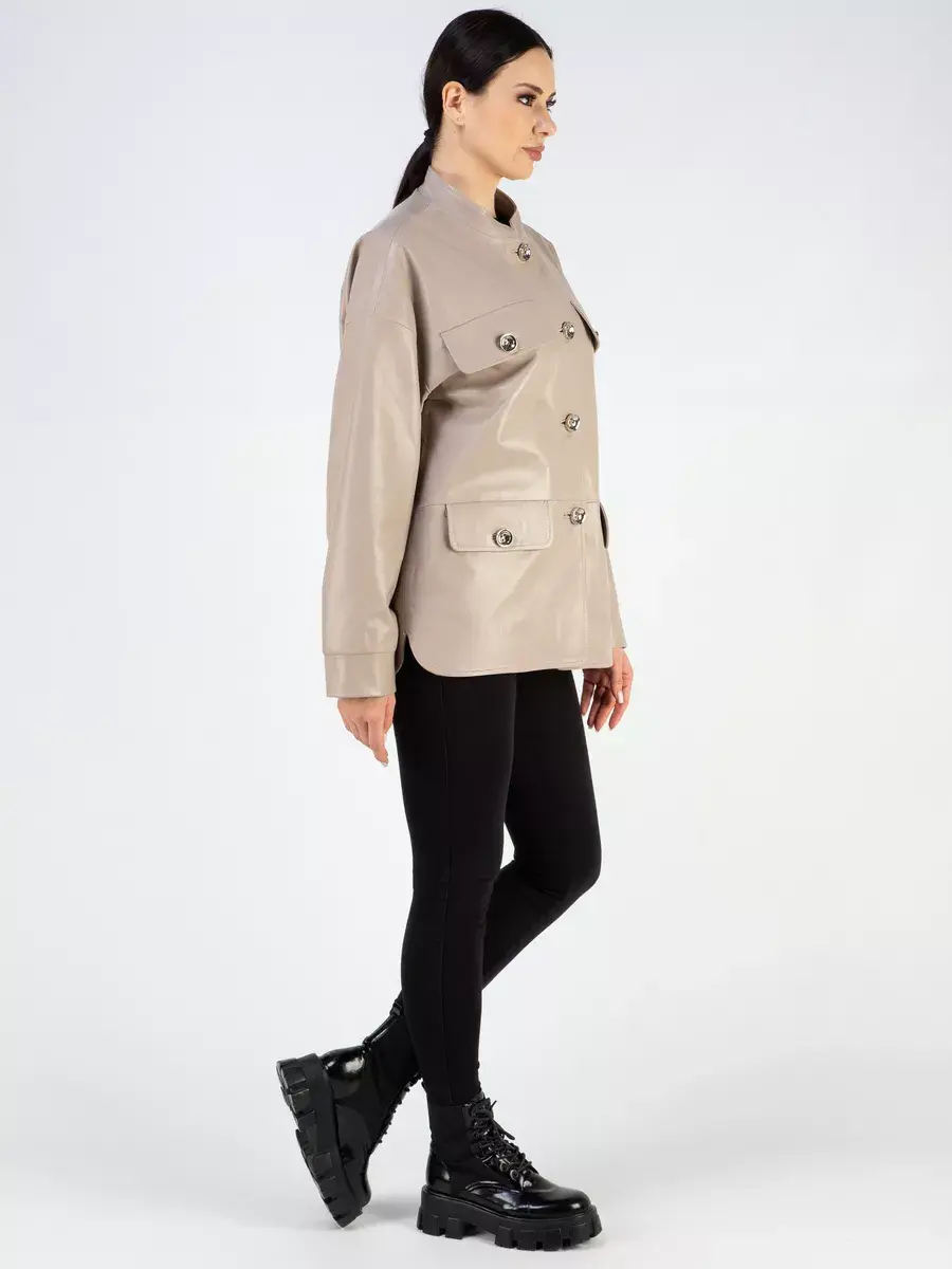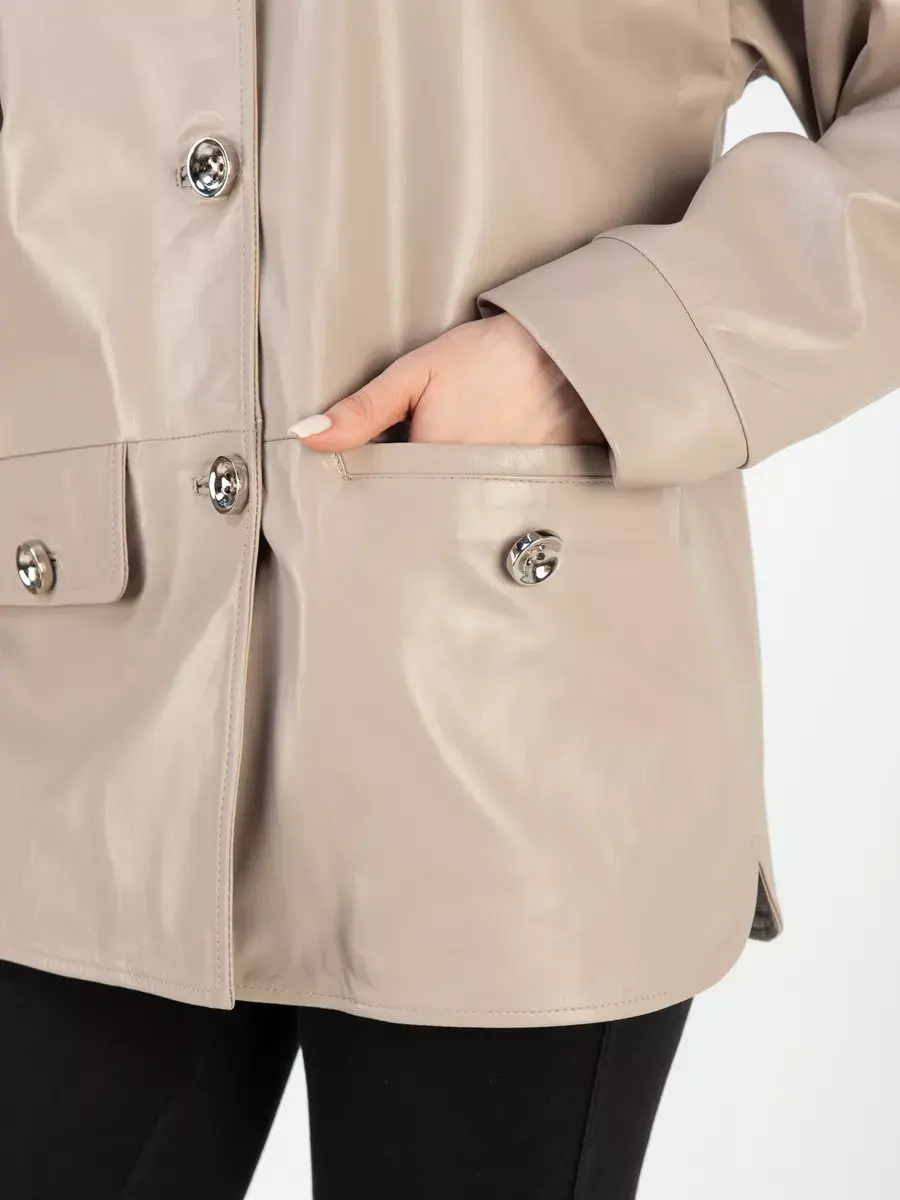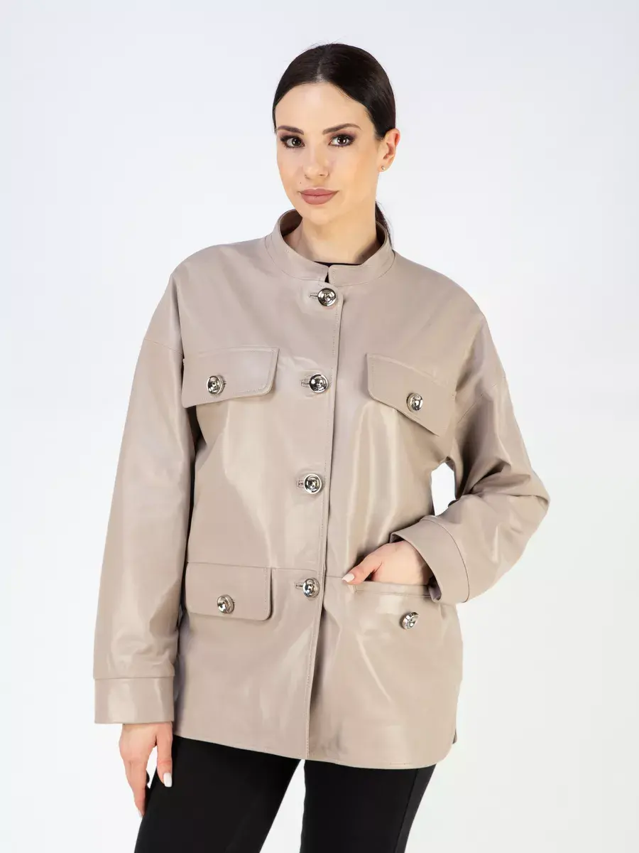 Каждая деталь этой кожаной куртки выполнена с особым вниманием к качеству материалов. Изысканный материал, ровные швы, спущенная линия плеча, прорезные карманы с клапанами, манжеты и фурнитура добавляют акценты стиля и функциональности, делают эту женскую куртку универсальным элементом гардероба, который подходит практически под любой стиль, деловой или повседневный. Стильная застежка на декоративных пуговицах придаёт образу особый шарм. Воротник стойка добавляет изюминку образу, делая его неповторимым.