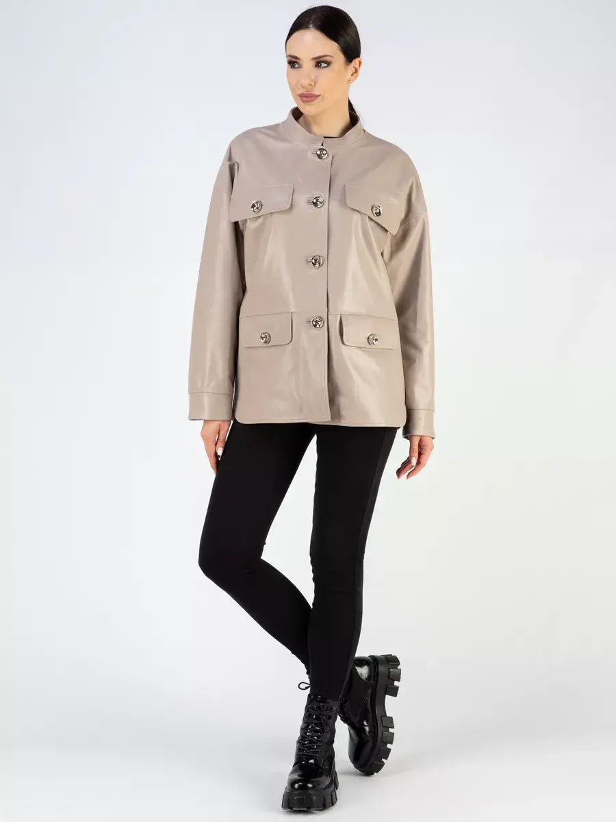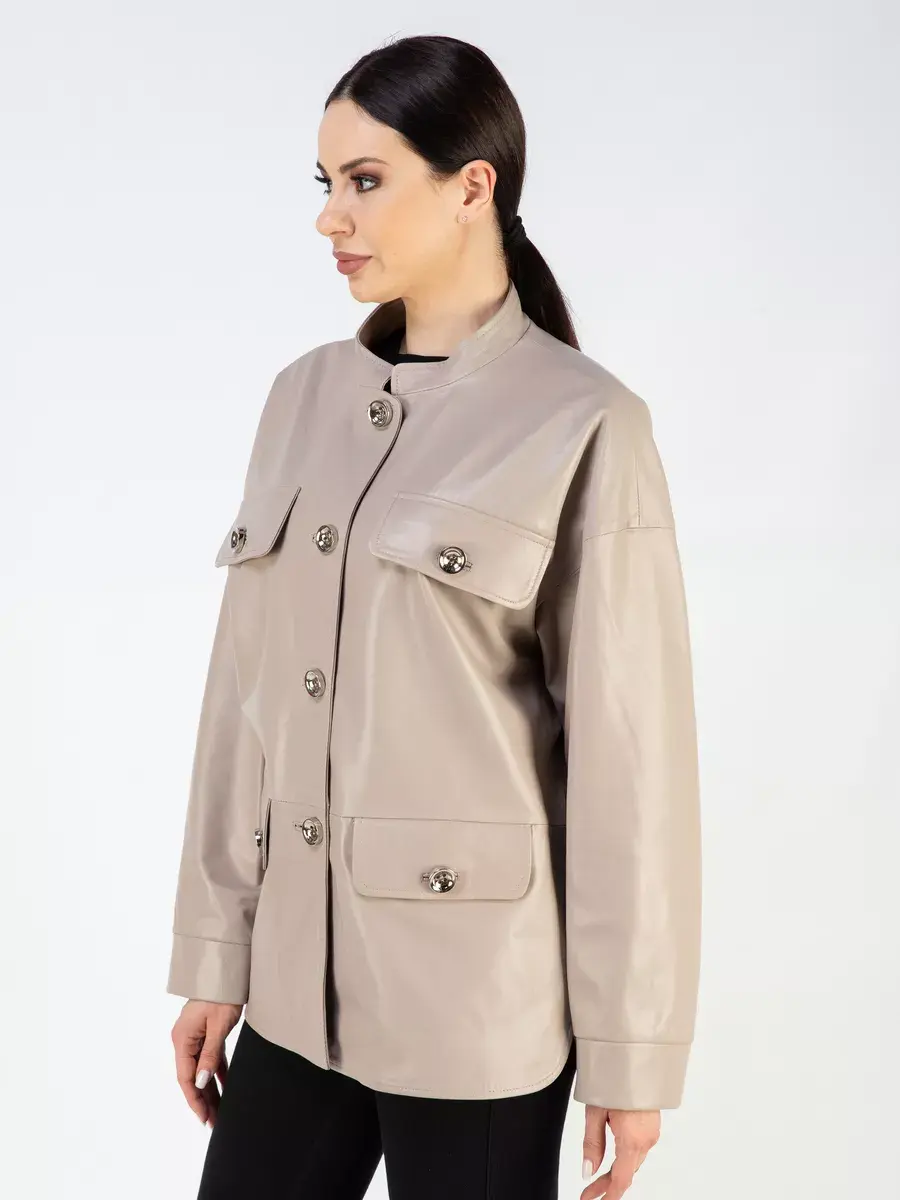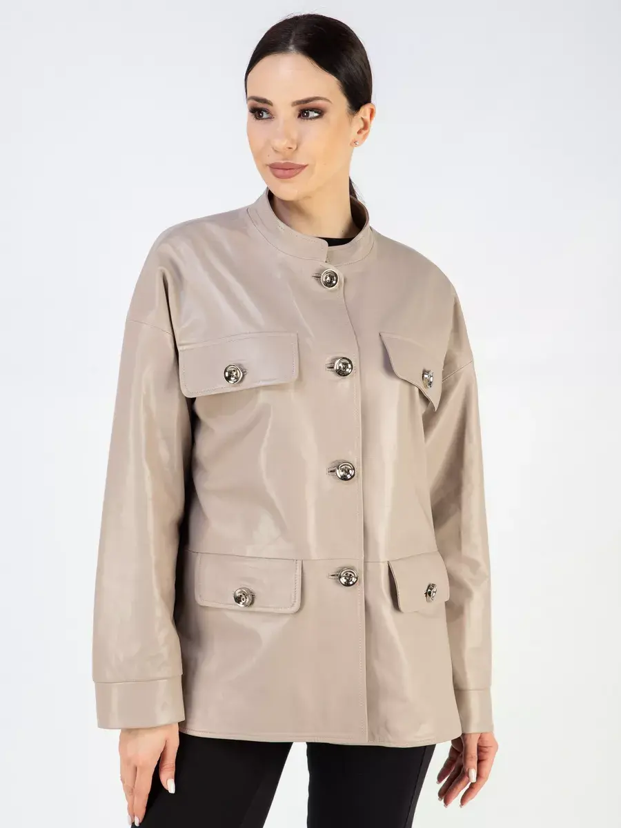 Каждая деталь этой кожаной куртки выполнена с особым вниманием к качеству материалов. Изысканный материал, ровные швы, спущенная линия плеча, прорезные карманы с клапанами, манжеты и фурнитура добавляют акценты стиля и функциональности, делают эту женскую куртку универсальным элементом гардероба, который подходит практически под любой стиль, деловой или повседневный. Стильная застежка на декоративных пуговицах придаёт образу особый шарм. Воротник стойка добавляет изюминку образу, делая его неповторимым.