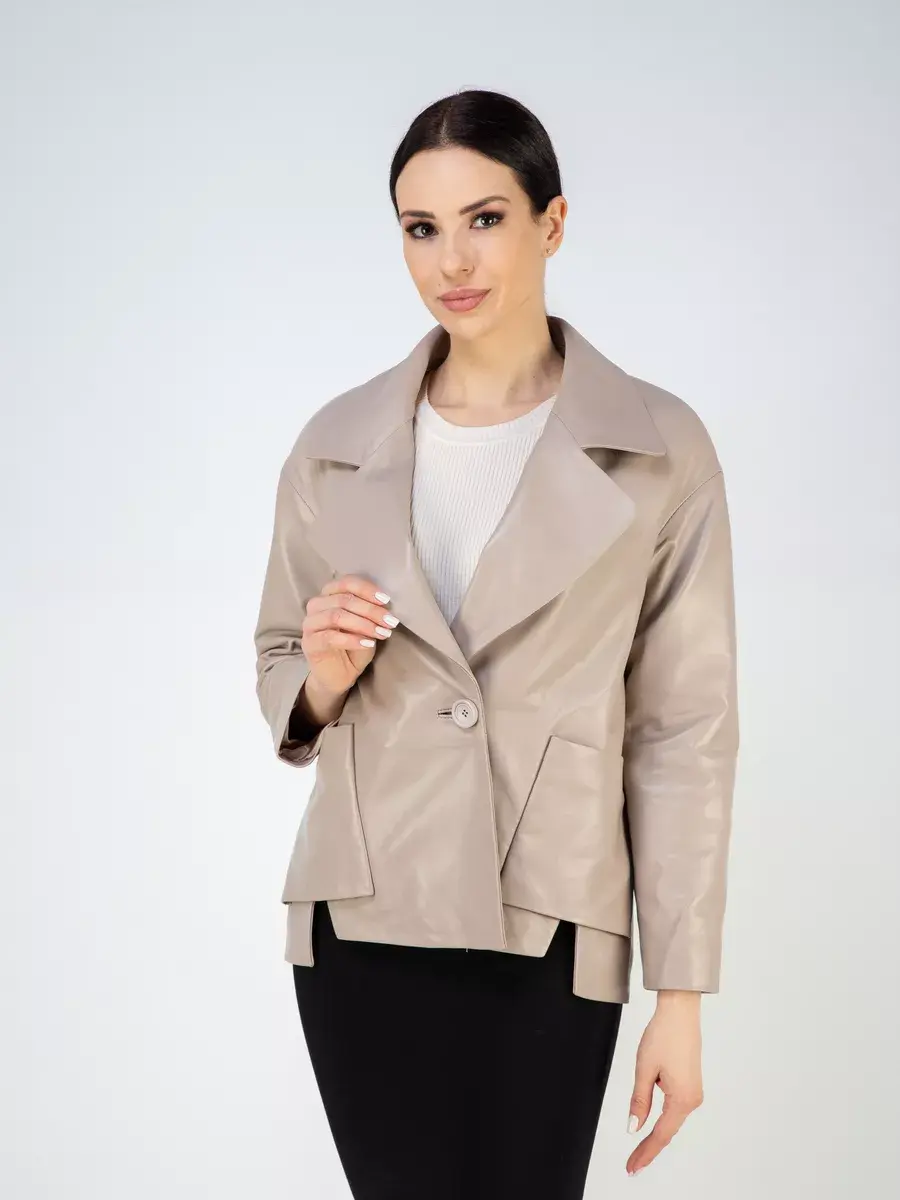 Модная и стильная кожаная куртка женская весна - лето из натуральной кожи ягненка, блейзер женский кожаный пиджак, делает образ женщины утонченным и элегантным. Женская куртка весенняя и осенняя, летняя изготовлена из высококачественной натуральной кожи выделки плонже - кожа молодых овец. Применяется именитыми дизайнерами для создания эксклюзивных модных коллекций верхней одежды. Кожа гладкая и очень прочная, легкая и надежная.
