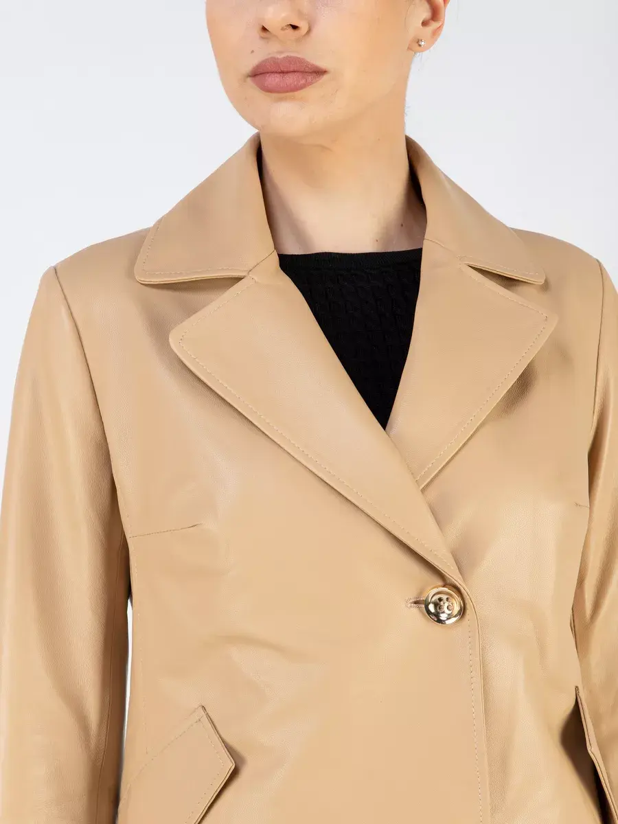 Каждая деталь этой кожаной куртки выполнена с особым вниманием к качеству материалов. Ровные швы, прорезные карманы с декоративными клапанами, манжеты с модными пуговицами добавляют акценты стиля и функциональности, делают эту женскую куртку универсальным элементом гардероба, который подходит практически под любой стиль, деловой или повседневный. Стильная застежка на декоративных пуговицах придаёт образу особый шарм. Классический английский воротник добавляет изюминку образу, делая его неповторимым.