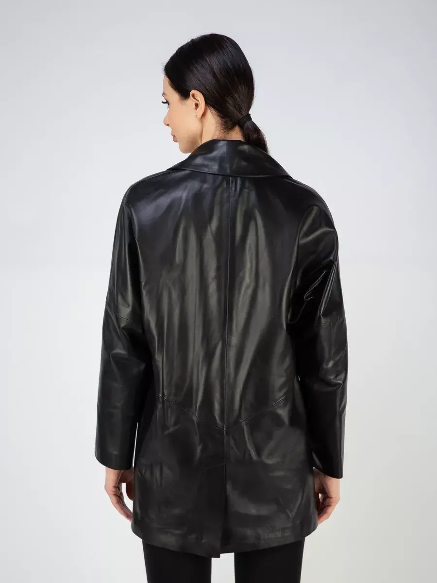 Каждая деталь этой кожаной куртки выполнена с особым вниманием к качеству материалов. Спущенная линия плеча, ровные швы и свободный - оверсайз крой делают эту женскую куртку универсальным элементом гардероба, который подходит практически под любой стиль, деловой или повседневный. Шлица придает изделию легкость движения. Классический английский воротник добавляет изюминку образу, делая его неповторимым. Застежка на пуговице, накладные карманы - все это приятные детали образа женственности и шарма.