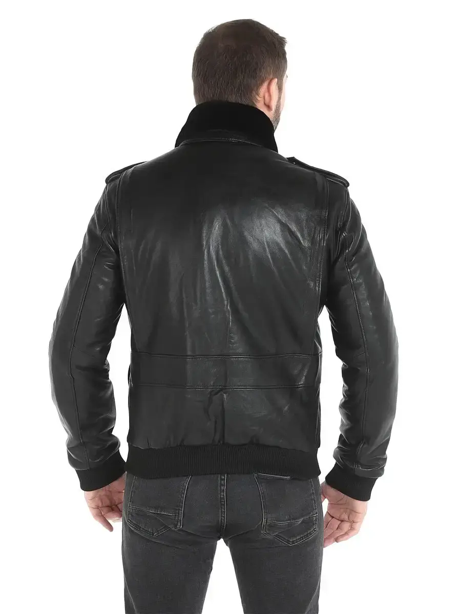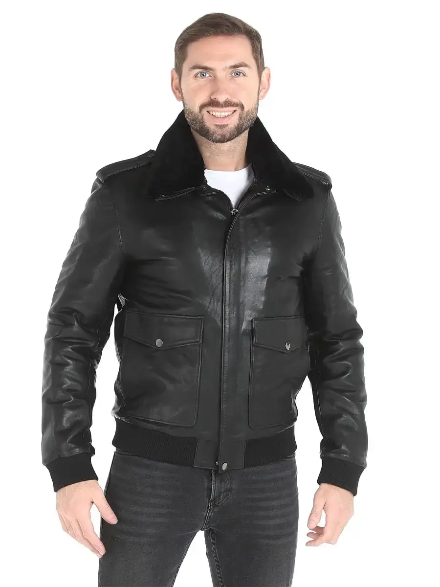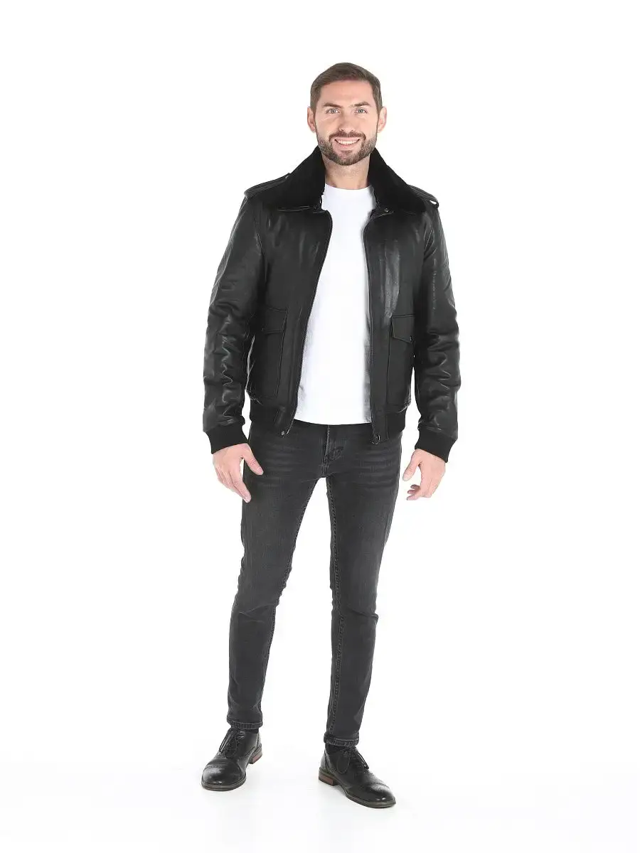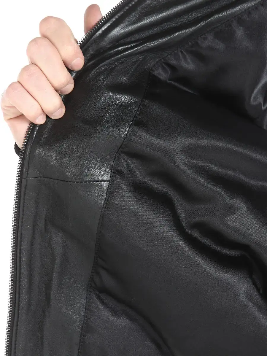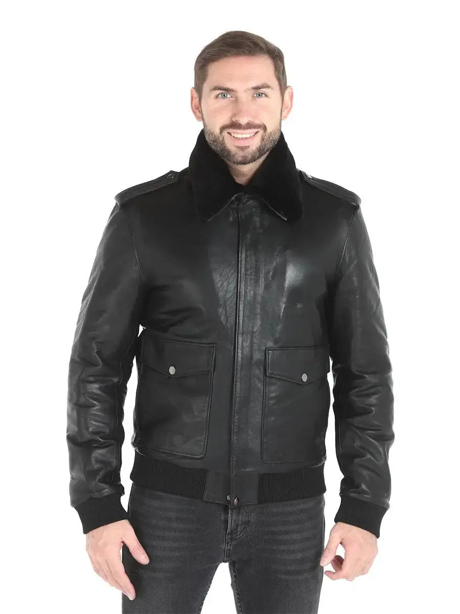 Мужская стеганая кожаная куртка из 100% высококачественной натуральной кожи ягненка. Меховой воротник съемный, из овчины. Производство Турция.