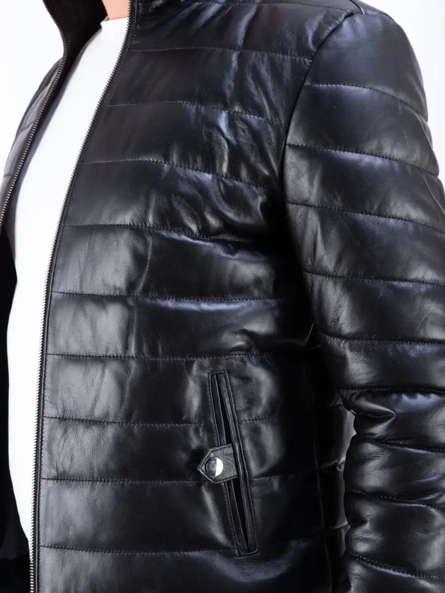 Стильная куртка мужская из натуральной кожи ягненка. Лаконичная стеганая модель комфортной посадки с карманами и воротником-стойкой. Куртка мужская кожаная натуральная выполнена из гладкой и мякой кожи. Утепленная стеганая куртка в качестве застежки молния, карманы прорезные на кнопке. MONDIAL Производство Турция.