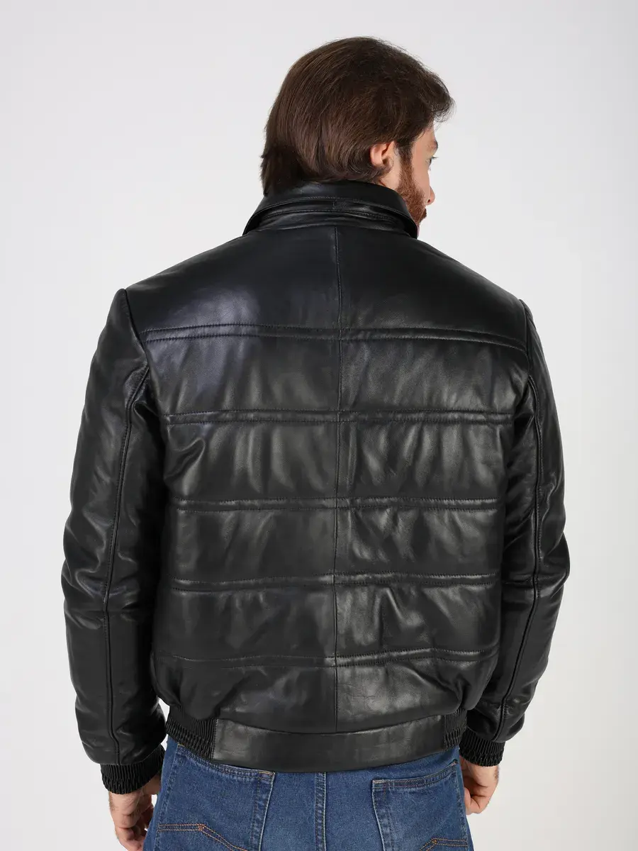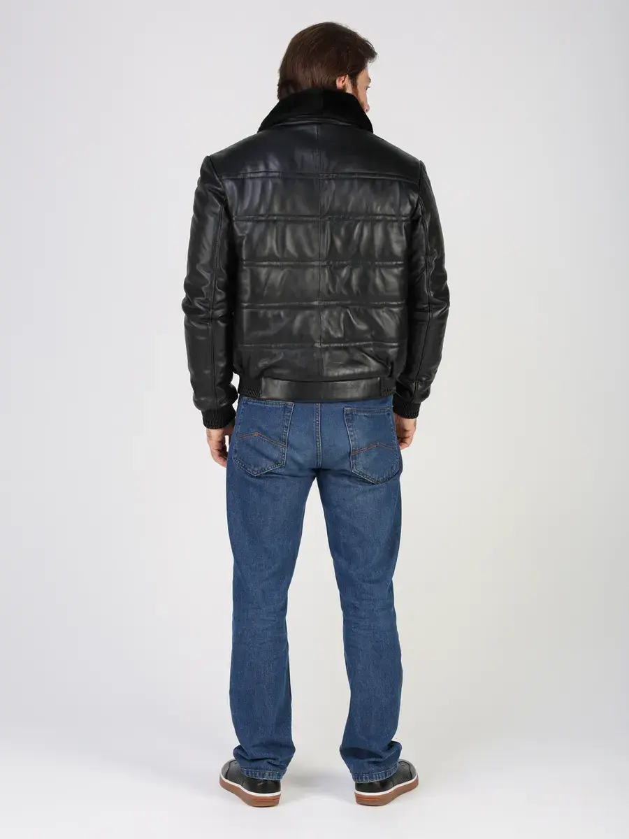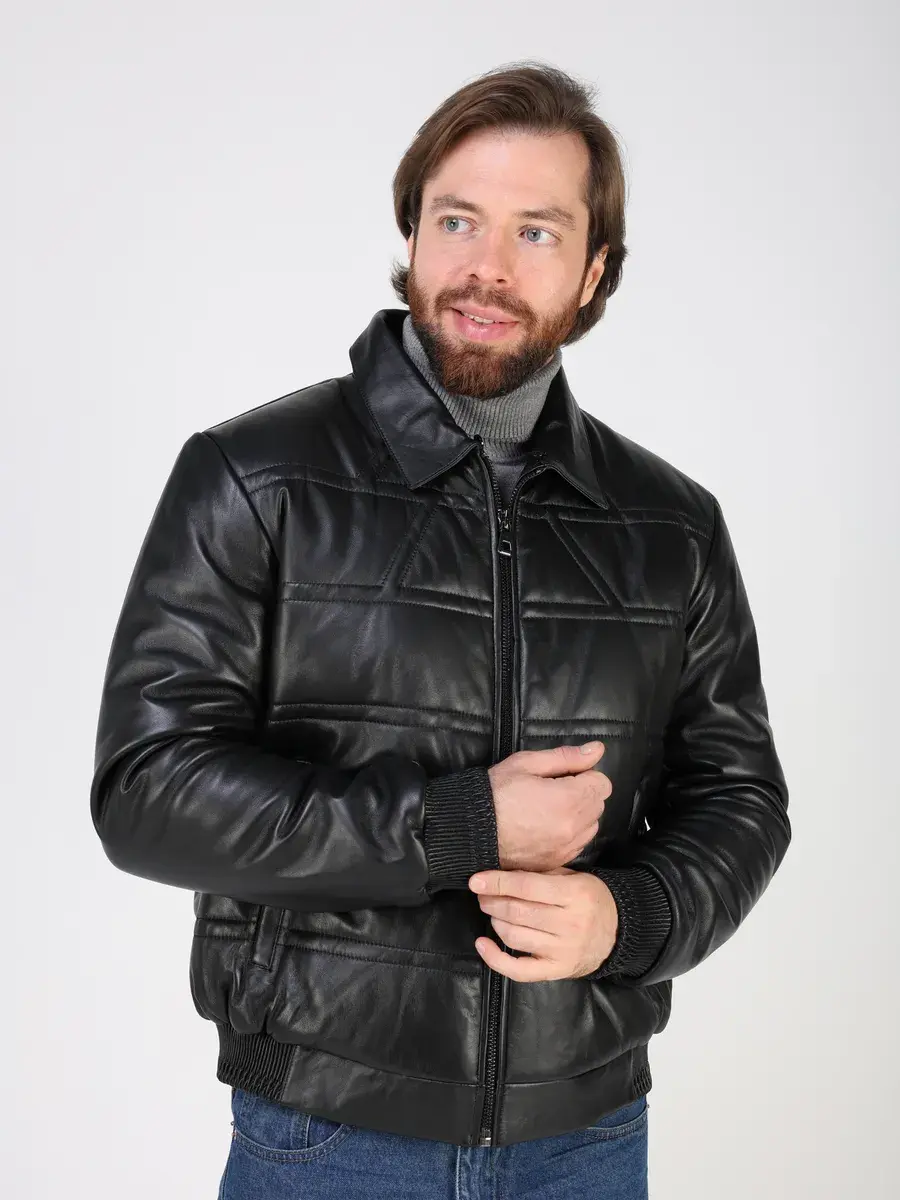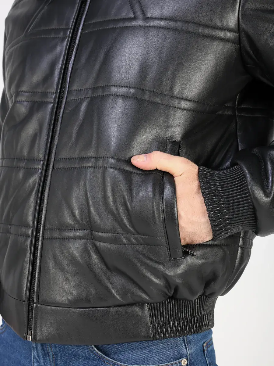 Кожанка пуховик зимний мужской короткий, обладающая оптимальной длиной, лаконичным дизайном без лишних декоративных элементов, доступно в большом выборе размеров - от маленьких до плюс - сайз.