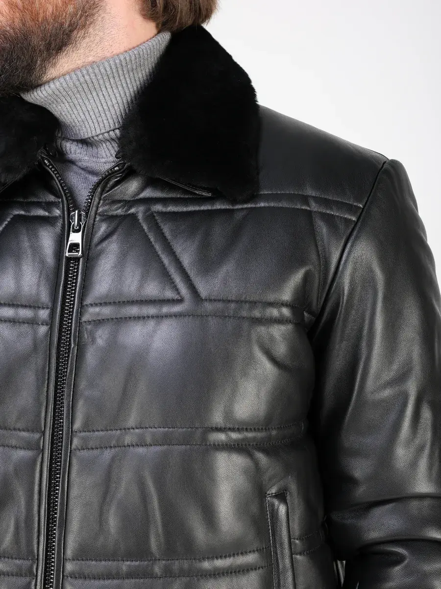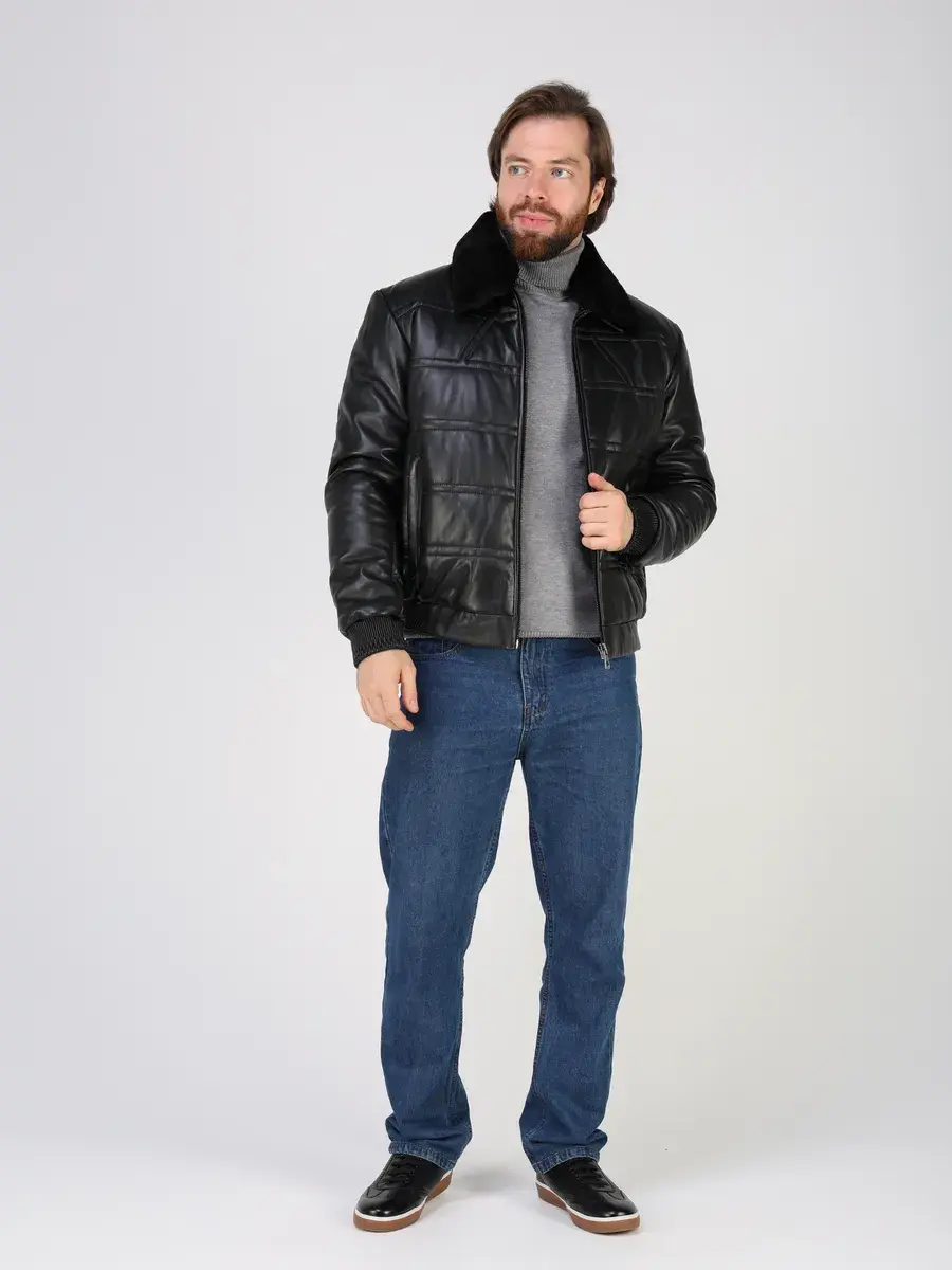 Стильный отложной воротник с съемным мехом, стеганая кожа, прямой свободный крой, декоративные кожаные манжеты с модным узором под плетения придают спортивной зимней куртке уникальность и изысканность, идеально впишется в деловой стиль и дополнит солидный образ мужчины или парня подростка. Застежка и прорезные карманы на молниях обеспечивает легкость и удобство в использовании зимней мужской куртки.