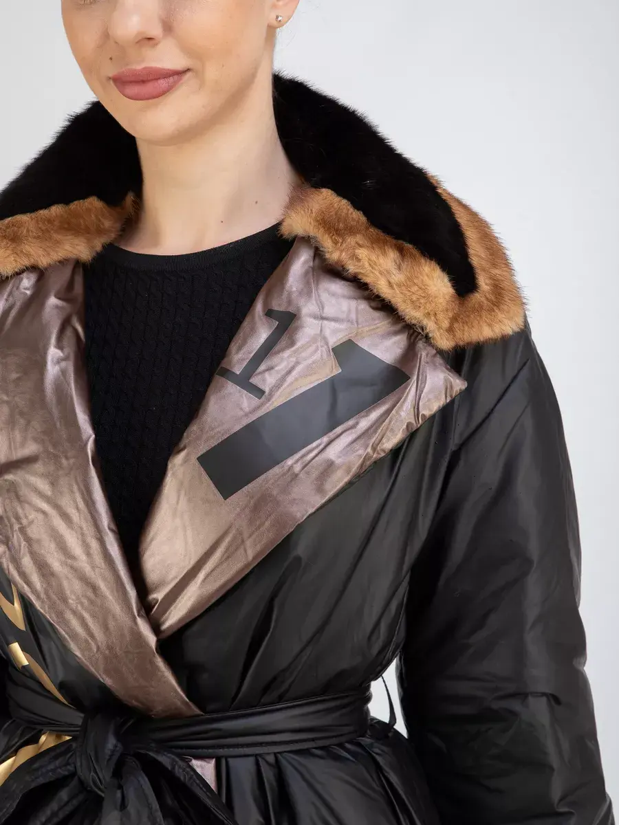 Каждая деталь этой куртки, пуховика выполнена с особым вниманием к качеству материалов. Изысканный материал и модный фасон, ровные швы, мех норки, принт и прорезные карманы добовляют акценты стиля и функциональности, делают эту женскую куртку эксклюзивным элементом гардероба, которая подходит практически под любой стиль, деловой или повседневный. Классический воротник с съемным мехом норки и пояс в качестве застежки добавляют изюминку образу, делая его неповторимым.