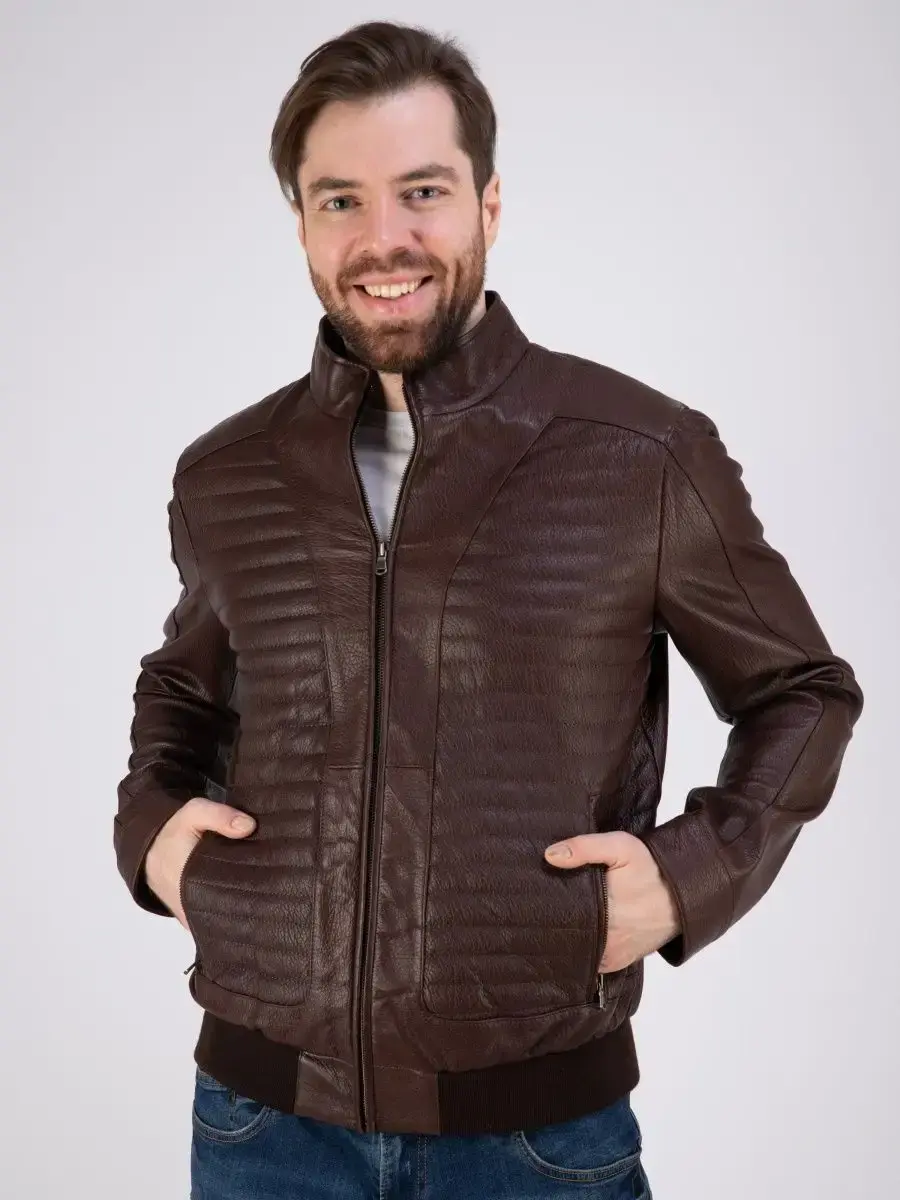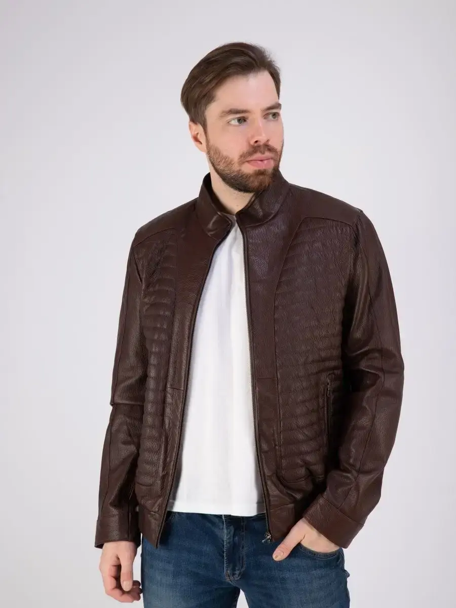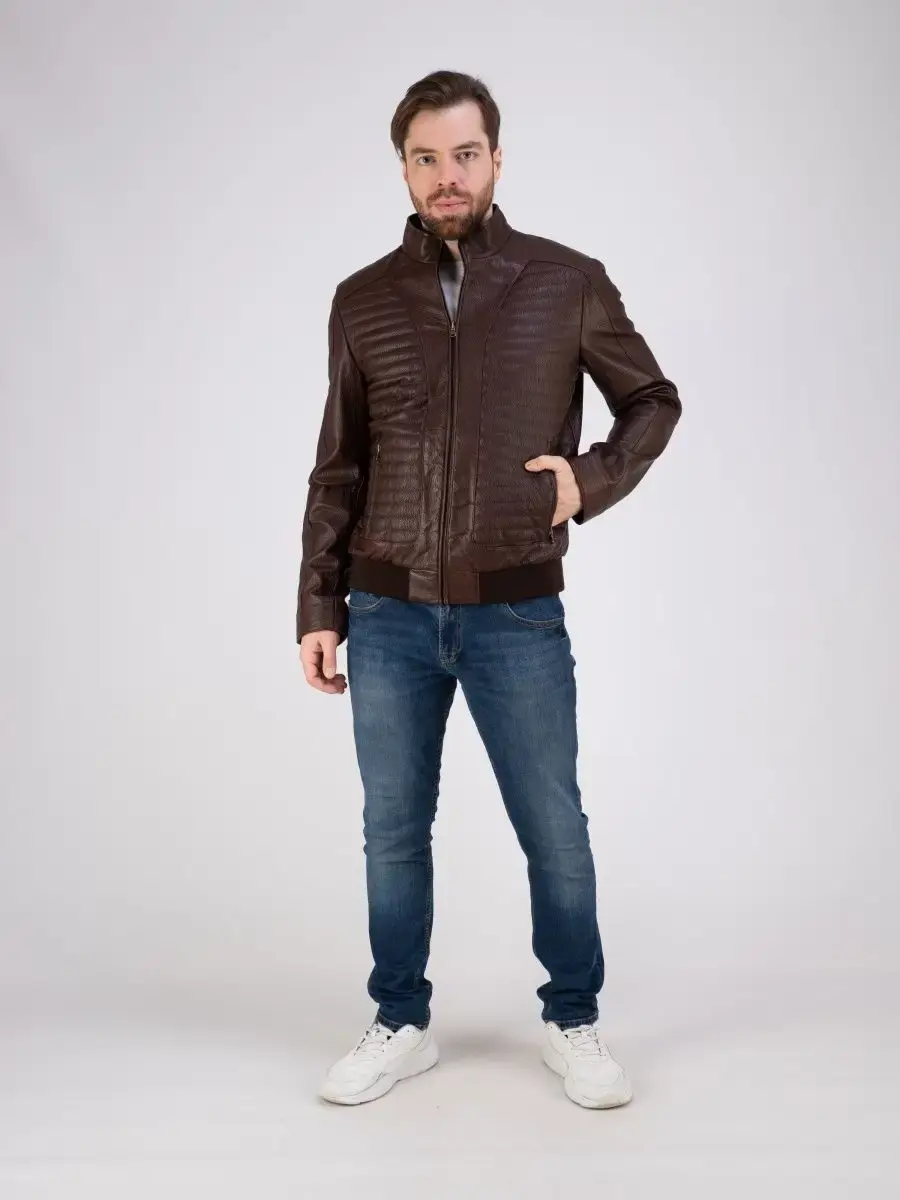 Куртка мужская кожаная, кожаная куртка из высококачественной натуральной кожи. Куртка кожаная мужская выполнена из прочной и в то же время из мягкой натуральной кожи ягненка. Выделка кожи фактурная - джумбо, износоустойчивая к царапинам и воздействию окружающей среды поэтому дольше сохраняет отличный внешний вид. Кожаная куртка мужская из натуральной кожи в качестве застежки молния, воротник стойка, прорезные карманы на молнии. Стеганая мужская куртка демисезонная из знаменитой турецкой натуральной кожи является идеальным выбором для мужчин, желающих порадовать себя чем-то особенным. Куртка демисезонная достаточно удобная и практичная для ежедневного использования. Мужская куртка из натуральной кожи, куртка мужская весна - осень прекрасно будет смотреться как с кроссовками и спортивным стилем, так и с брюками и рубашкой, впишется практически в любой стиль - повседневный, городской, офисный и вечерний. Прямой крой, трикотажные вставки, стеганые декоративные строчки - такая модель не только сбережет от ветра, но и добавит вашему стилю брутальности, отличный вариант верхней одежды на постоянную носку в демисезон, весной, осенью и в прохладное лето. Сочетание дизайна с долговечностью, драгоценностью и мягкостью натуральной кожи делает мужские кожаные куртки идеальным предметом мужской одежды.