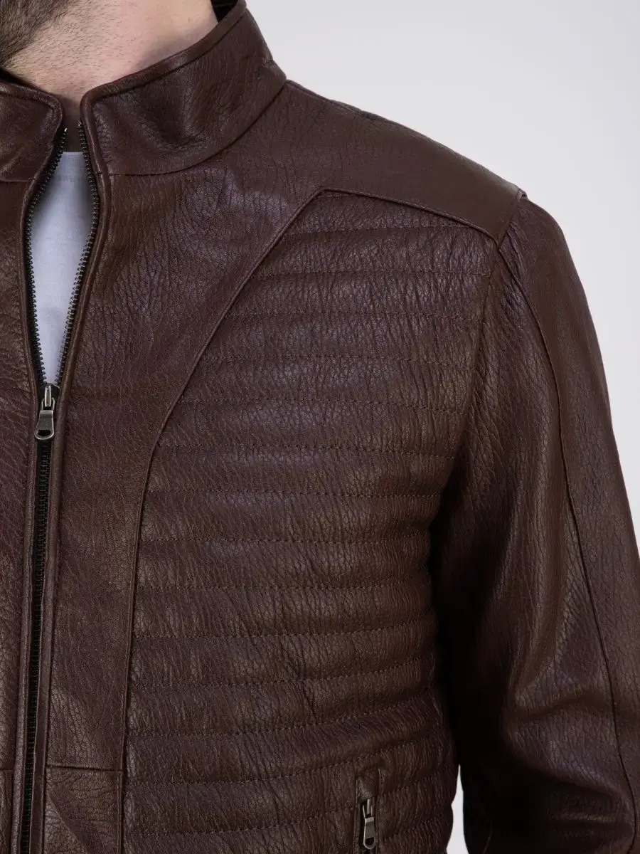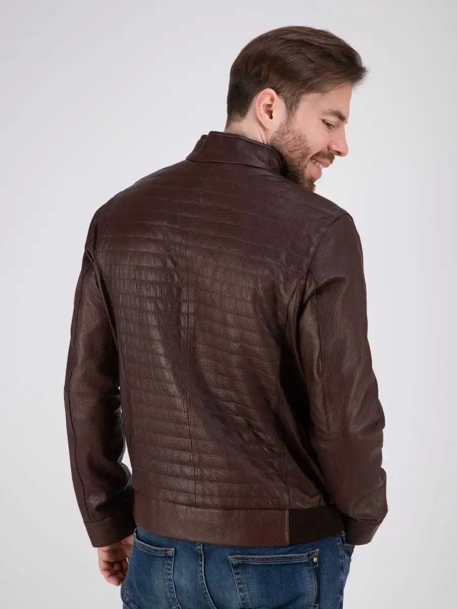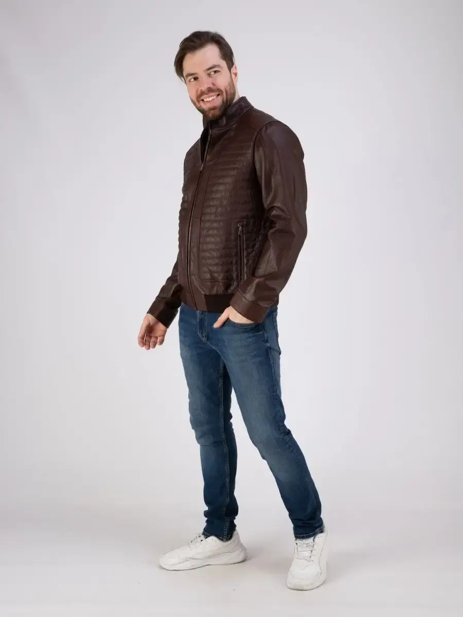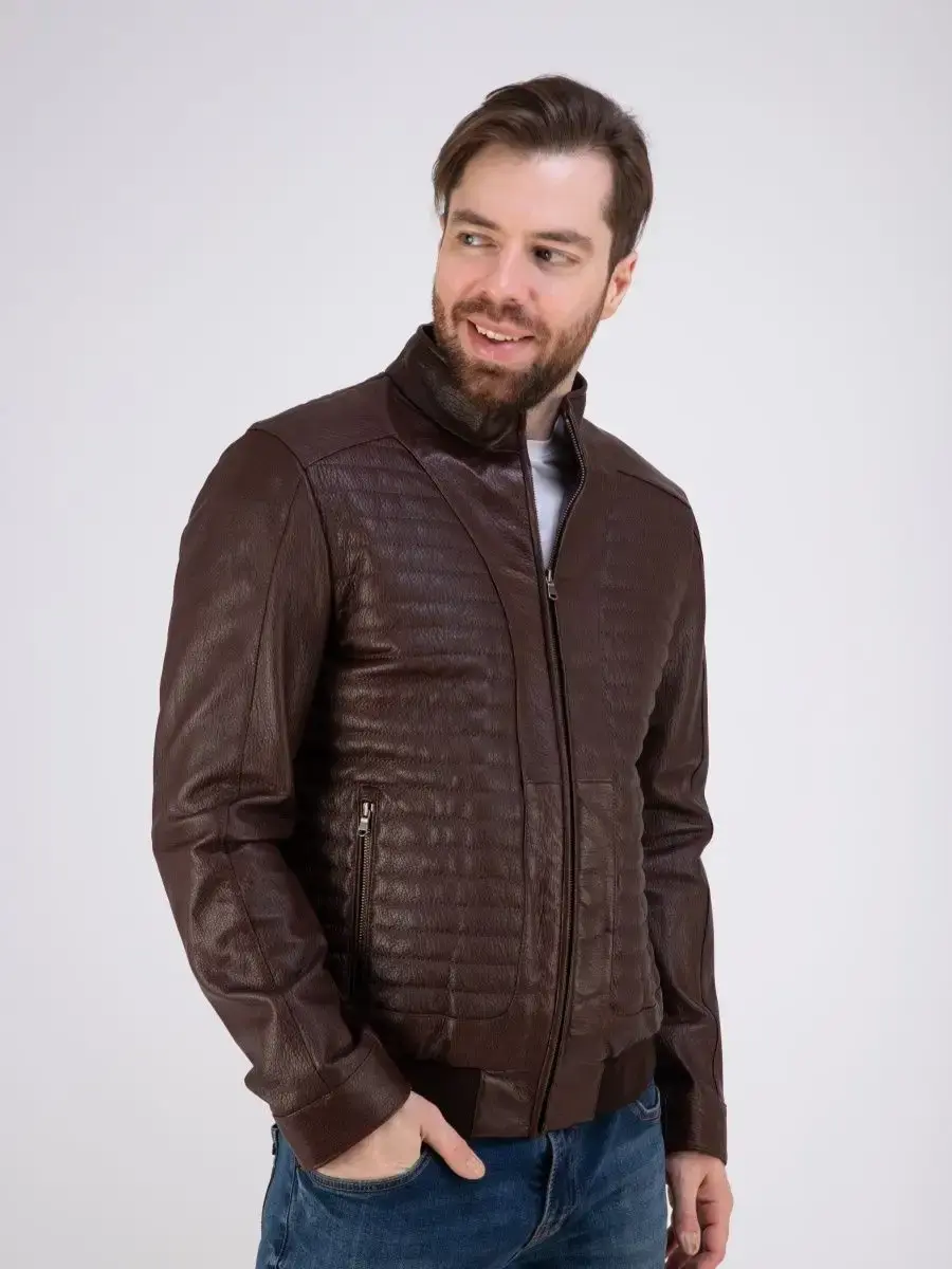 Куртка мужская кожаная, кожаная куртка из высококачественной натуральной кожи. Куртка кожаная мужская выполнена из прочной и в то же время из мягкой натуральной кожи ягненка. Выделка кожи фактурная - джумбо, износоустойчивая к царапинам и воздействию окружающей среды поэтому дольше сохраняет отличный внешний вид. Кожаная куртка мужская из натуральной кожи в качестве застежки молния, воротник стойка, прорезные карманы на молнии. Стеганая мужская куртка демисезонная из знаменитой турецкой натуральной кожи является идеальным выбором для мужчин, желающих порадовать себя чем-то особенным. Куртка демисезонная достаточно удобная и практичная для ежедневного использования. Мужская куртка из натуральной кожи, куртка мужская весна - осень прекрасно будет смотреться как с кроссовками и спортивным стилем, так и с брюками и рубашкой, впишется практически в любой стиль - повседневный, городской, офисный и вечерний. Прямой крой, трикотажные вставки, стеганые декоративные строчки - такая модель не только сбережет от ветра, но и добавит вашему стилю брутальности, отличный вариант верхней одежды на постоянную носку в демисезон, весной, осенью и в прохладное лето. Сочетание дизайна с долговечностью, драгоценностью и мягкостью натуральной кожи делает мужские кожаные куртки идеальным предметом мужской одежды.