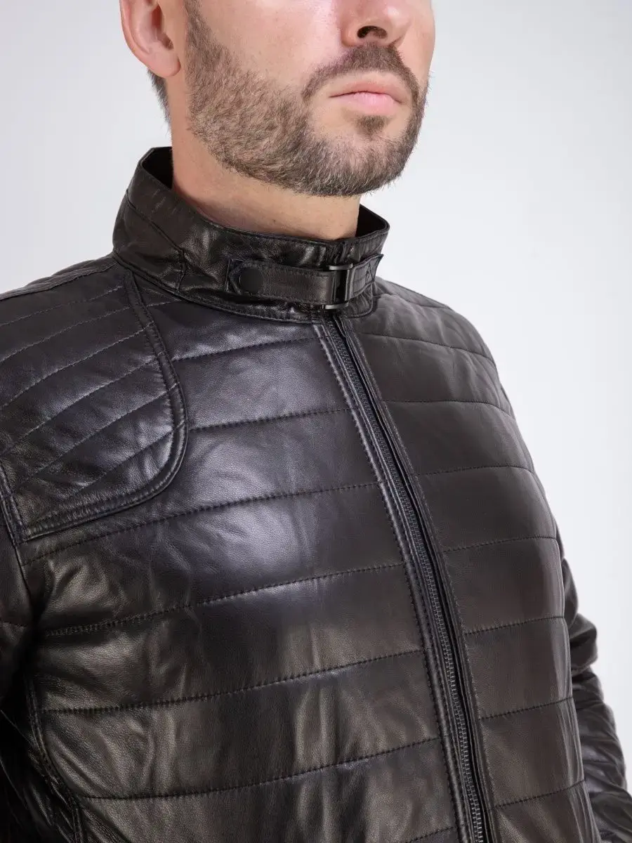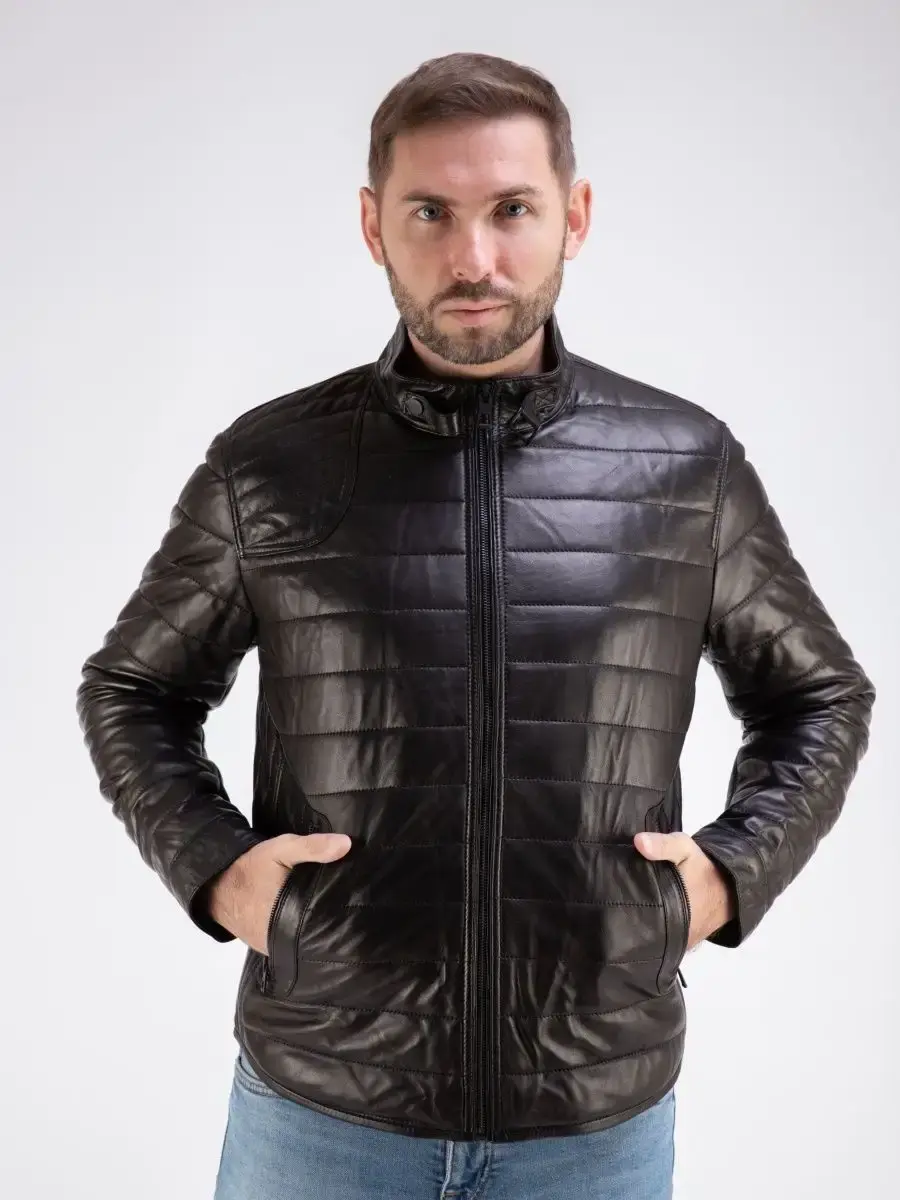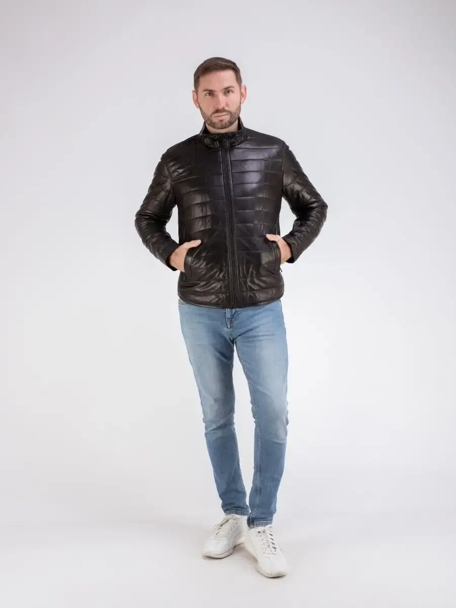 Эстетичная мужская кожаная куртка бренда GHEPARDO - это отличный выбор верхней одежды на осень и весну. Модель премиум - качества без капюшона выполнена из натуральной кожи ягненка, имеет тонкую и мягкую подкладку из полиэстера, а также утепление синтепоном. Изделие с модным стеганым дизайном и прямым кроем с длинными рукавами, застежкой - молнией и прорезными карманами по бокам оснащено воротником - стойкой, застегивающимся на ремешок. Большой выбор размеров делает ее доступной для парней любого роста и типа телосложения - высоких и невысоких, худых, полных и спортивных. Молодежная кожанка классического черного цвета будет актуальна для людей всех возрастов - и взрослых мужчин, и мальчиков - подростков. Длина по спинке 70см. Классное изделие с тонким утеплителем, выполненное из водоотталкивающего и непромокаемого материала, идеально для весенней и осенней погоды. Куртка прекрасно подойдет для демисезона, даст защиту от дождя и ветра. Она станет отличным выбором для повседневных образов и прекрасно подойдет для вечерних прогулок, походов на работу в офис или учебу, а также для активного отдыха. Кожанка совмещает в себе вечную классику и популярный кэжуал стиль, что делает ее настоящим модным трендом этого года! Стильная короткая курточка с прямым силуэтом - это крутая вещь, которая подойдет как для офисного стиля, так и для современных casual луков и мотоспортивных образов. Легкая и модная куртка станет вашей любимой базовой вещью, которая прекрасно дополнит демисезонный гардероб. Изделия нашего бренда имеют высокое качество и трендовый внешний вид. Куртка станет прекрасным выбором для мужчин всех возрастов и прослужит долгое время. Страна производства - Турция. У нас есть акции и распродажи, вы можете купить наши товары в подарок со скидкой! Куртка маломерит на 2 размер!
