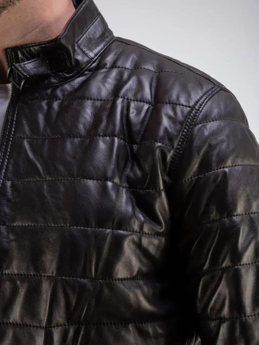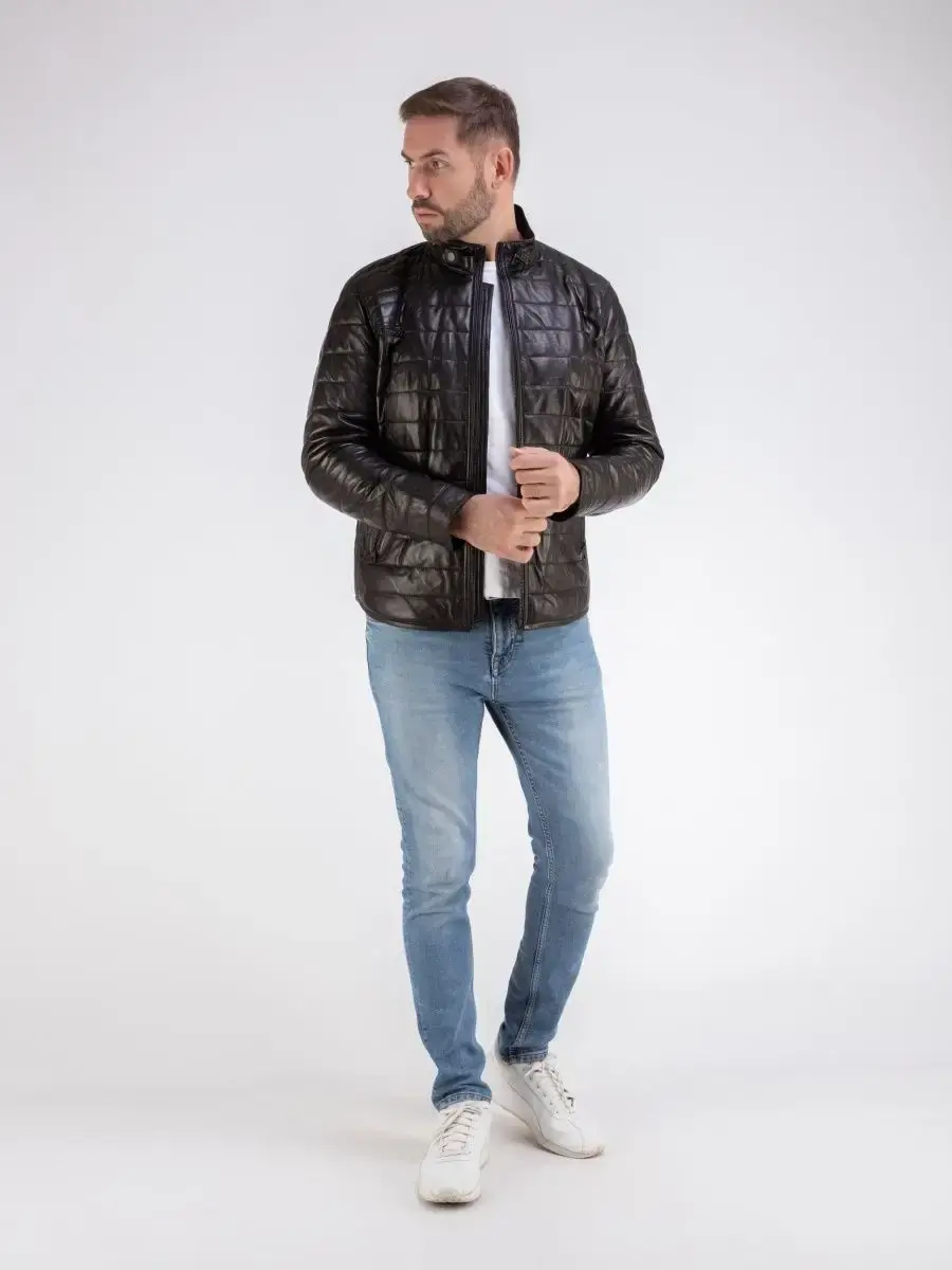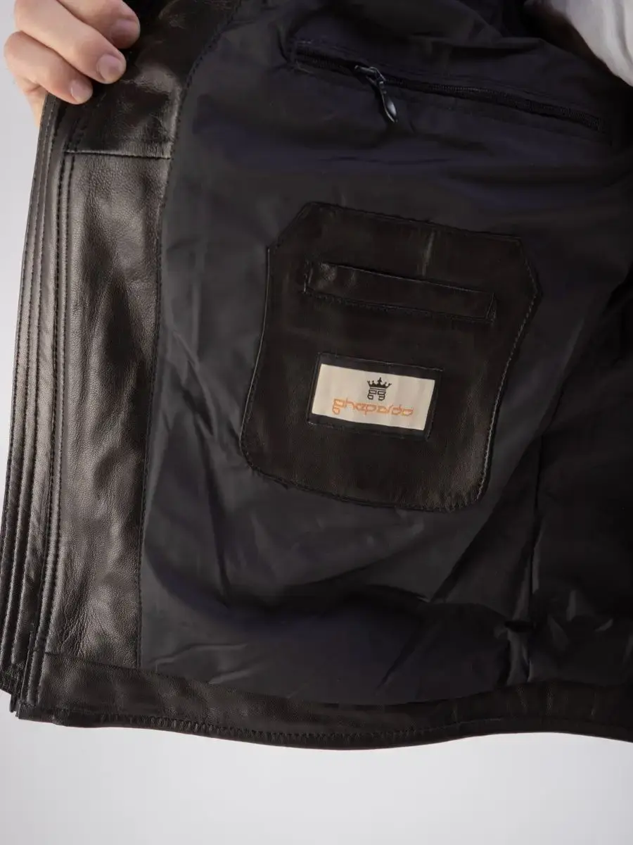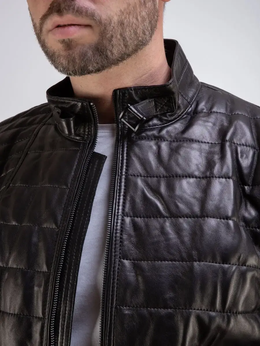 Эстетичная мужская кожаная куртка бренда GHEPARDO - это отличный выбор верхней одежды на осень и весну. Модель премиум - качества без капюшона выполнена из натуральной кожи ягненка, имеет тонкую и мягкую подкладку из полиэстера, а также утепление синтепоном. Изделие с модным стеганым дизайном и прямым кроем с длинными рукавами, застежкой - молнией и прорезными карманами по бокам оснащено воротником - стойкой, застегивающимся на ремешок. Большой выбор размеров делает ее доступной для парней любого роста и типа телосложения - высоких и невысоких, худых, полных и спортивных. Молодежная кожанка классического черного цвета будет актуальна для людей всех возрастов - и взрослых мужчин, и мальчиков - подростков. Длина по спинке 70см. Классное изделие с тонким утеплителем, выполненное из водоотталкивающего и непромокаемого материала, идеально для весенней и осенней погоды. Куртка прекрасно подойдет для демисезона, даст защиту от дождя и ветра. Она станет отличным выбором для повседневных образов и прекрасно подойдет для вечерних прогулок, походов на работу в офис или учебу, а также для активного отдыха. Кожанка совмещает в себе вечную классику и популярный кэжуал стиль, что делает ее настоящим модным трендом этого года! Стильная короткая курточка с прямым силуэтом - это крутая вещь, которая подойдет как для офисного стиля, так и для современных casual луков и мотоспортивных образов. Легкая и модная куртка станет вашей любимой базовой вещью, которая прекрасно дополнит демисезонный гардероб. Изделия нашего бренда имеют высокое качество и трендовый внешний вид. Куртка станет прекрасным выбором для мужчин всех возрастов и прослужит долгое время. Страна производства - Турция. У нас есть акции и распродажи, вы можете купить наши товары в подарок со скидкой! Куртка маломерит на 2 размер!