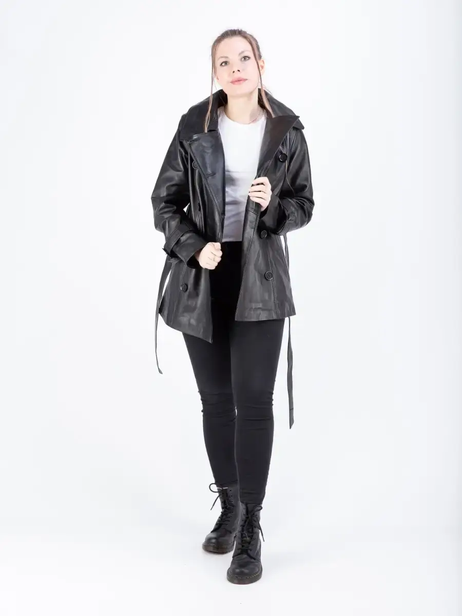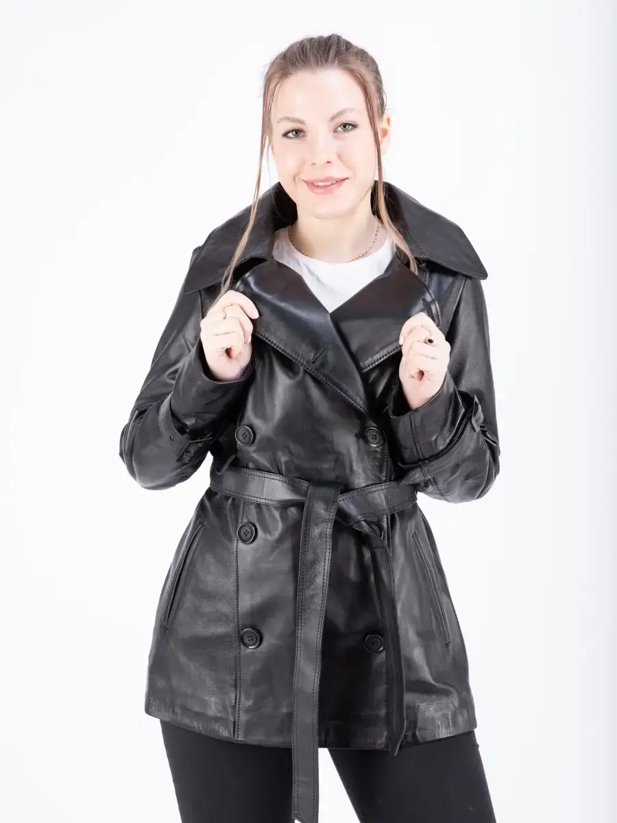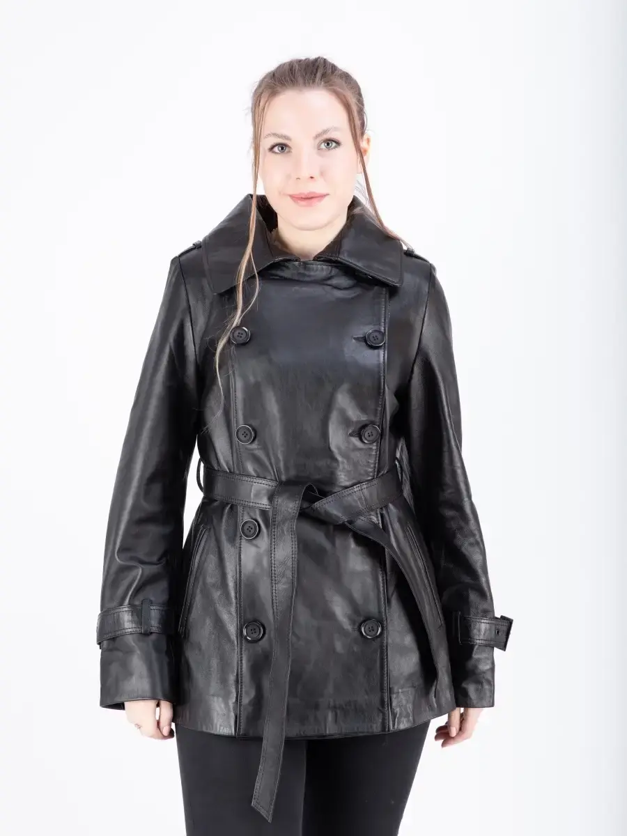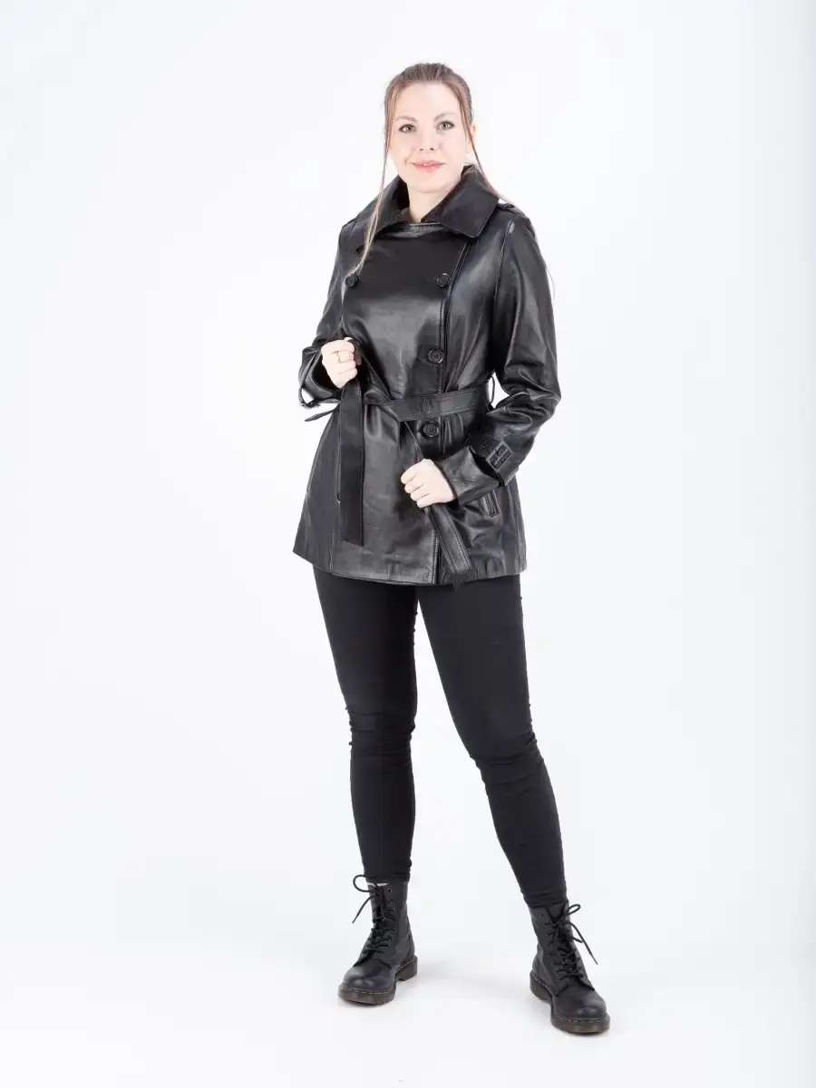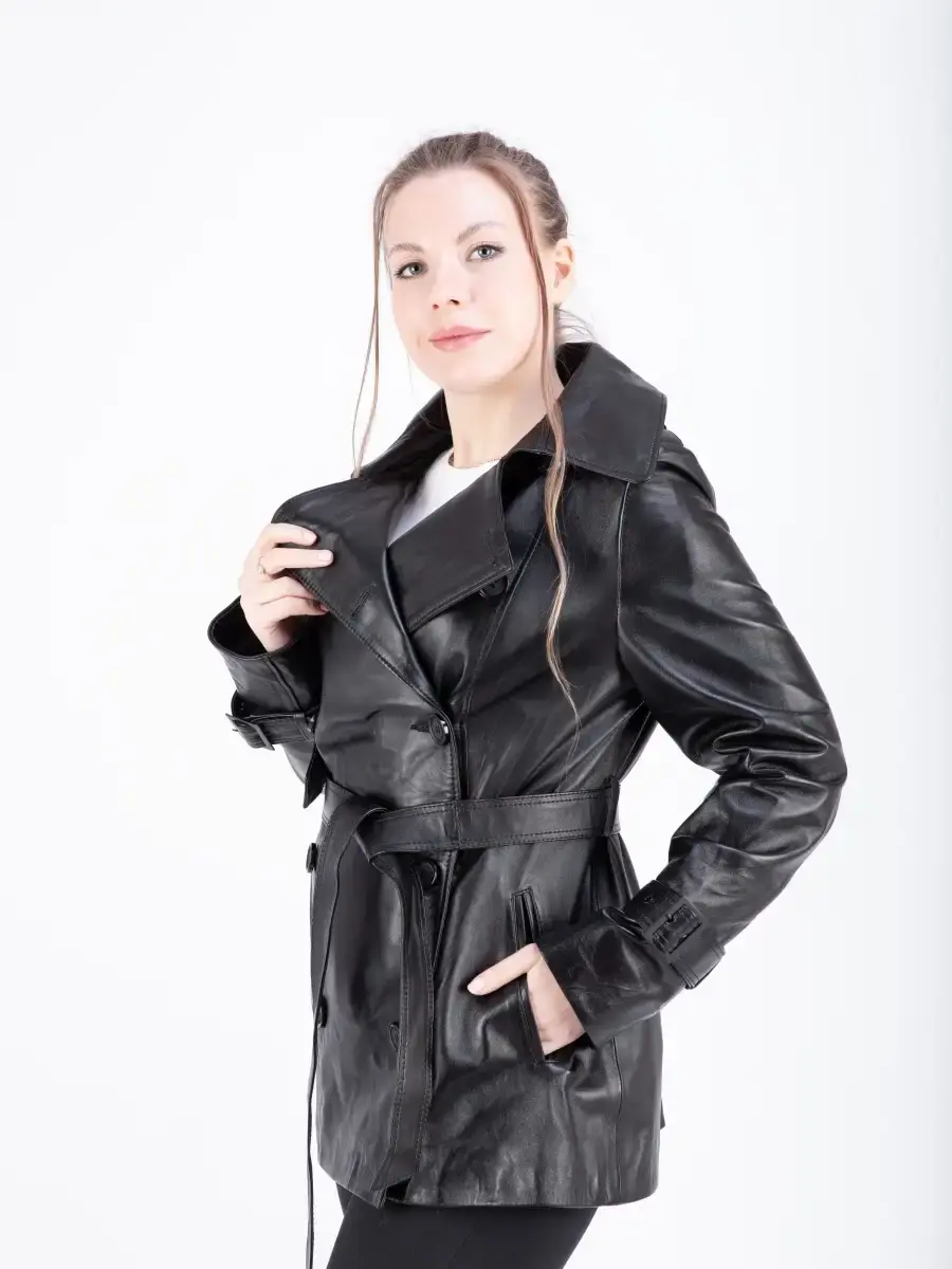 Куртка женская из натуральной кожи. Удлиненая куртка кожаная женская двубортная в качестве застежки пуговицы, карманы прорезные. Выделка кожи гладкая и мягкая, смотрится роскошно и богато. Куртка кожаная натуральная женская для полных дам, оверсайз - большие размеры. MONDIAL Производство Турция.