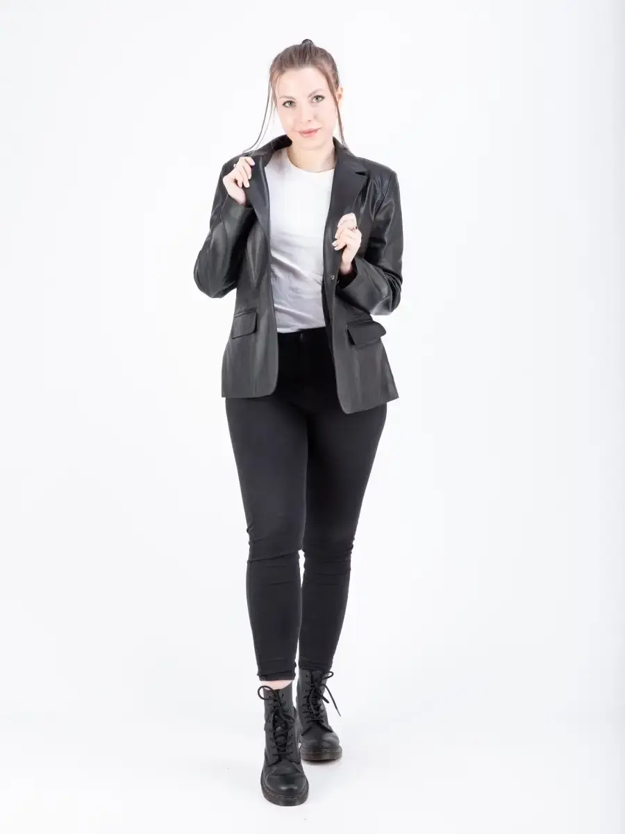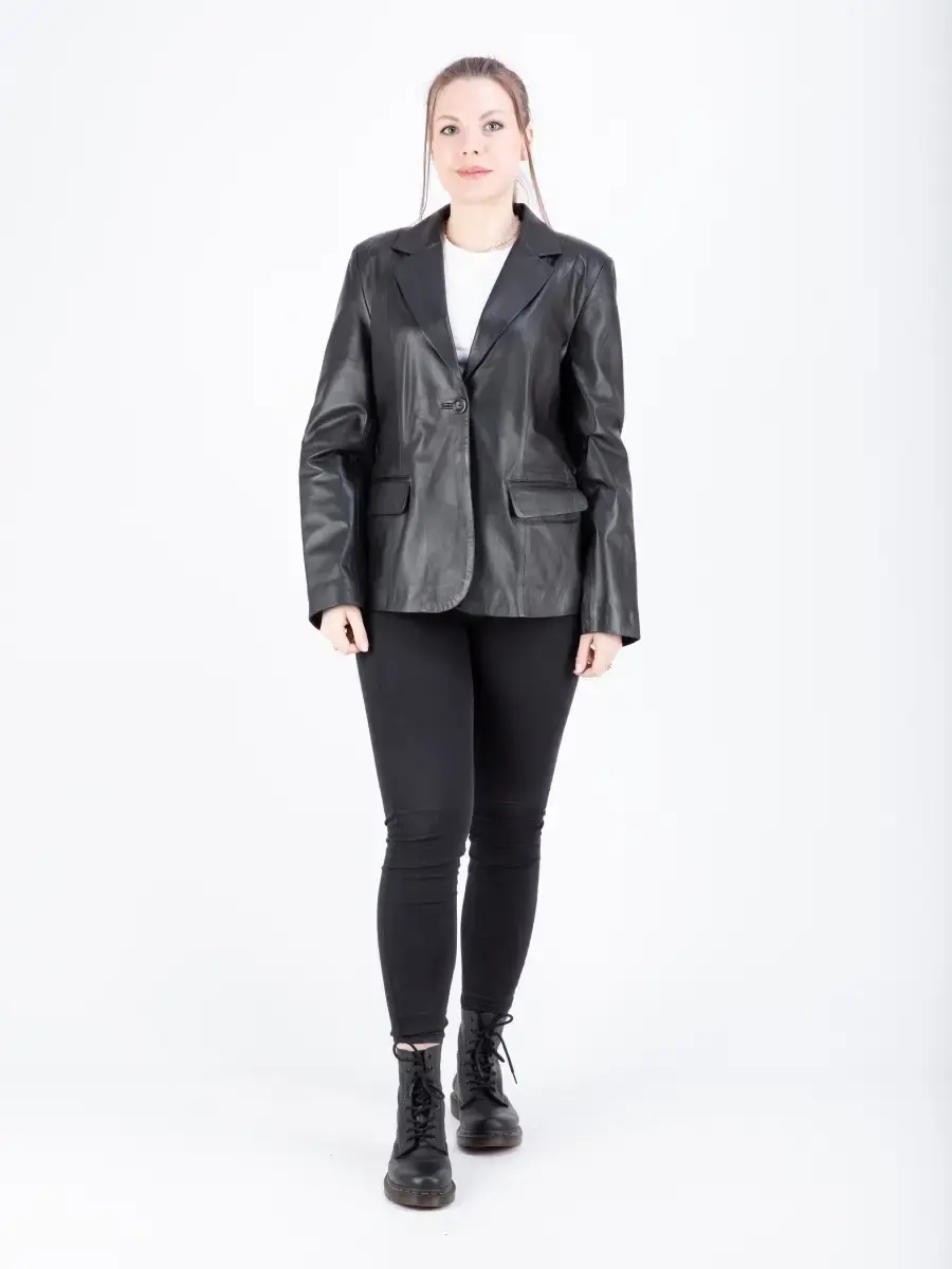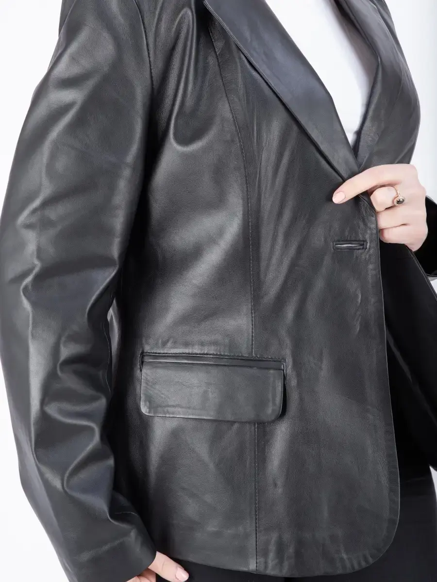Куртка женская блейзер, пиджак из натуральной кожи ягненка. Классическая женская куртка, блейзер женский пиджак прямого кроя, английский воротник, в качестве застежки пуговица. Куртка выполнена из гладкой и мягкой кожи, идеально подойдет для полных дам, оверсайз - большие размеры. Блейзер кожаный станет изюминкой вашего гардероба, подчеркнет Вашу индивидуальность, как и в повседневном гардеробе так и в вечернем! Такую модель можно носить с брюками в деловом стиле, джинсами и зауженной юбкой карандаш. Куртка женская из натуральной кожи отличный подарок на 14 февраля, день святого валентина, день влюбленных, подарок на день рождения подруге, подарок на годовщину свадьбы, подарок женщине, подарок девушке, 8 марта, подарок подруге, подарок маме. MONDIAL Производство Турция.