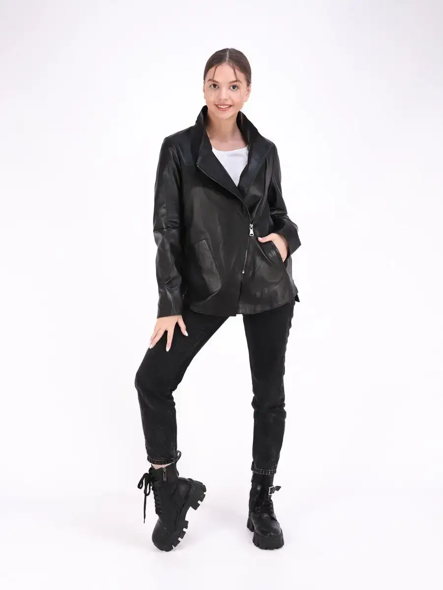 Косуха кожаная куртка женская из натуральной кожи ягненка. Куртка женская из натуральной кожи выполнена из прочной и в тоже время из мягкой, гладкой натуральной кожи. Современная женская куртка располагает удобным и декоративными элементами в виде функциональных молний по бокам изделия, застежка ассиметричная молния. Особенно удобно при вождении автомобиля. Женская кожаная куртка станет изюминкой вашего гардероба, подчеркнет Вашу индивидуальность, как и в повседневном гардеробе так и в вечернем! Такую модель можно носить с брюками в деловом стиле, джинсами и юбками. Куртка кожаная женская отличный подарок на 14 февраля, день святого валентина, день влюбленных, подарок на день рождения подруге, подарок на годовщину свадьбы, подарок женщине, подарок девушке, 8 марта, подарок подруге, подарок маме. MONDIAL Производство Турция