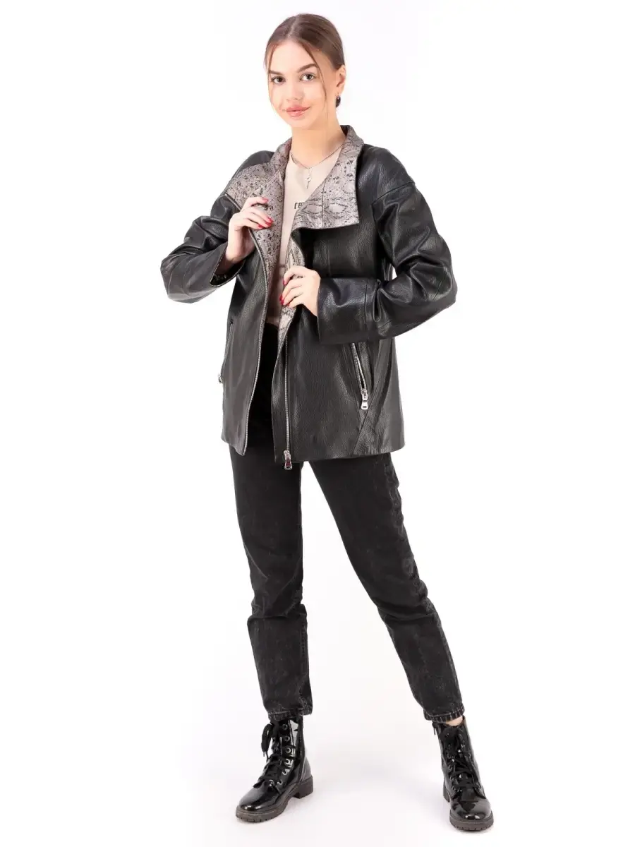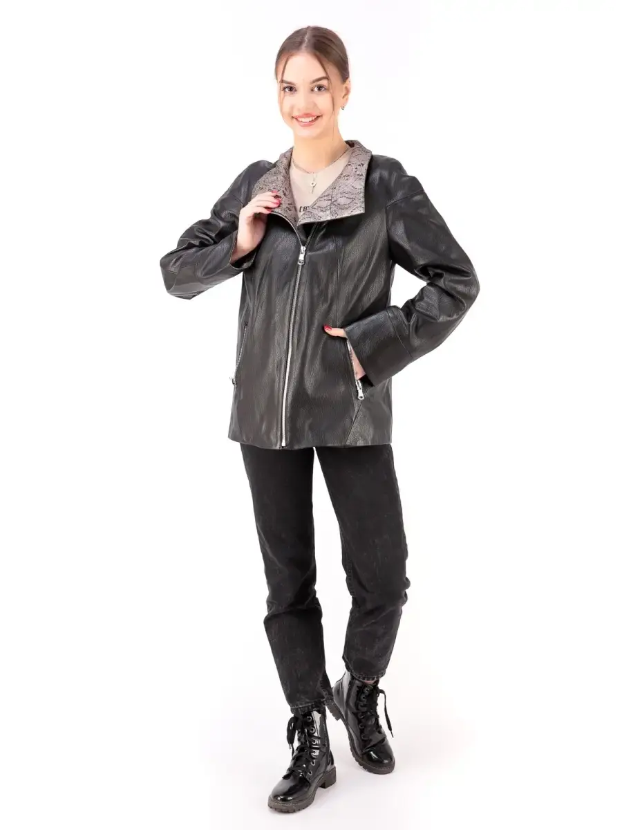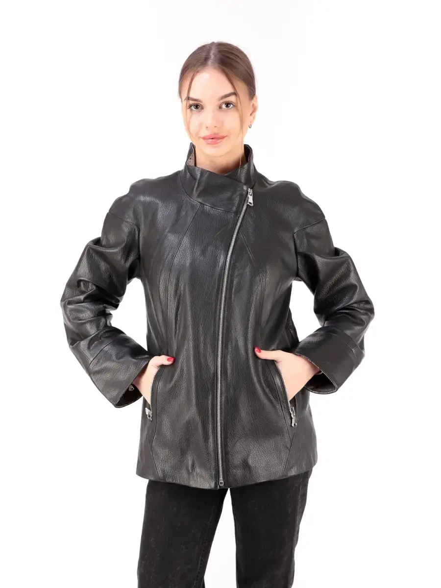 Куртка из высококачественной текстурной натуральной кожи. Выполнена из плотной и мягкой кожи. Свободная модель с застежкой и карманами на молнии. Идеально впишется в Ваш гардероб. MONDIAL Производство Турция.