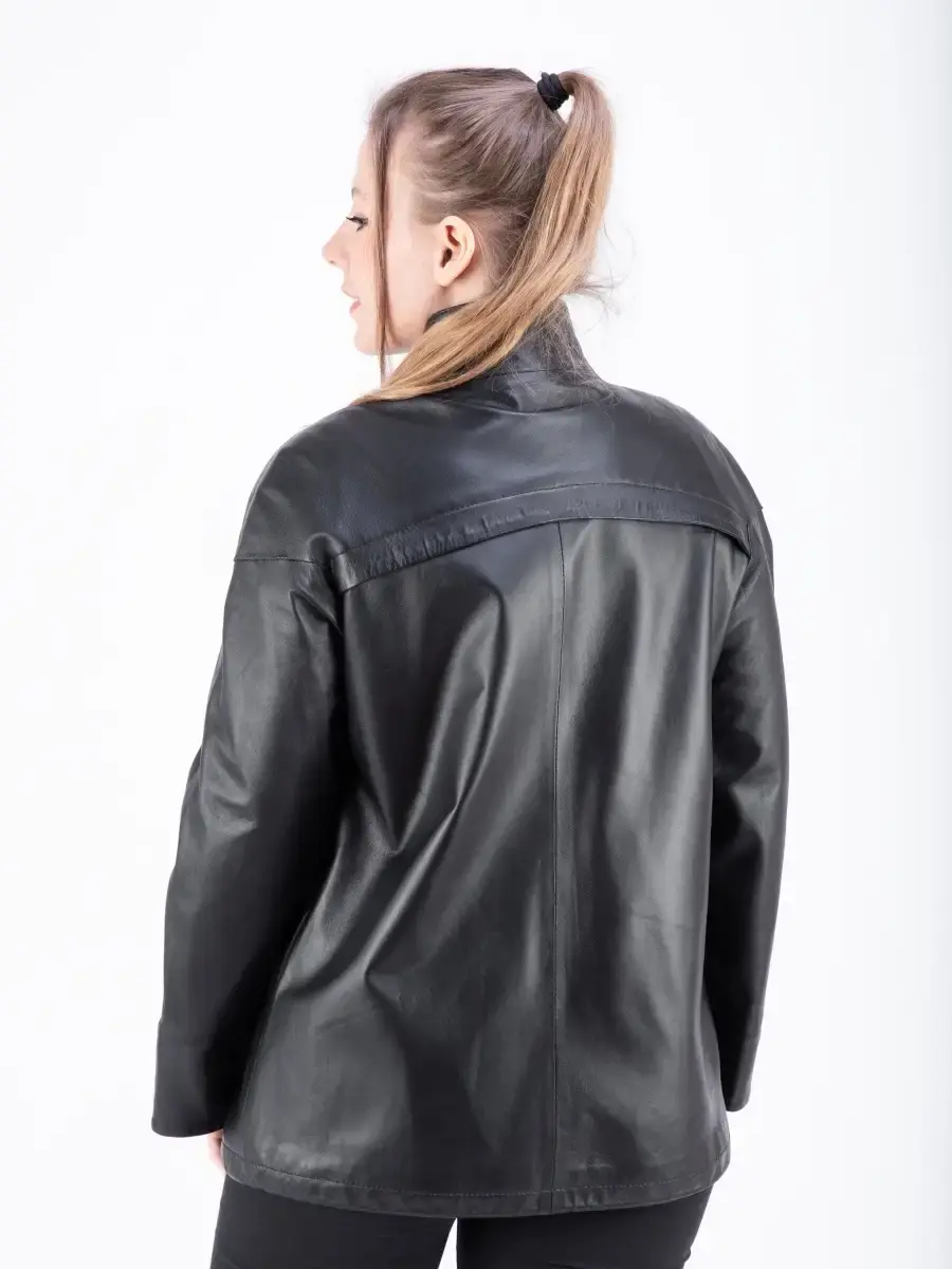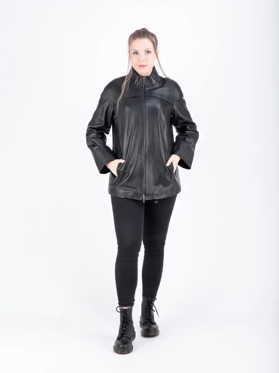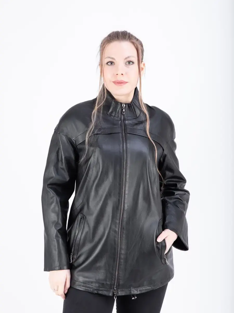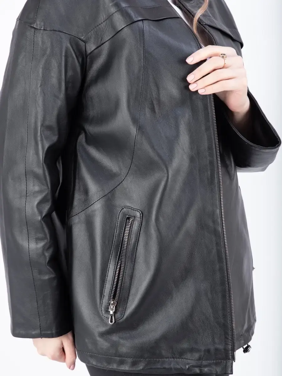Женская куртка выполнена из натуральной кожи. Выделка кожи гладкая и мягкая. Куртка кожаная женская свободного кроя не сковывает движения. Рукав имеет спущенную линию плеча - реглан. Карманы прорезные на молнии, в качестве застёжки молния. Рекомендуем уделить внимание замерам своих параметров, чтобы подобрать оптимальный для Вас размер. Будет замечательным подарком девушке, подруге на день рождения. Куртка кожаная натуральная женская для полных дам, оверсайз - большие размеры. MONDIAL Производство Турция