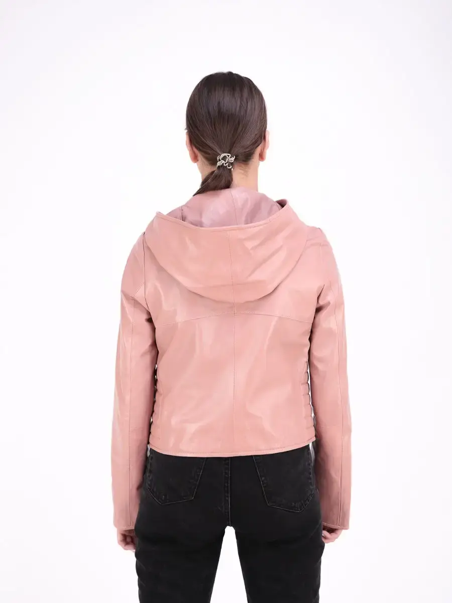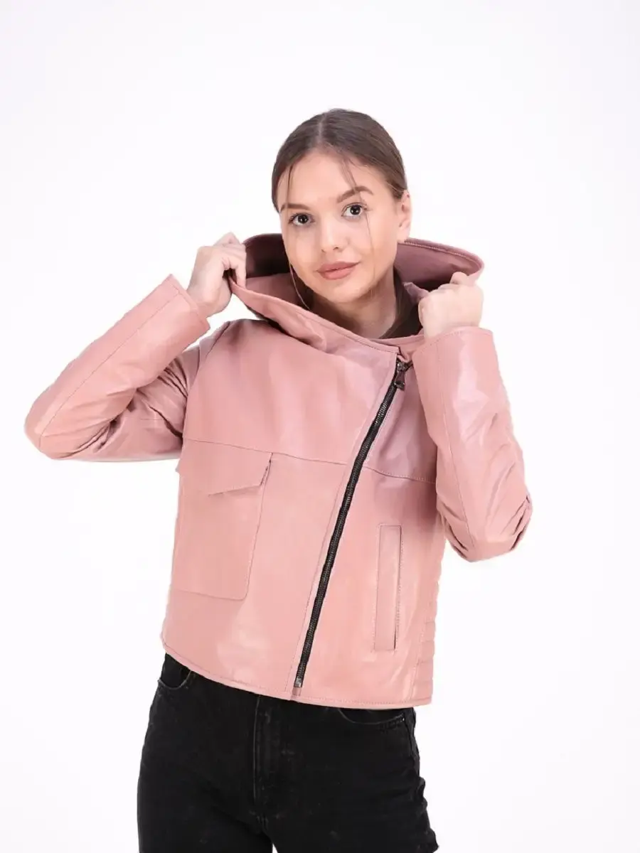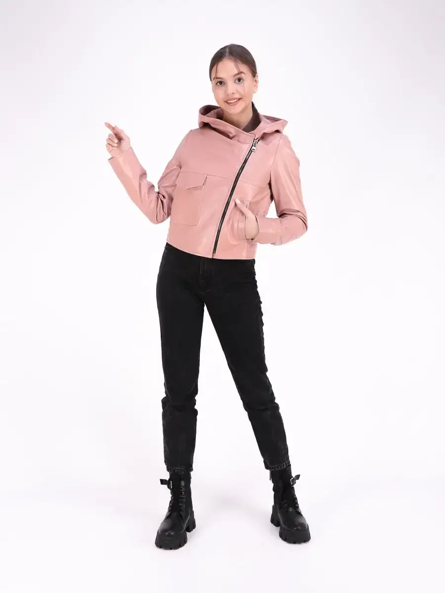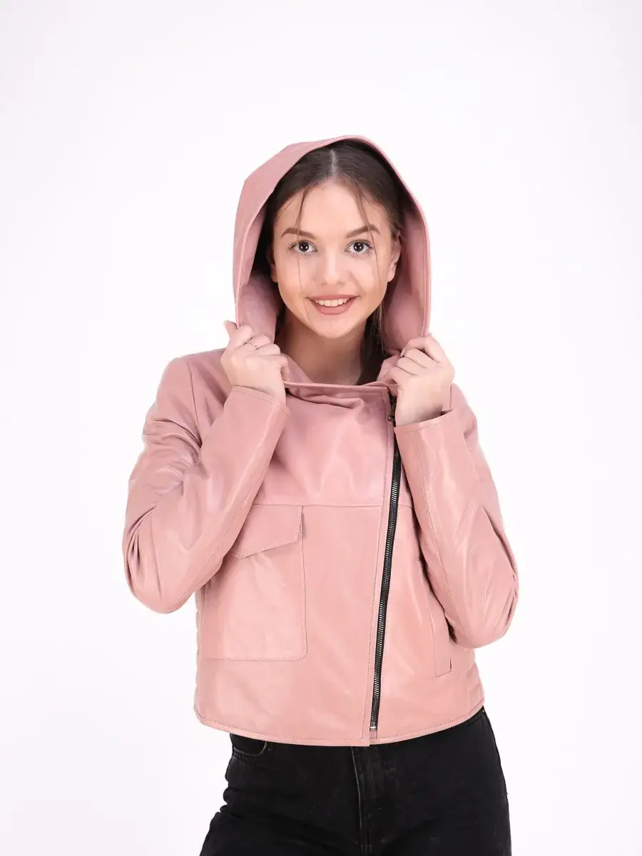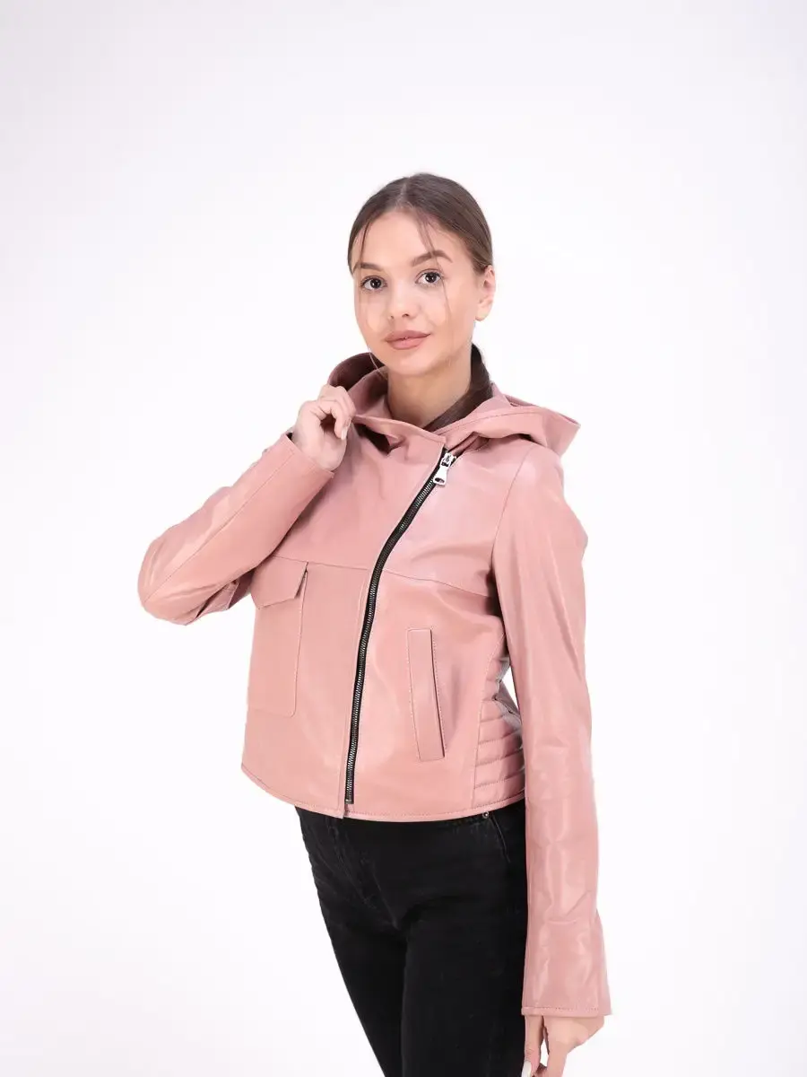 Женская куртка из 100% натуральной кожи. Куртка выполнена из гладкой кожи, выделка плонже. Капюшон не съемный. MONDIAL Производство Турция.