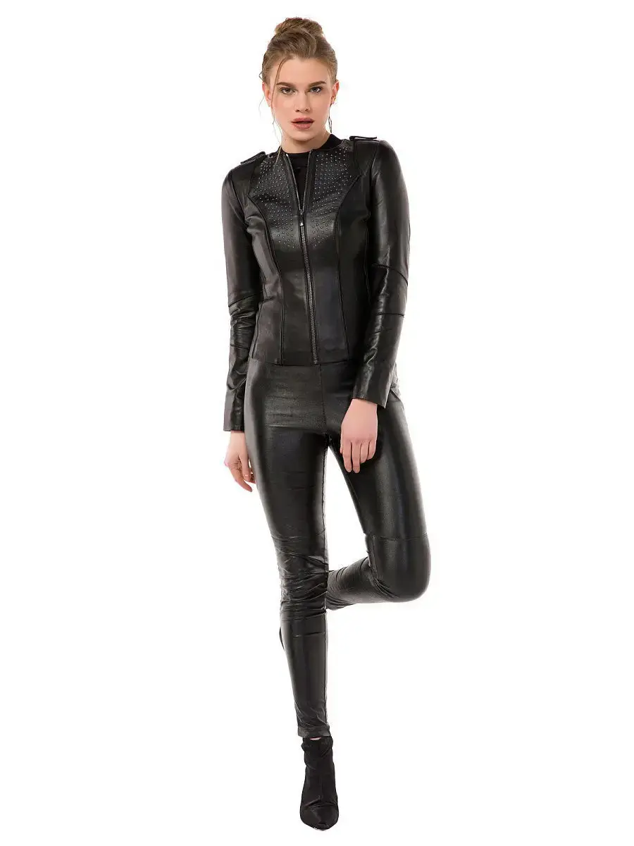 Женская куртка из натуральной кожи ягненка на эластичной основе.