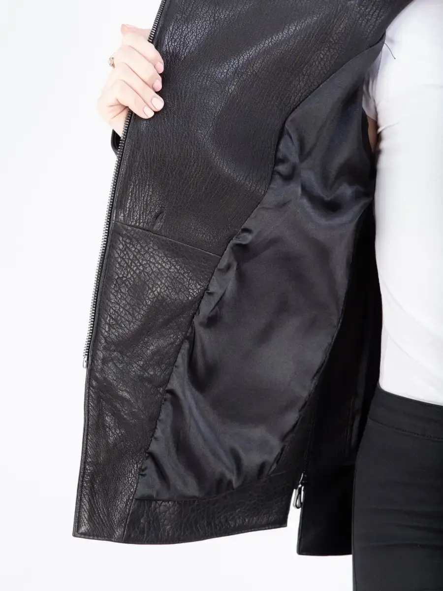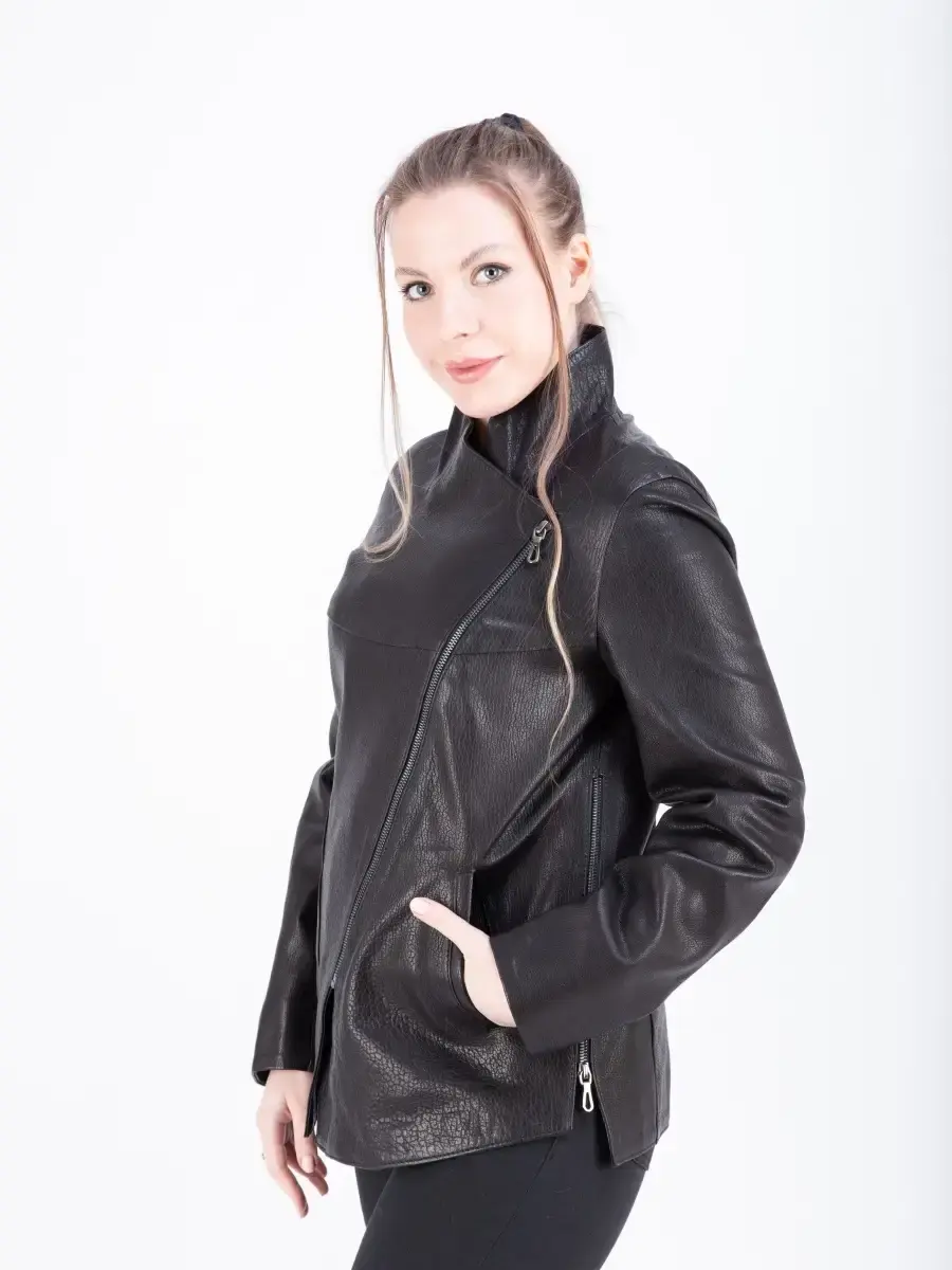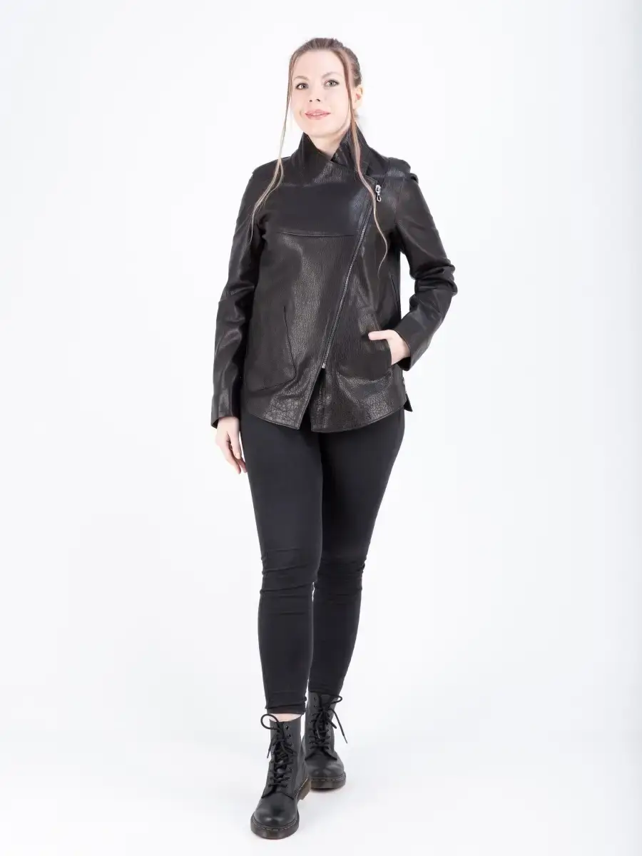 Косуха кожаная куртка женская из натуральной кожи ягненка. Куртка женская из натуральной кожи выполнена из прочной и в тоже время из мягкой натуральной кожи. Выделка кожи фактурная - джумбо, смотрится роскошно и богато. Куртка кожаная натуральная женская для полных дам, оверсайз - большие размеры. Куртка женская свободного кроя не сковывает движения. Современная женская куртка располагает удобным и декоративными элементами в виде функциональных молний, по бокам изделия. Особенно удобно при вождении автомобиля. Будет замечательным подарком девушке, подруге на День рождения. MONDIAL Производство Турция.