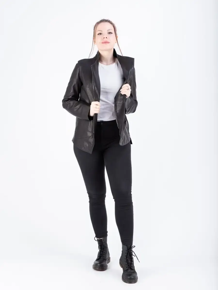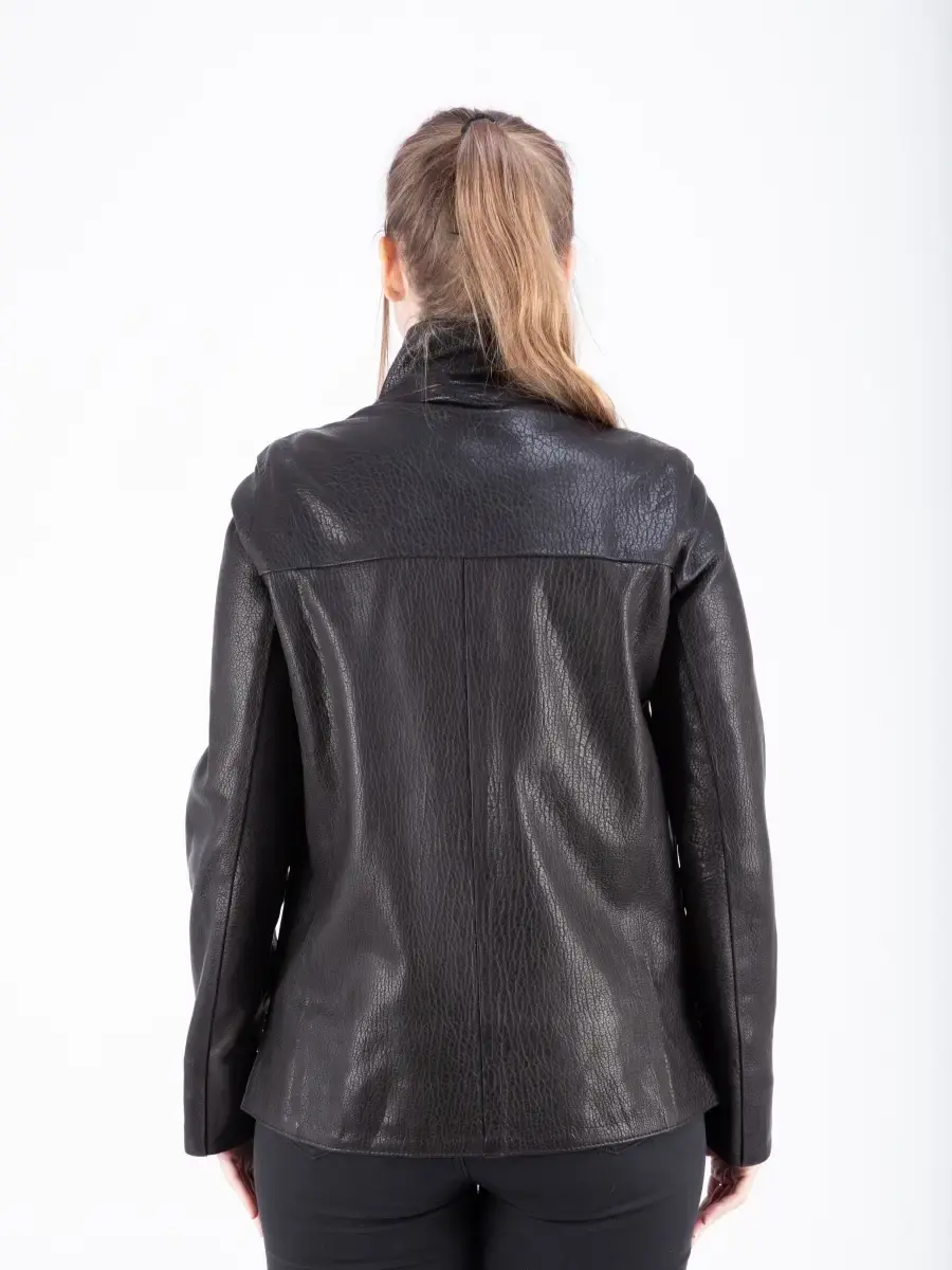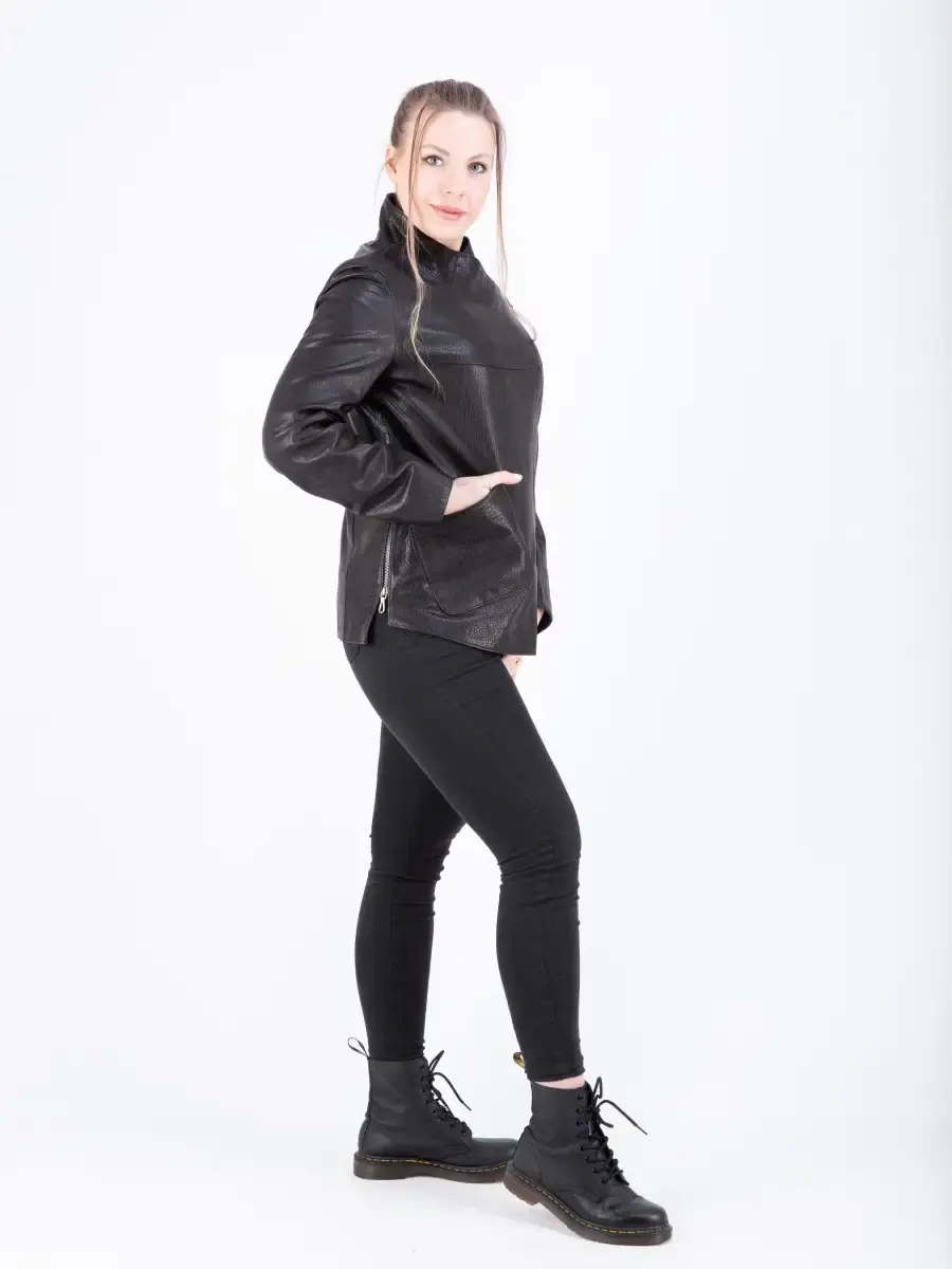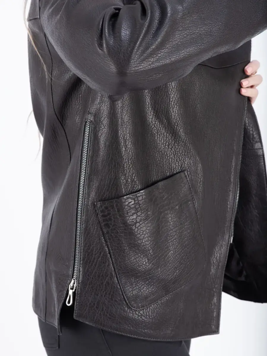 Косуха кожаная куртка женская из натуральной кожи ягненка. Куртка женская из натуральной кожи выполнена из прочной и в тоже время из мягкой натуральной кожи. Выделка кожи фактурная - джумбо, смотрится роскошно и богато. Куртка кожаная натуральная женская для полных дам, оверсайз - большие размеры. Куртка женская свободного кроя не сковывает движения. Современная женская куртка располагает удобным и декоративными элементами в виде функциональных молний, по бокам изделия. Особенно удобно при вождении автомобиля. Будет замечательным подарком девушке, подруге на День рождения. MONDIAL Производство Турция.