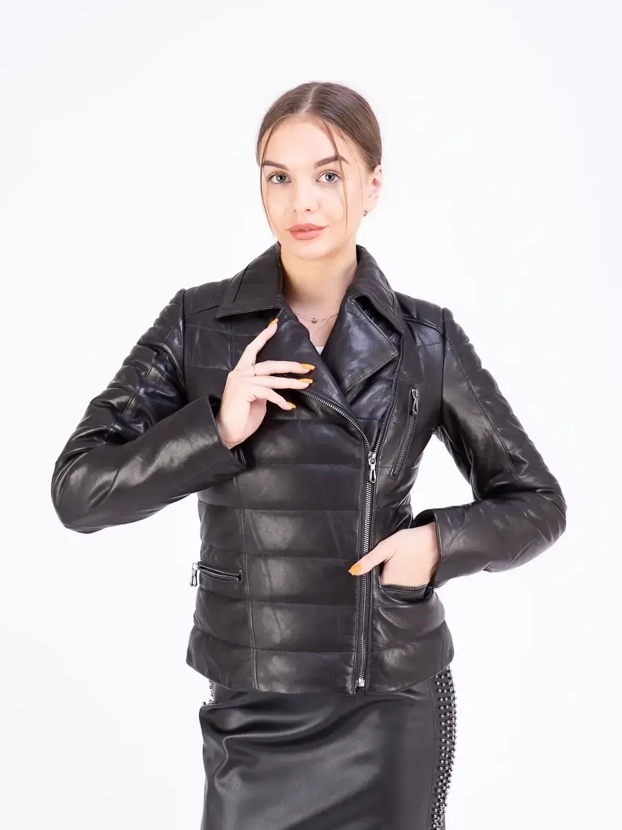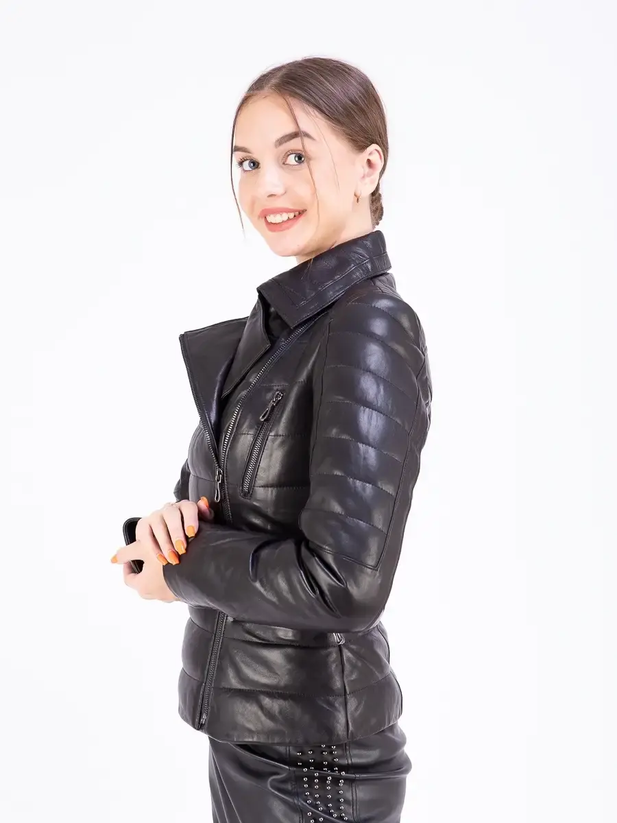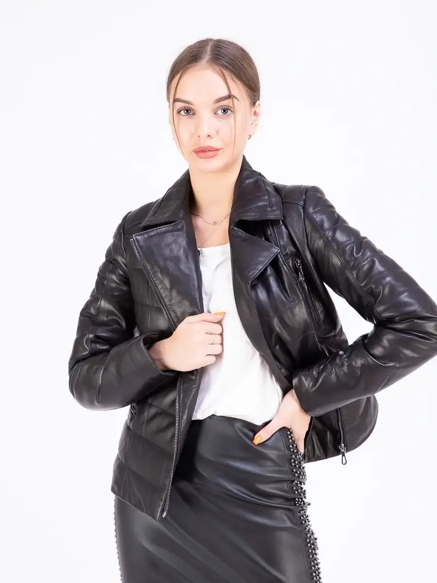 Женская утепленная куртка из высококачественной гладкой натуральной кожи ягненка. MONDIAL Производство Турция.