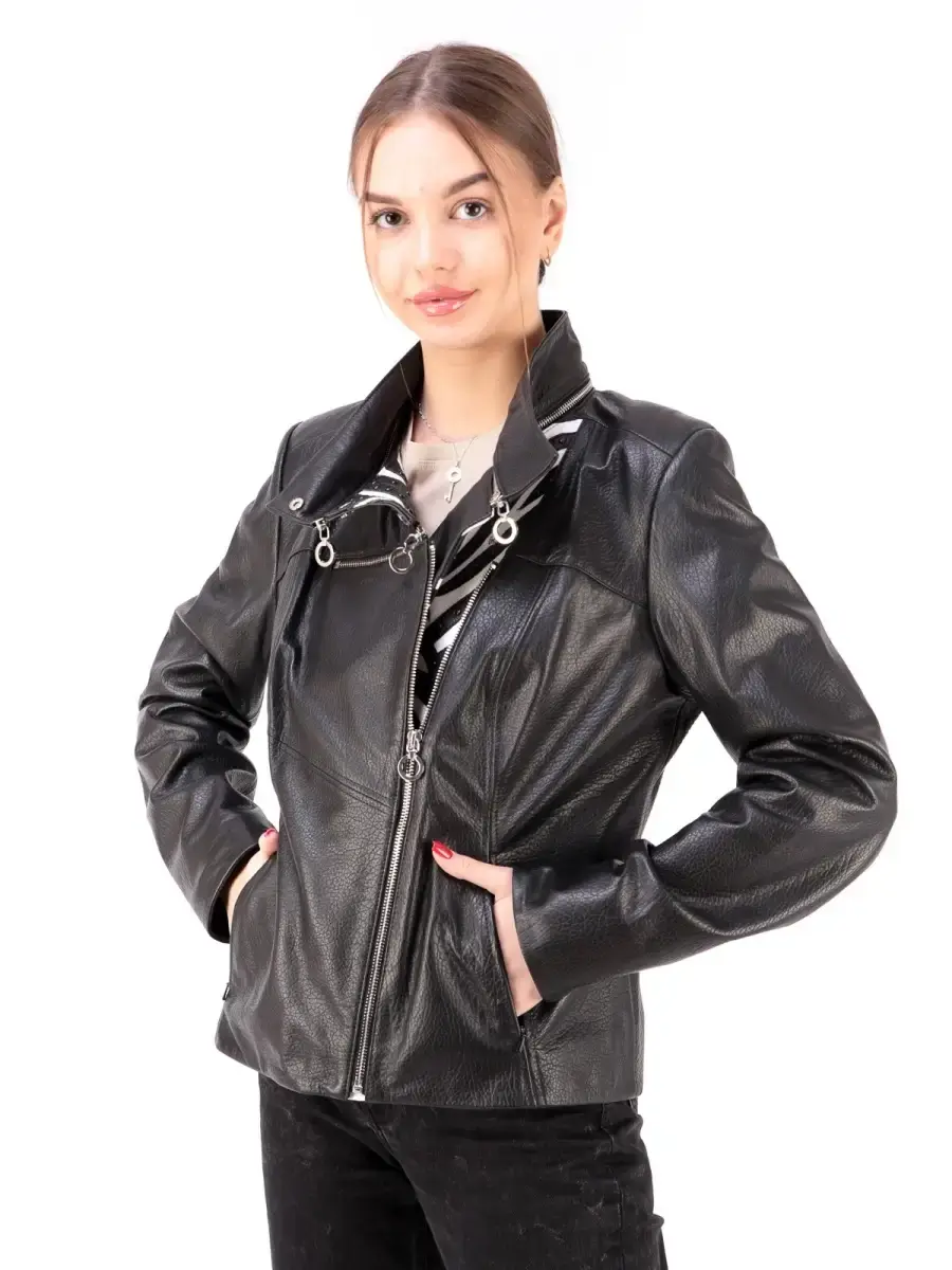 Женская куртка - косуха из 100% высококачественной натуральной кожи. Куртка выполнена из прочной и в тоже время из мягкой фактурной кожи. Стойка воротник съемный. MONDIAL Производство Турция.